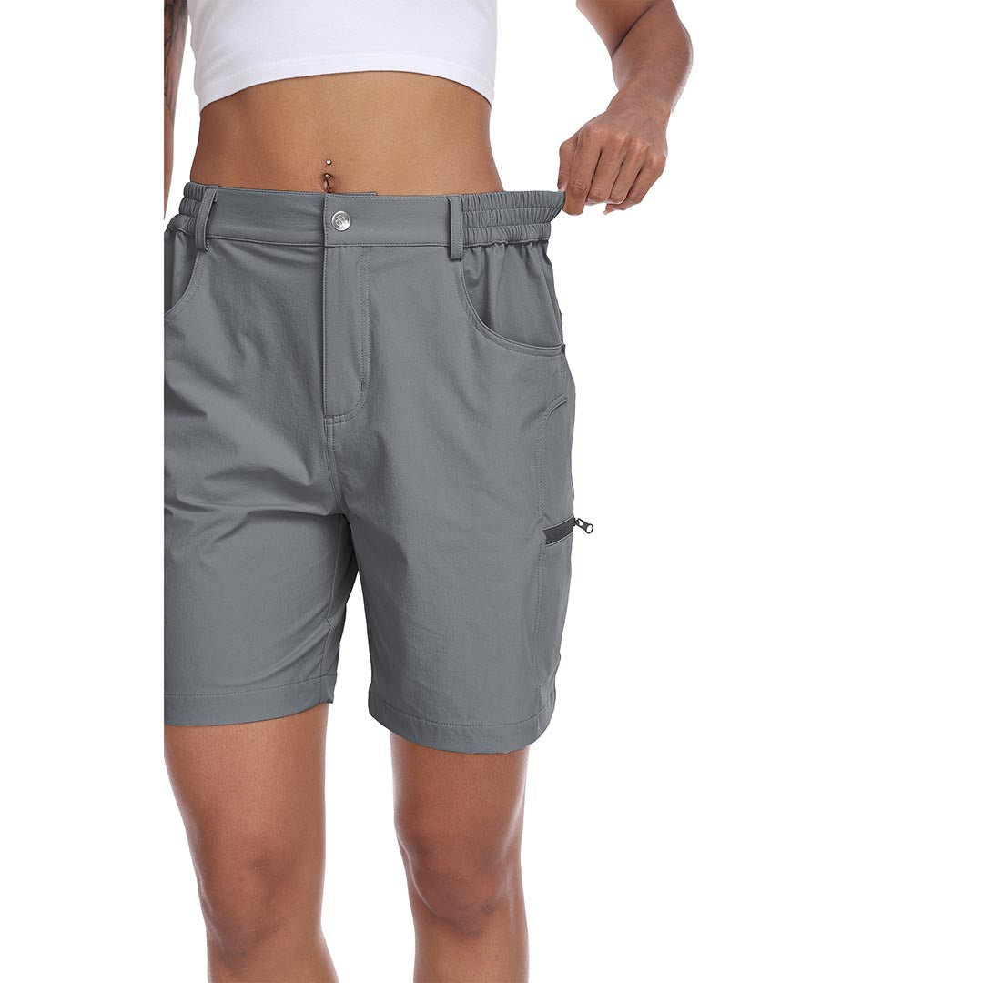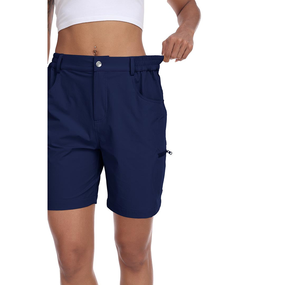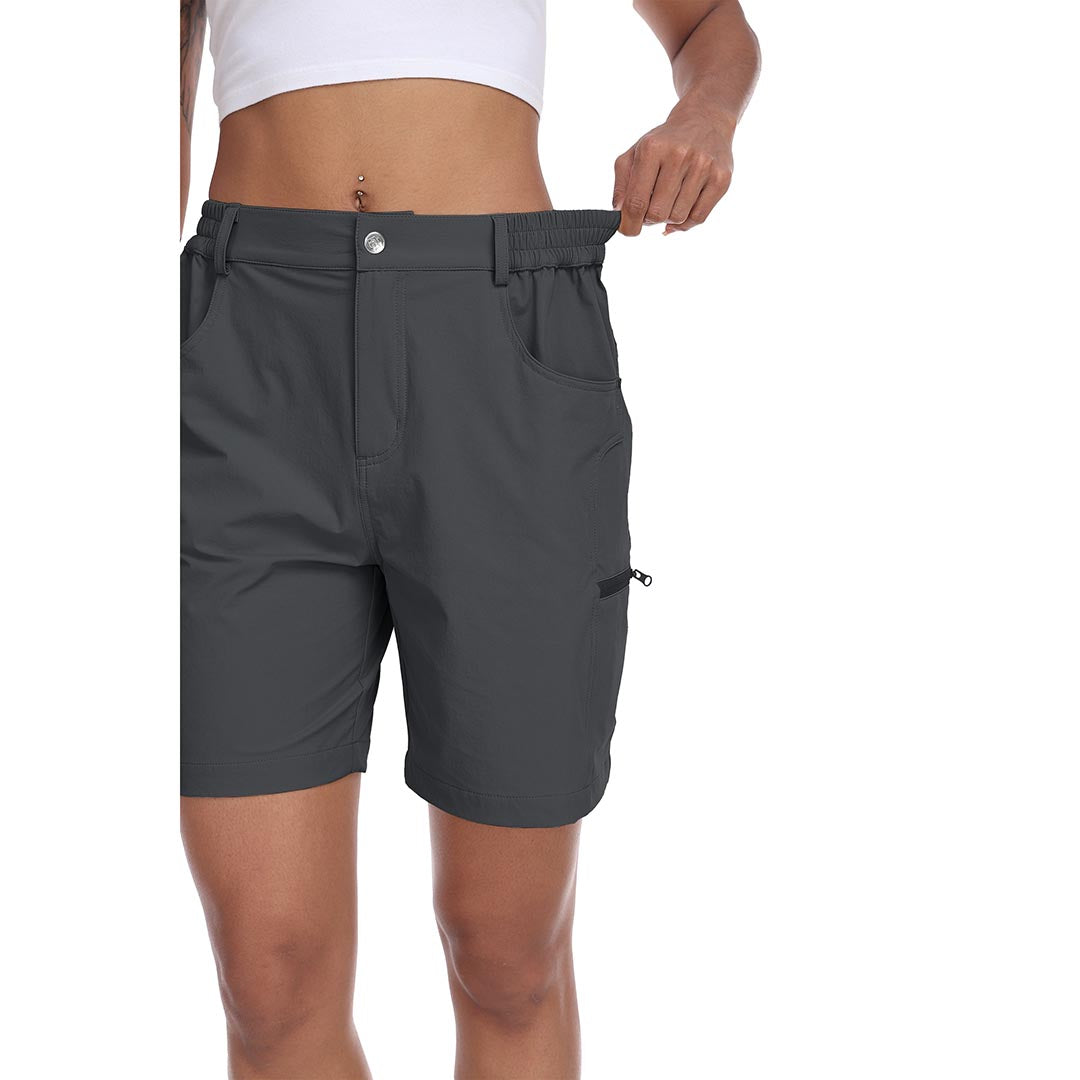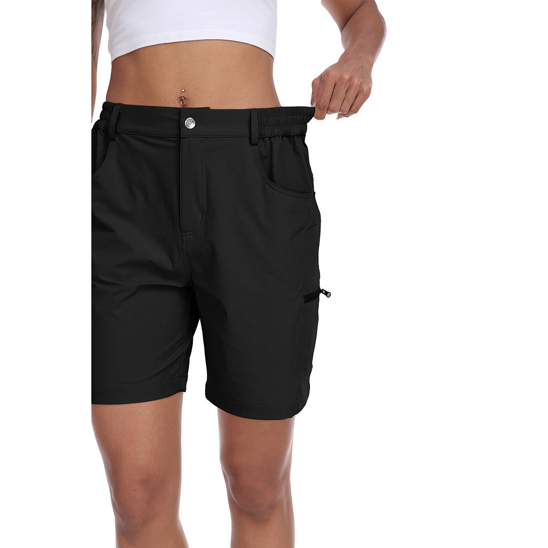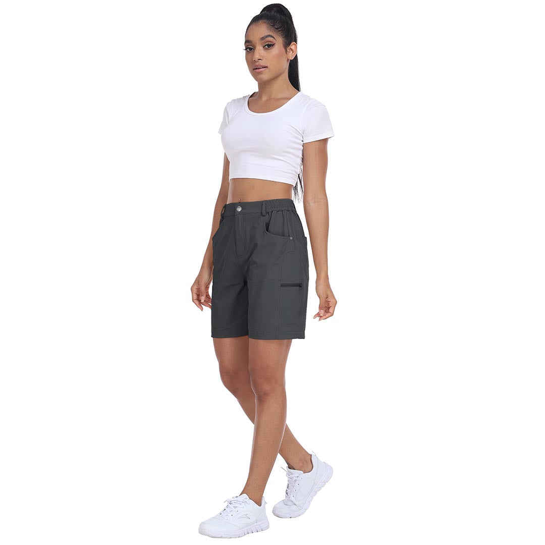 The partial elastic waistband of the womens cargo shorts is designed to ensure a greater fit when you wear them, giving you a customized comfort for your hiking trips.
