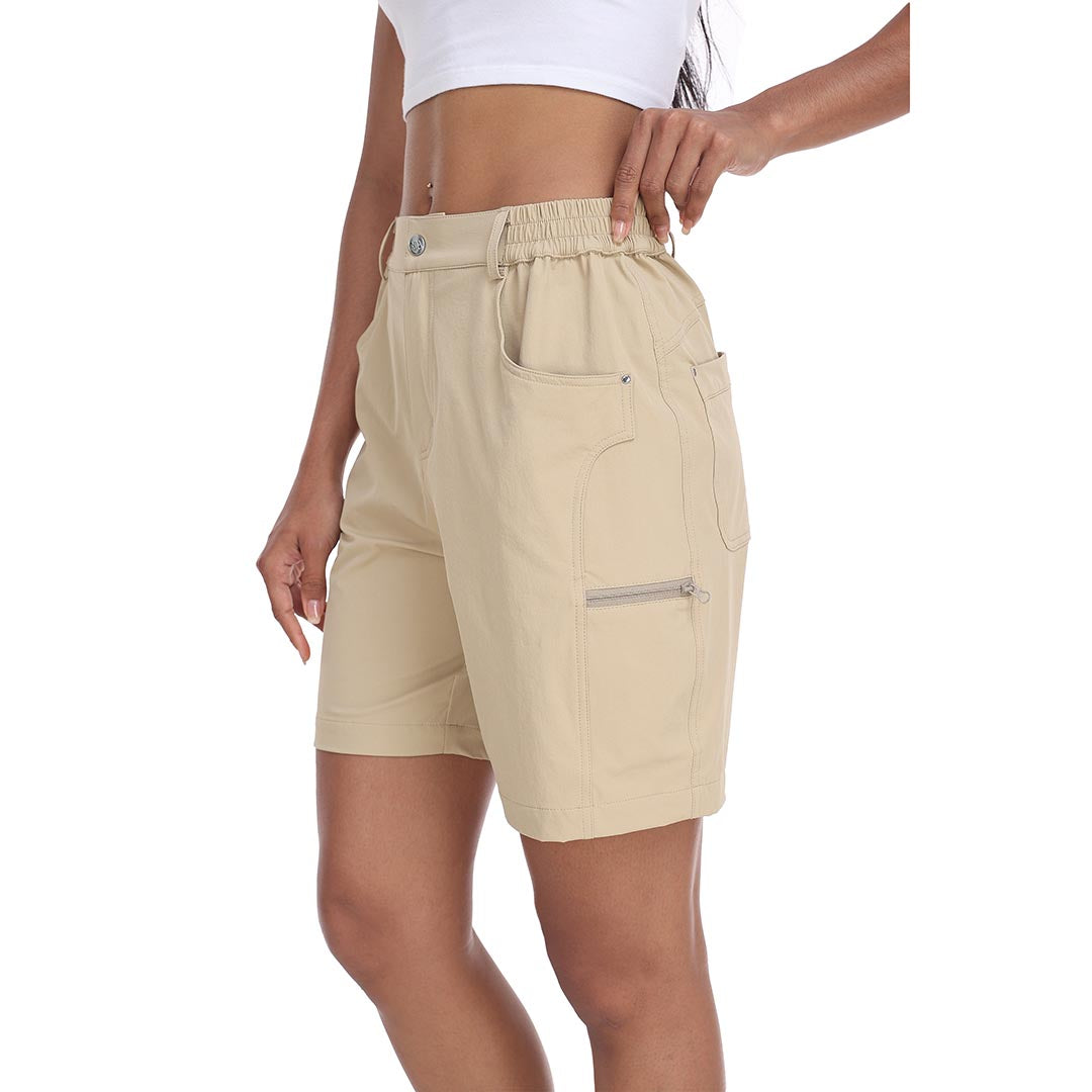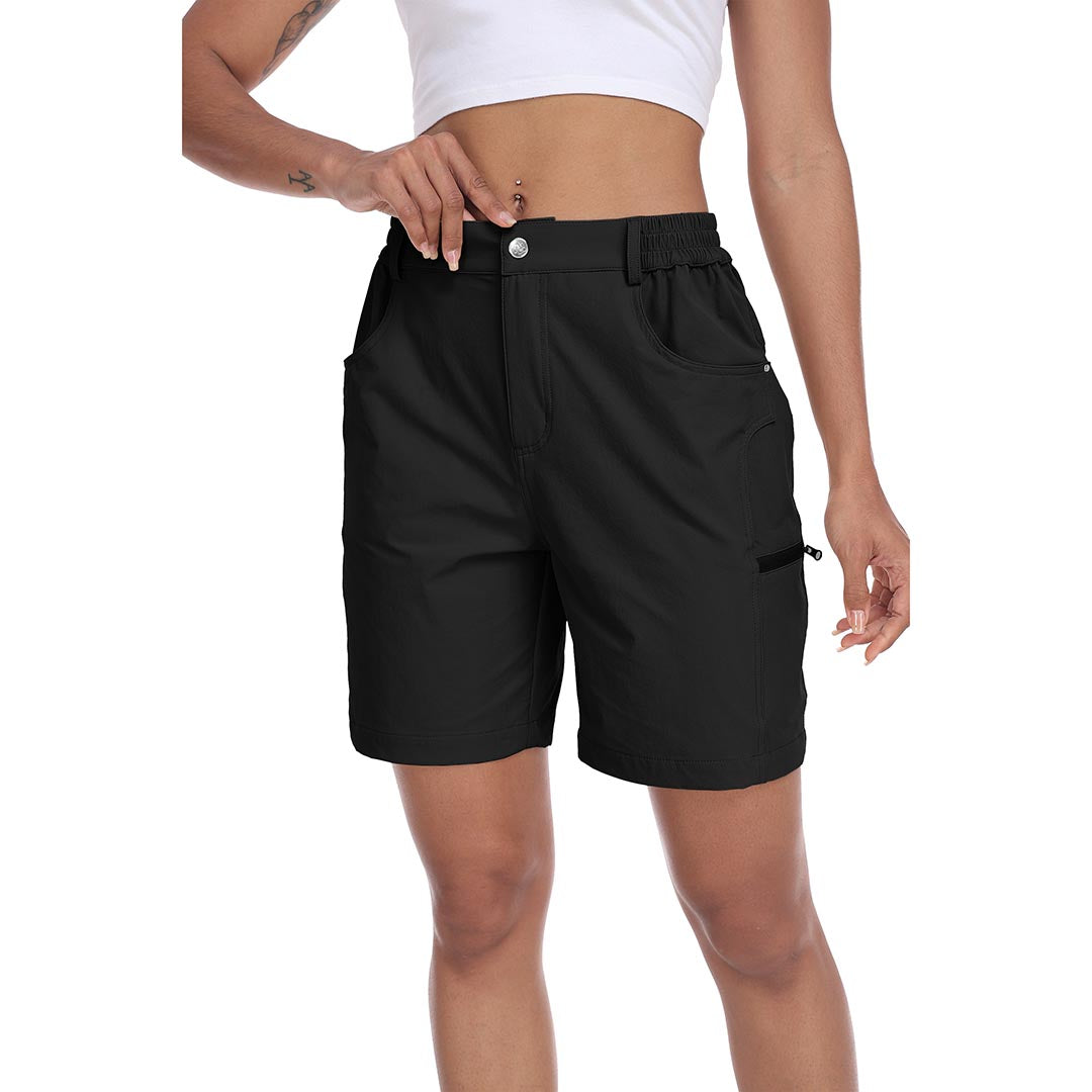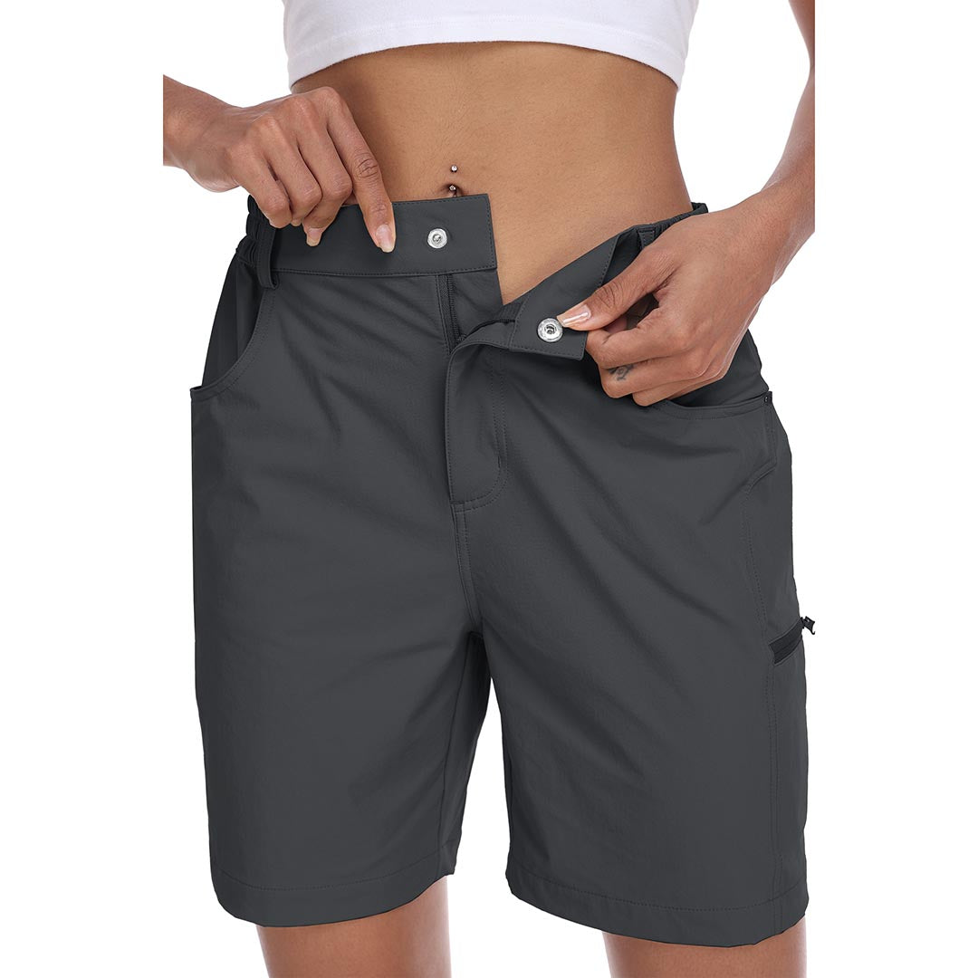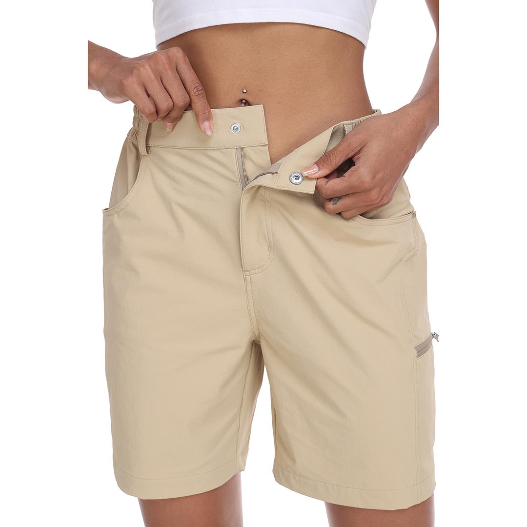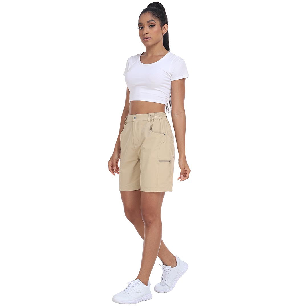 The partial elastic waistband of the womens cargo shorts is designed to ensure a greater fit when you wear them, giving you a customized comfort for your hiking trips.