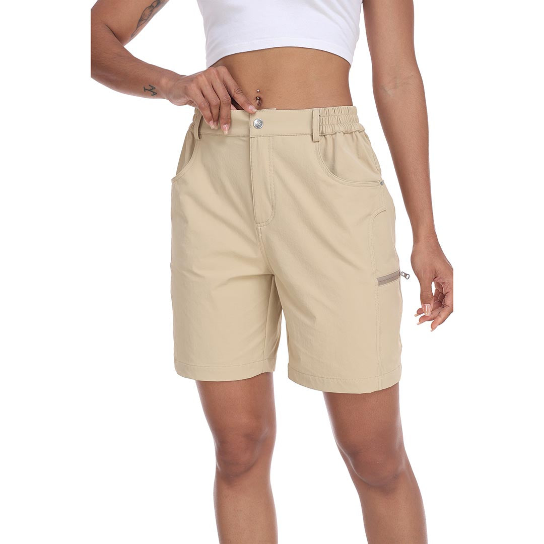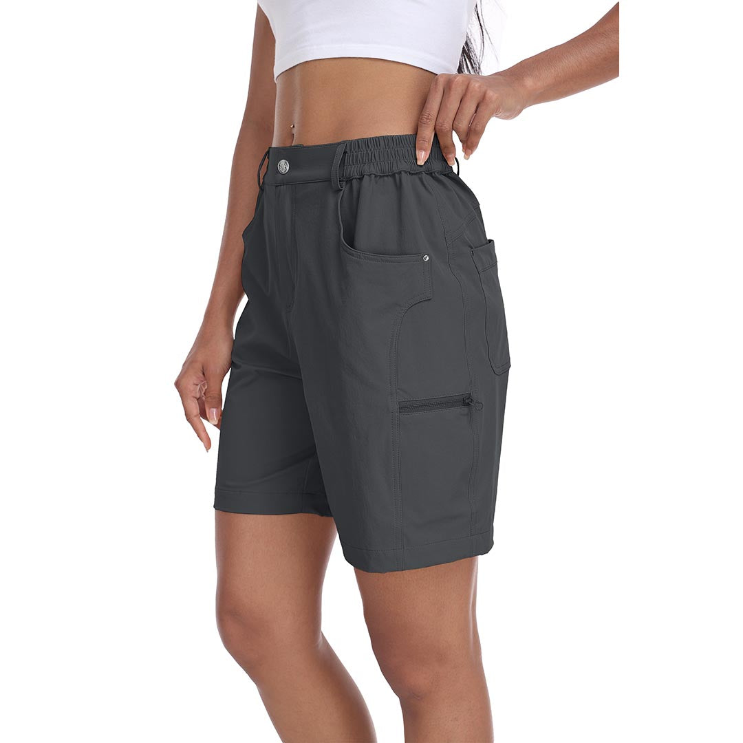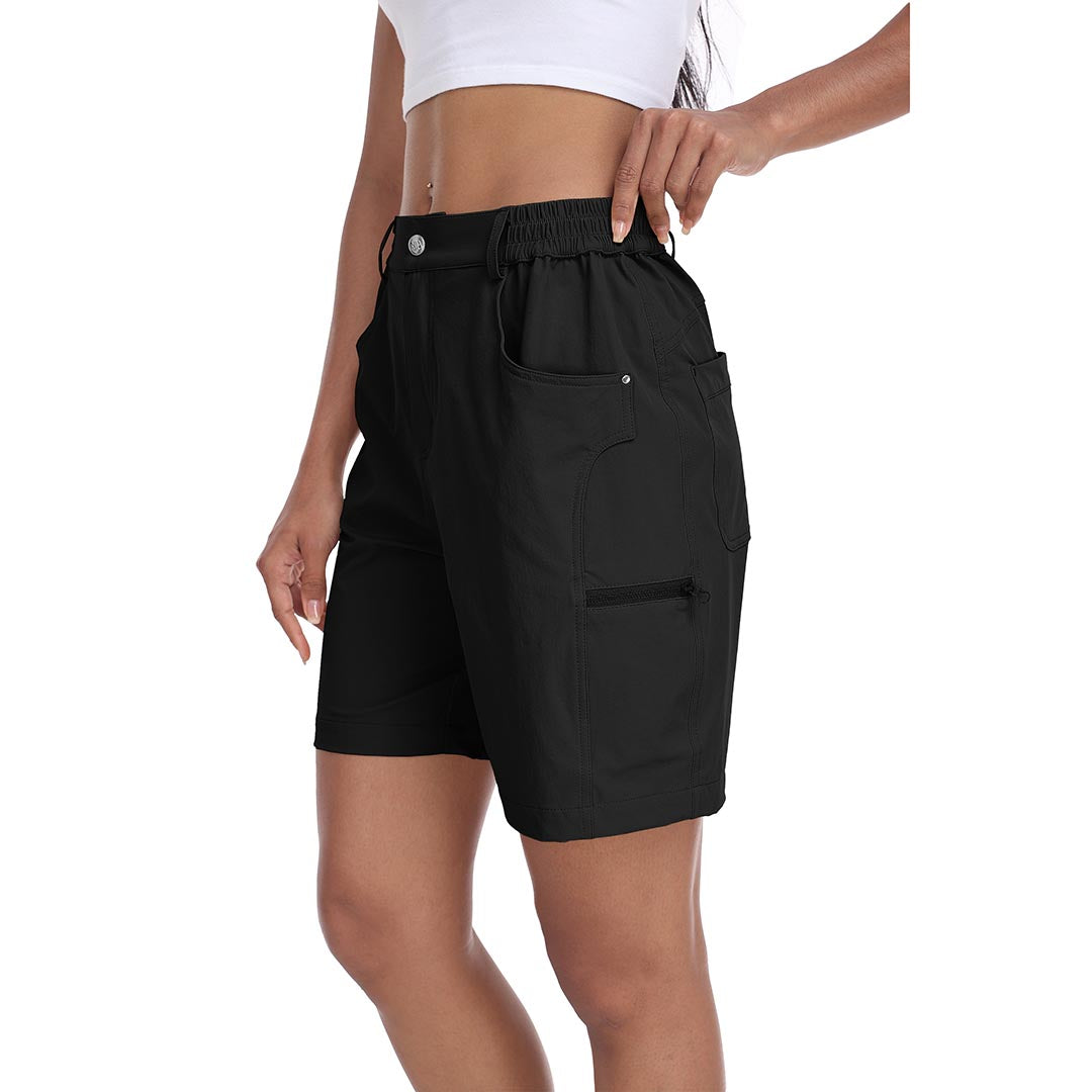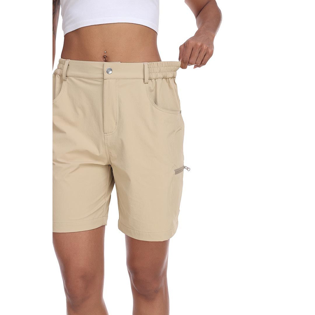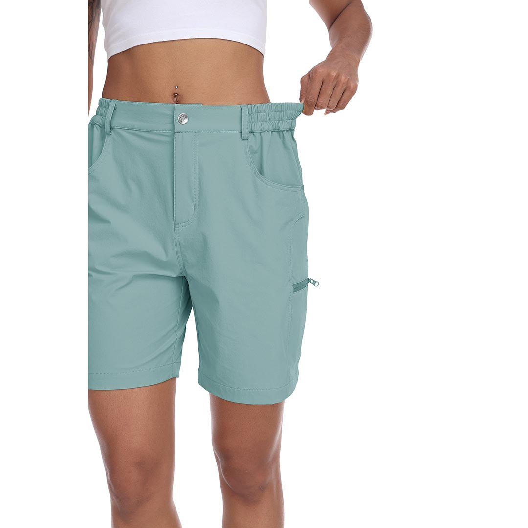 The partial elastic waistband of the womens cargo shorts is designed to ensure a greater fit when you wear them, giving you a customized comfort for your hiking trips.
