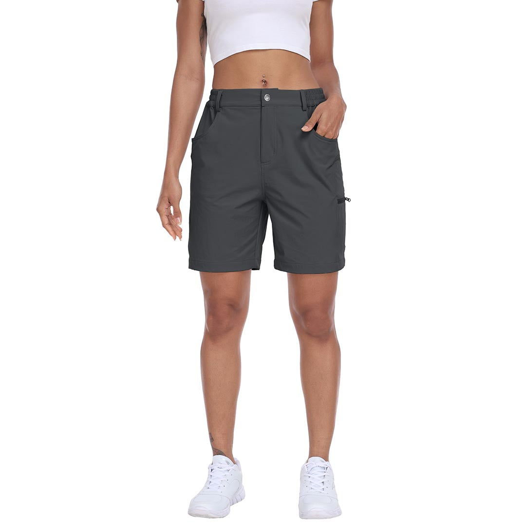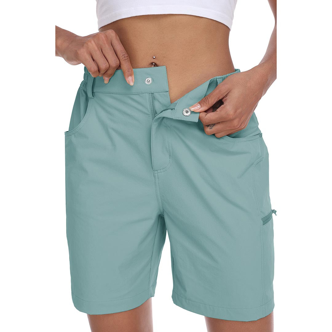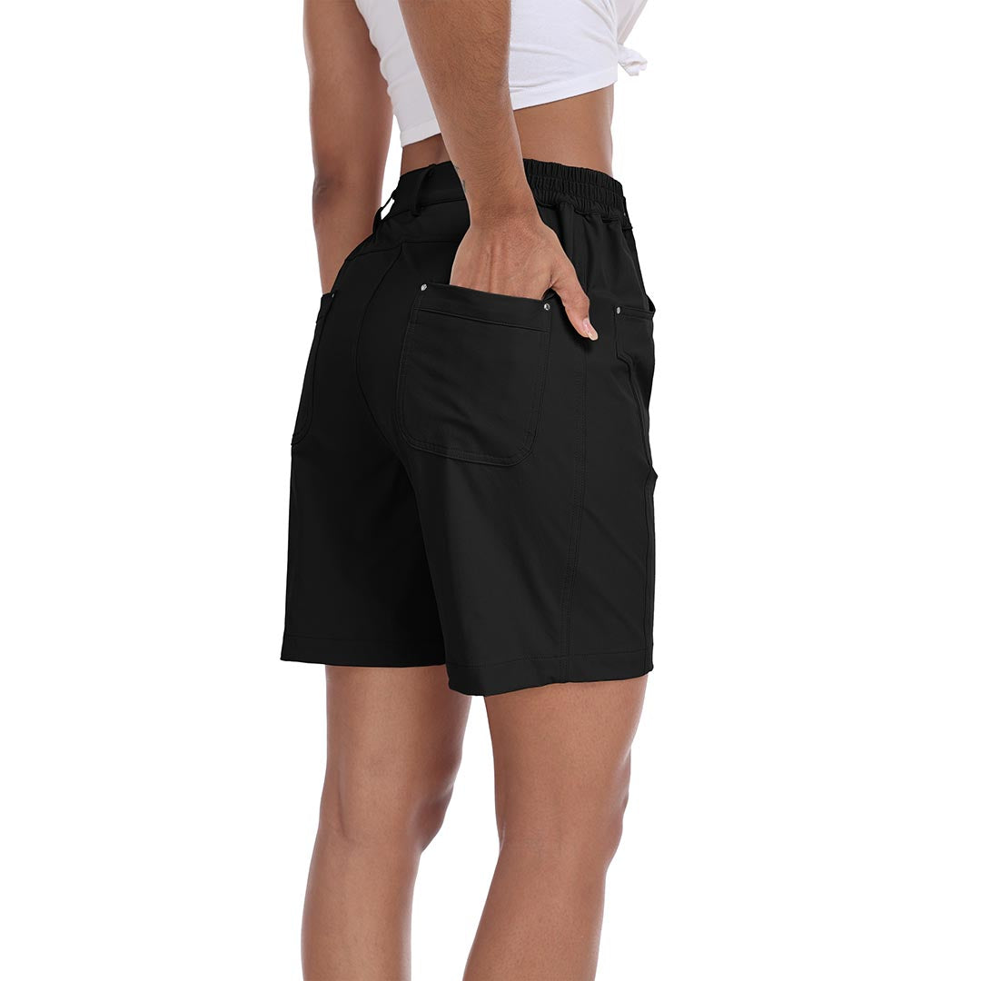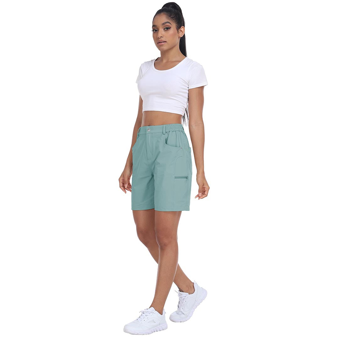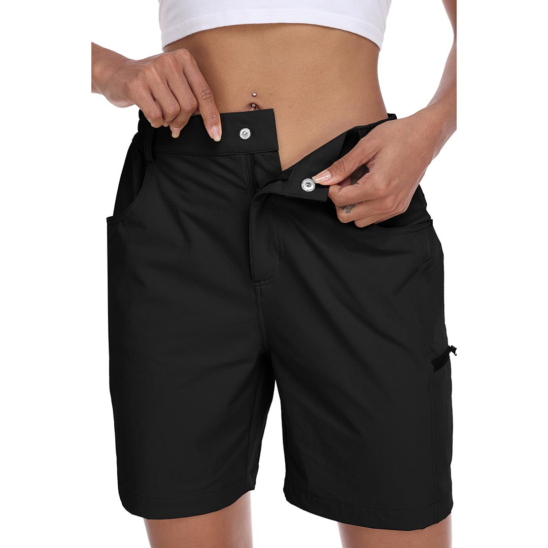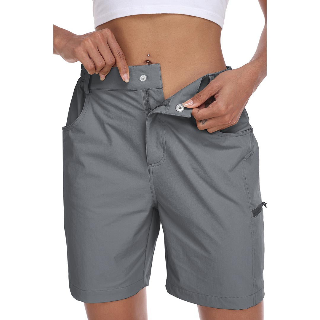 The partial elastic waistband of the womens cargo shorts is designed to ensure a greater fit when you wear them, giving you a customized comfort for your hiking trips.