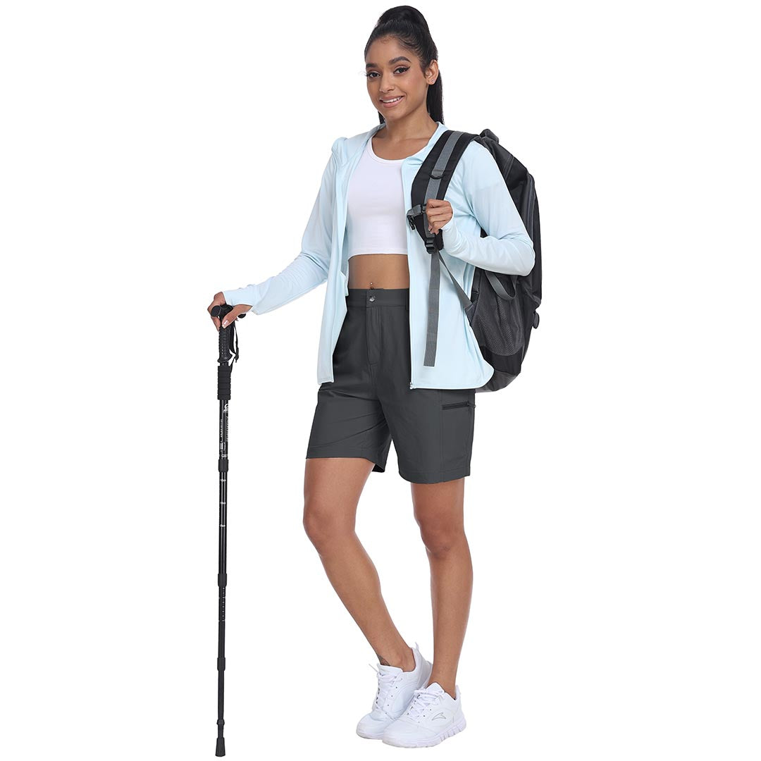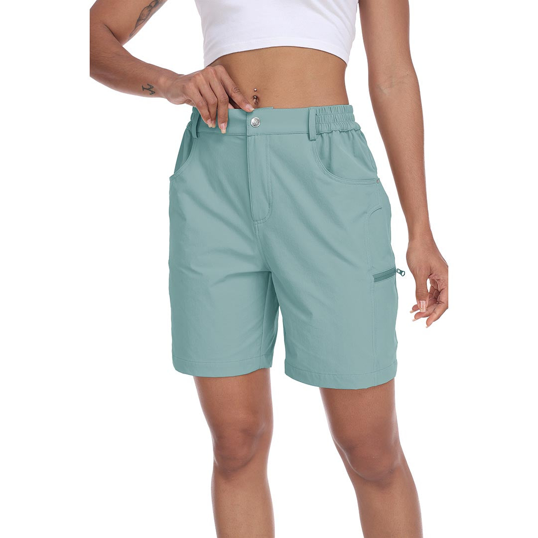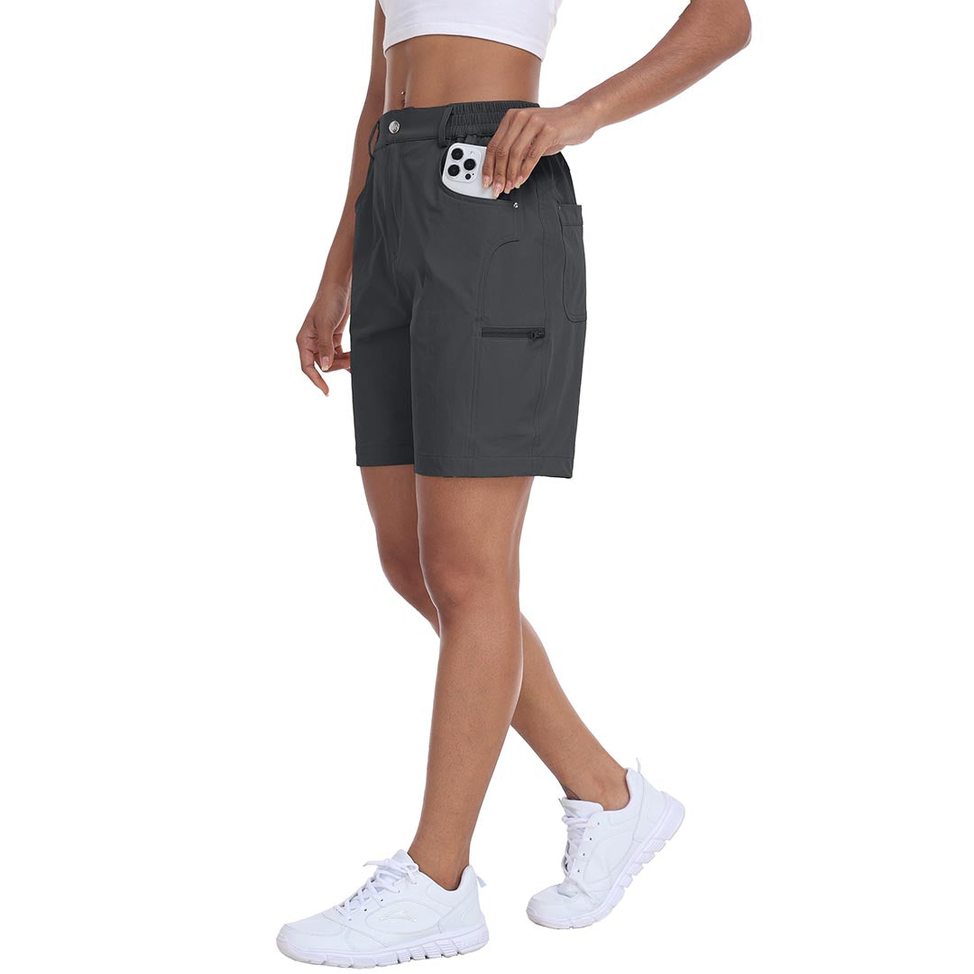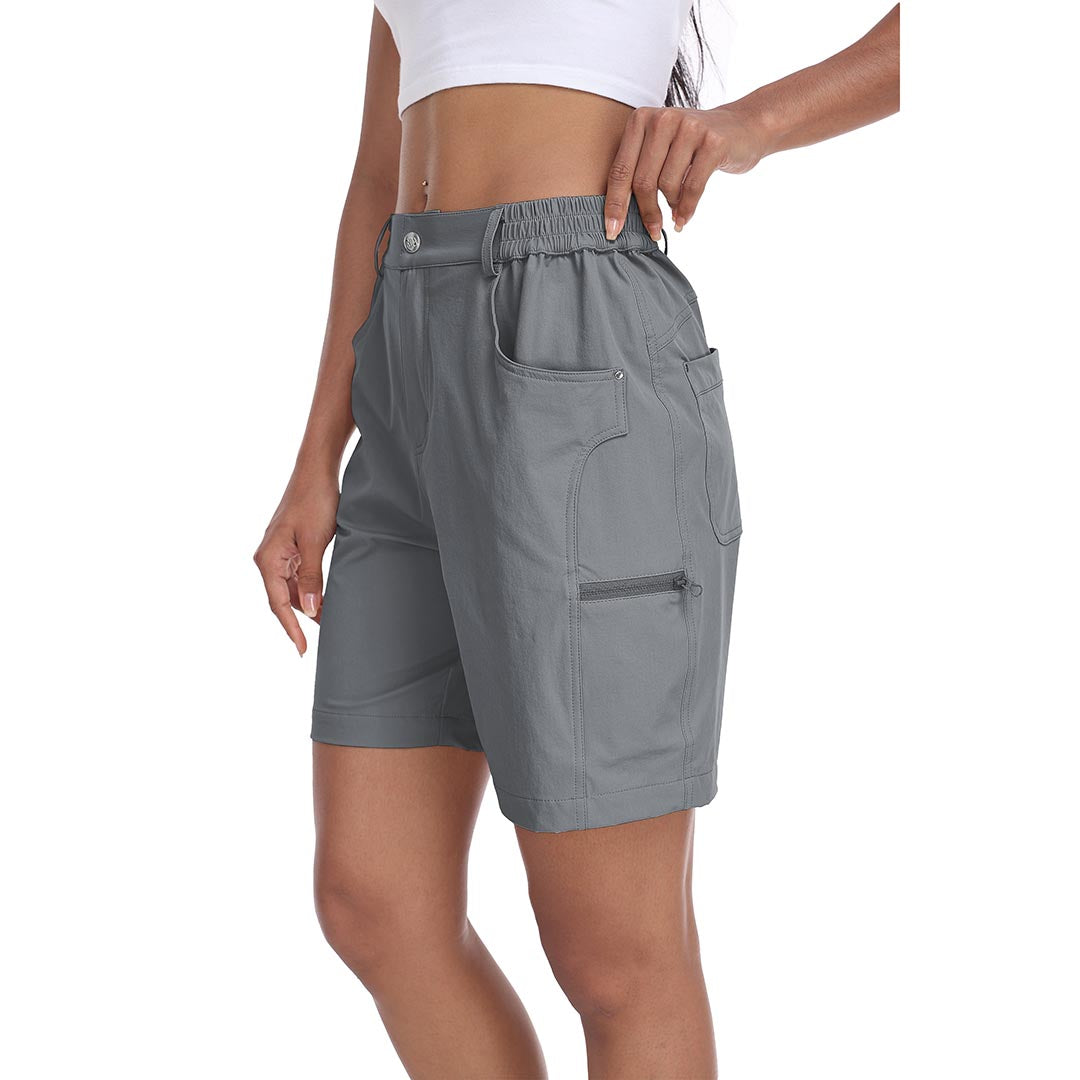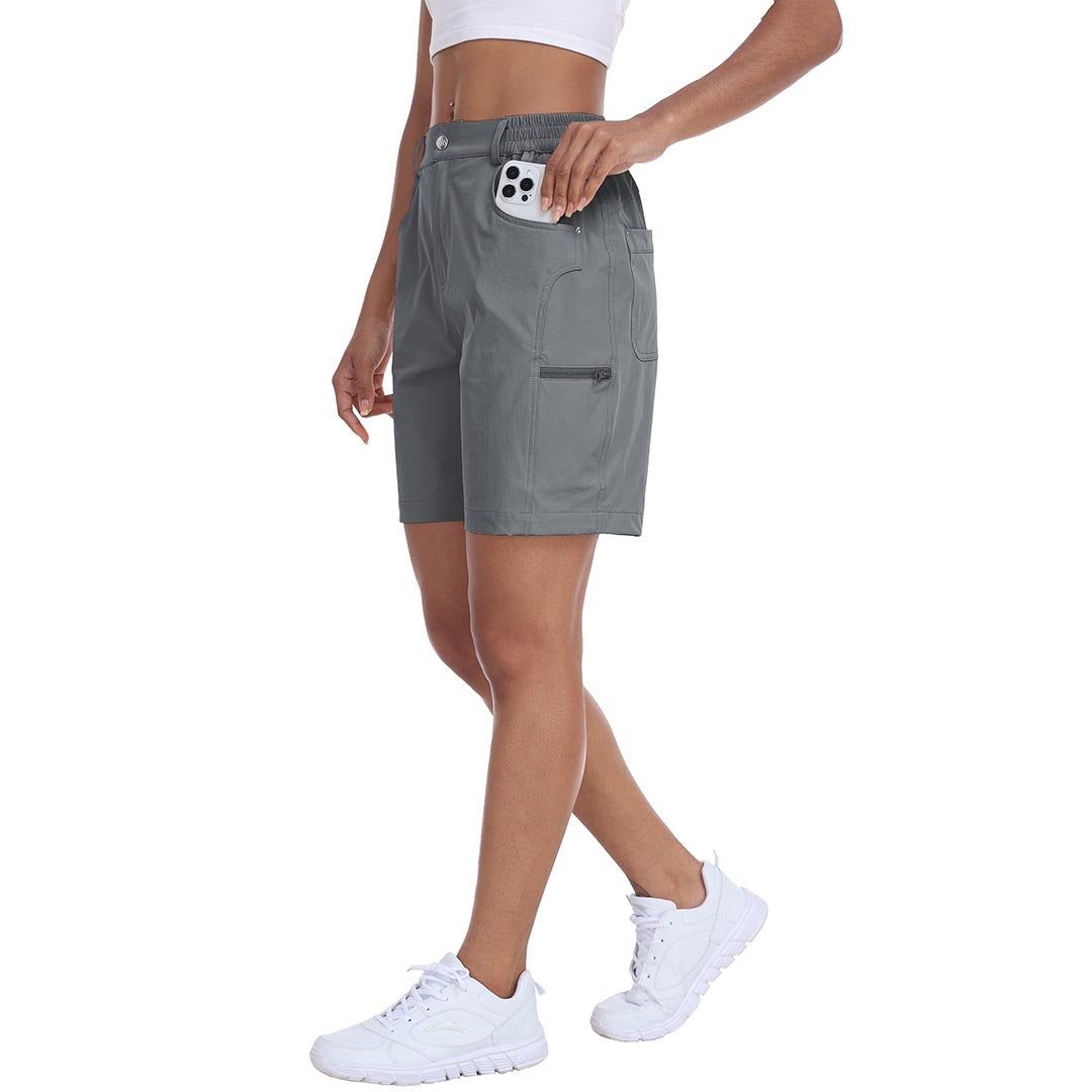The partial elastic waistband of the womens cargo shorts is designed to ensure a greater fit when you wear them, giving you a customized comfort for your hiking trips.