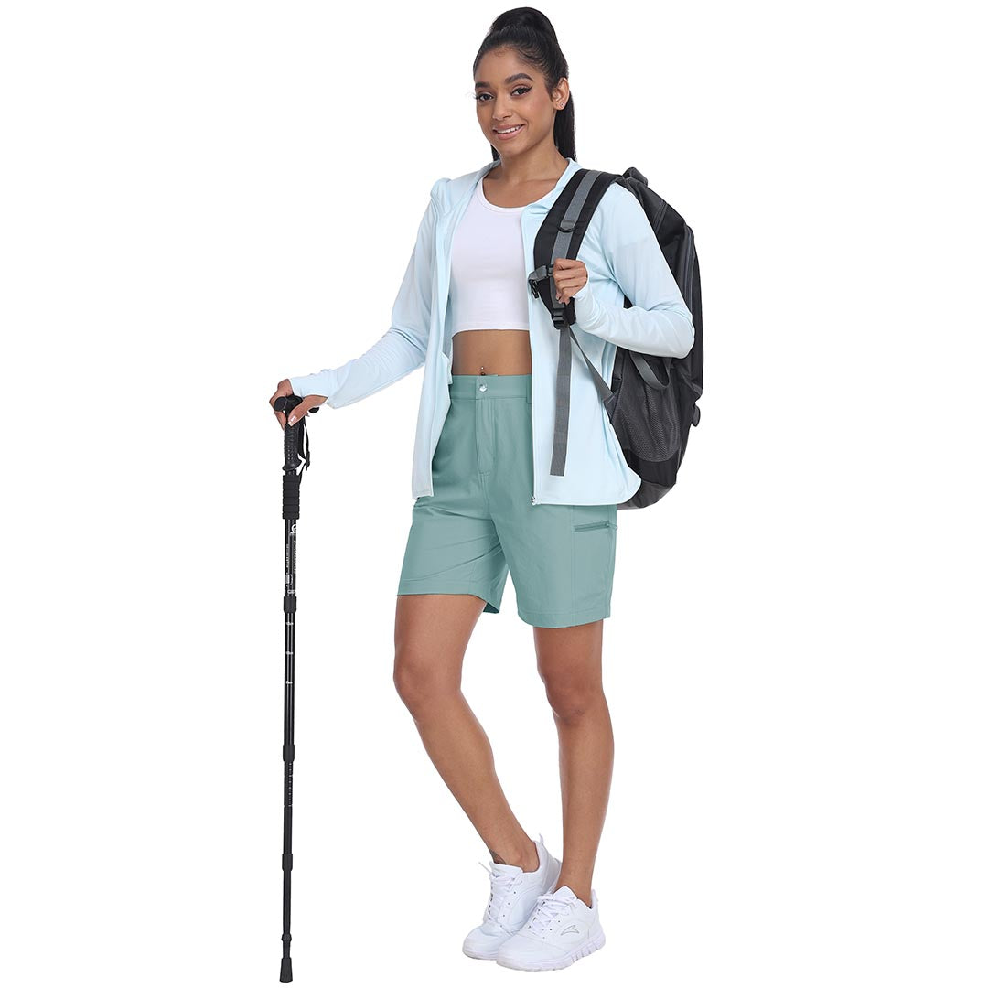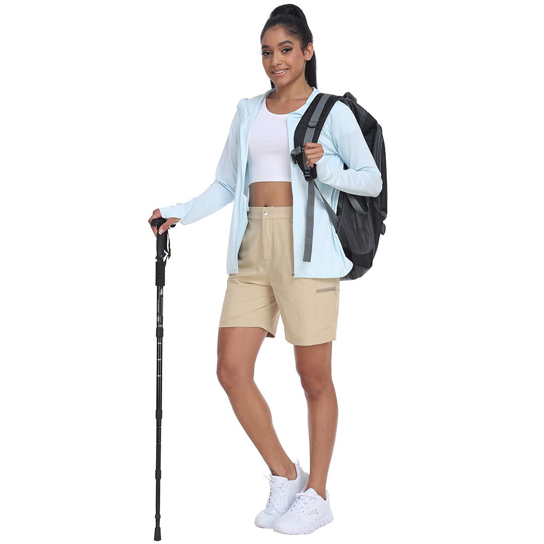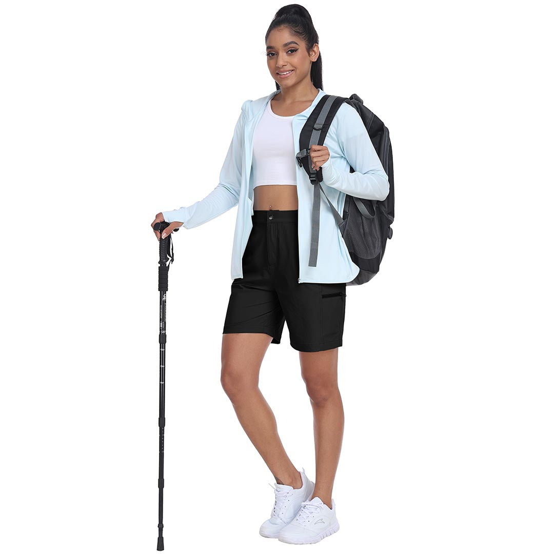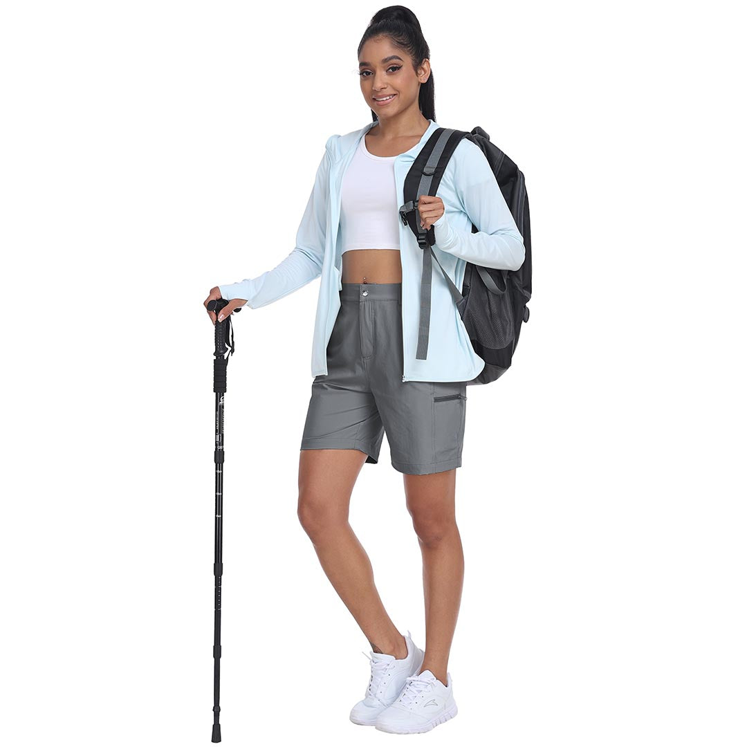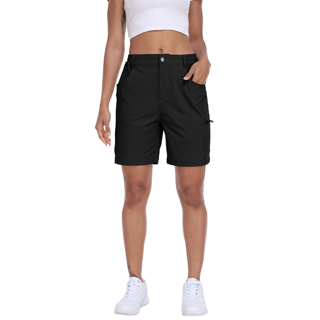 The partial elastic waistband of the womens cargo shorts is designed to ensure a greater fit when you wear them, giving you a customized comfort for your hiking trips.