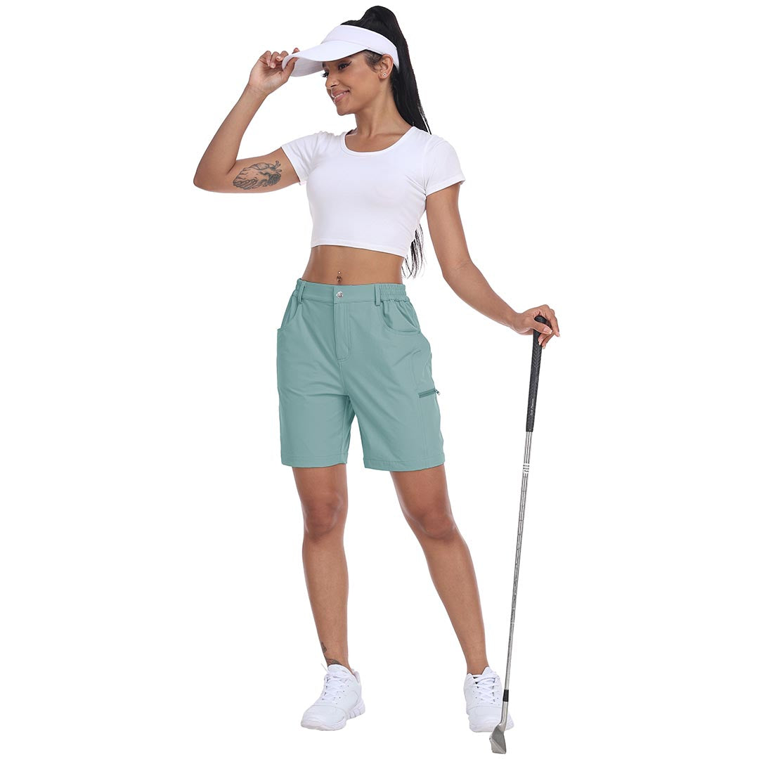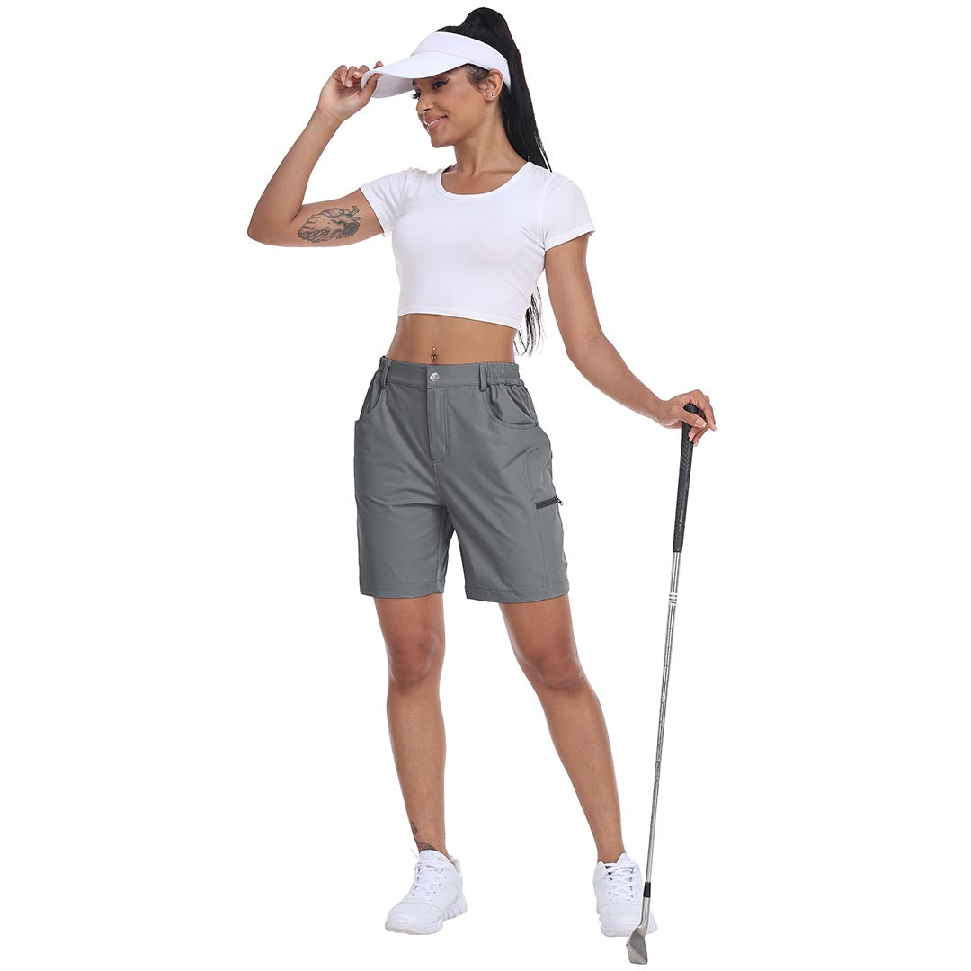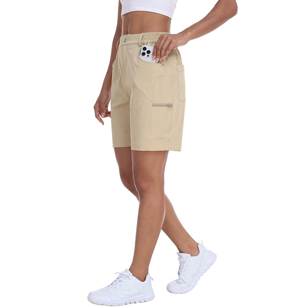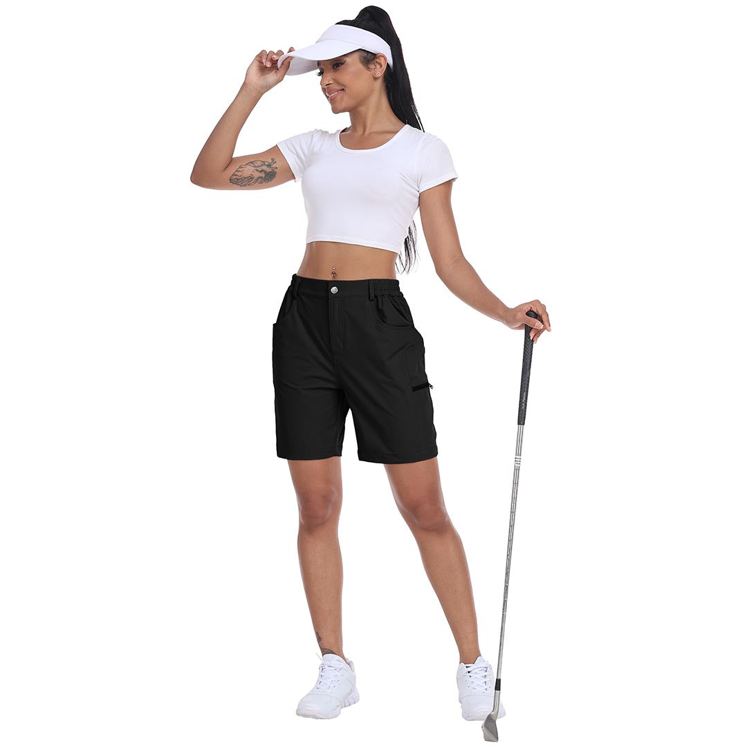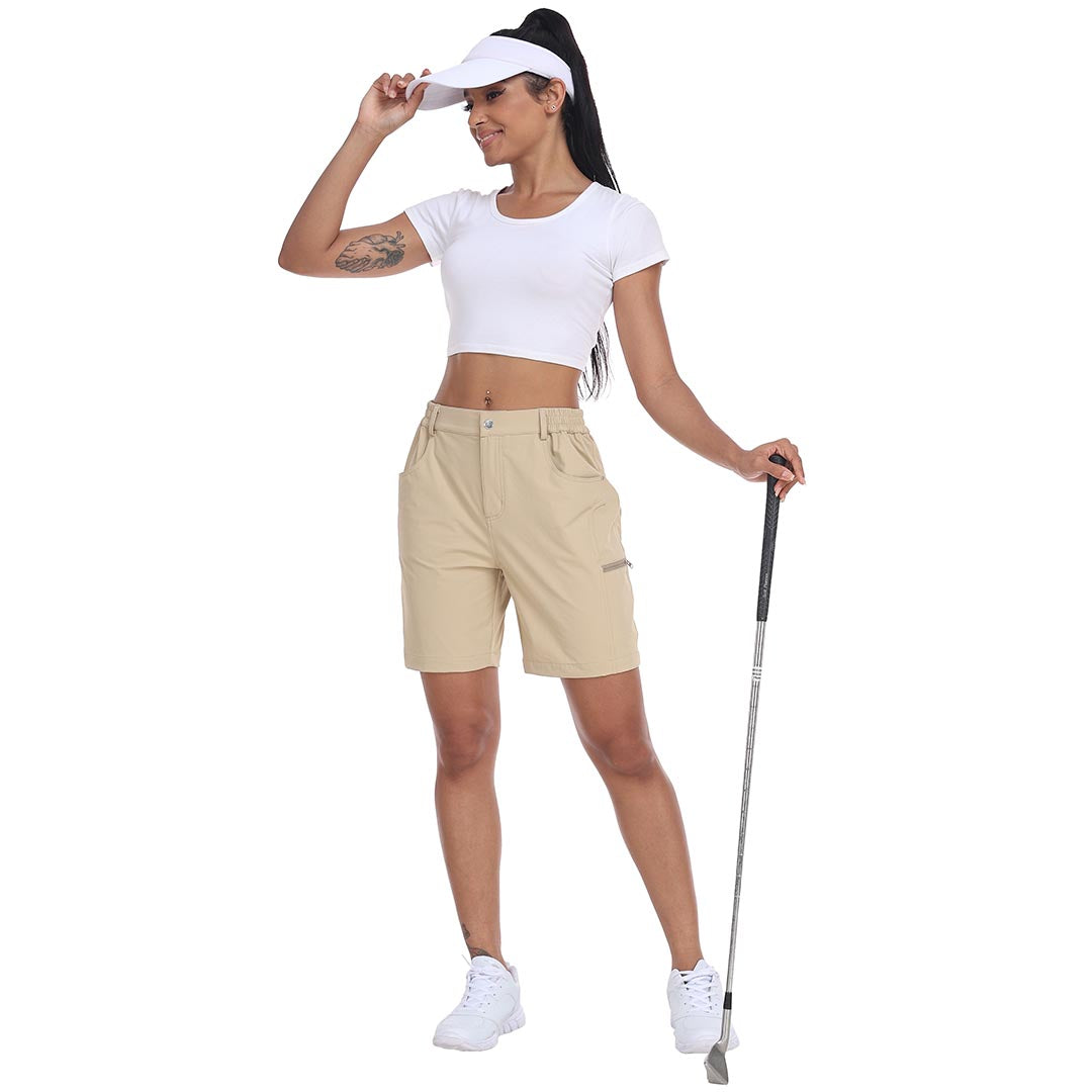 【5 POCKETS】-These outdoor cargo shorts for women have 2 side pockets and 2 back pockets to carry your phone, golf glove, or scorecards, and a zipper cargo pocket to keep your items safe.