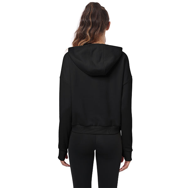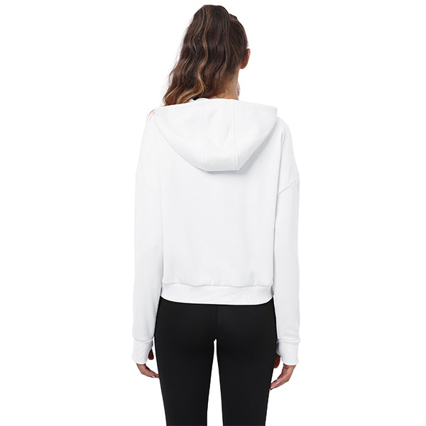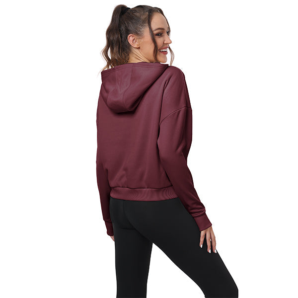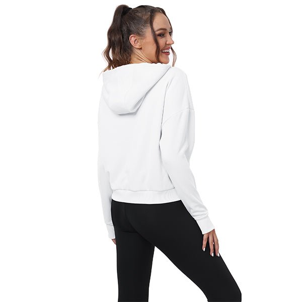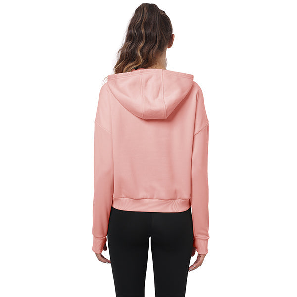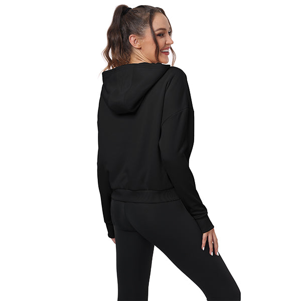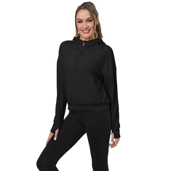 Thumbhole sweatshirt helps keep sleeves in place and hands warm; 2 side zip pockets on the front make it easy to carry small items while training; Unique cut makes the hem neither too long nor too short, making it more functional Show off the female figure.