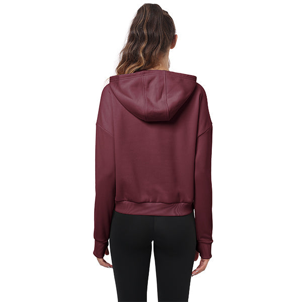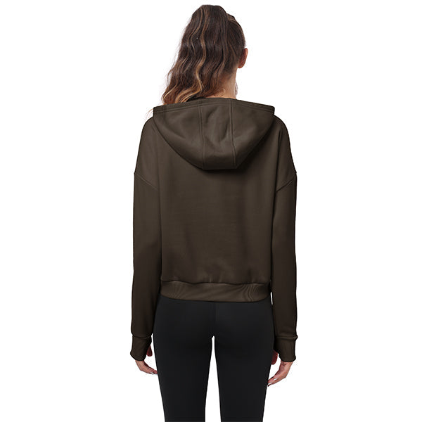 Women's hooded track jacket, long sleeve zippered hoodie, fleece lined hoodie, solid color, thumbholes, hood, zippered pockets, ribbed hem and cuffs, loose fit.