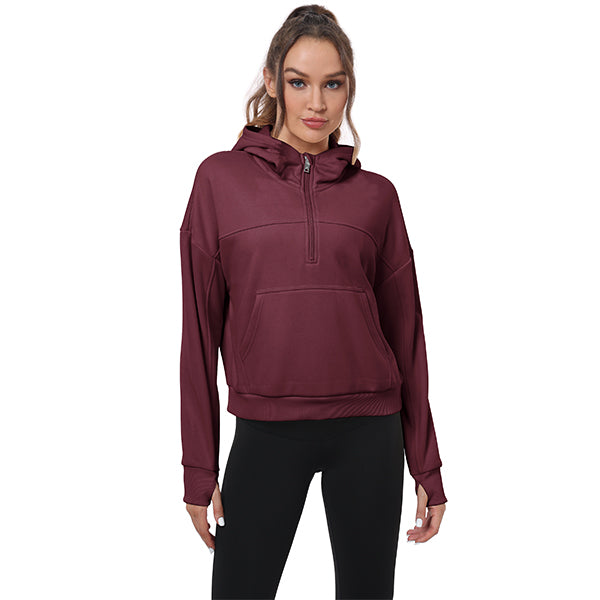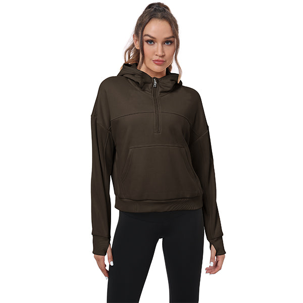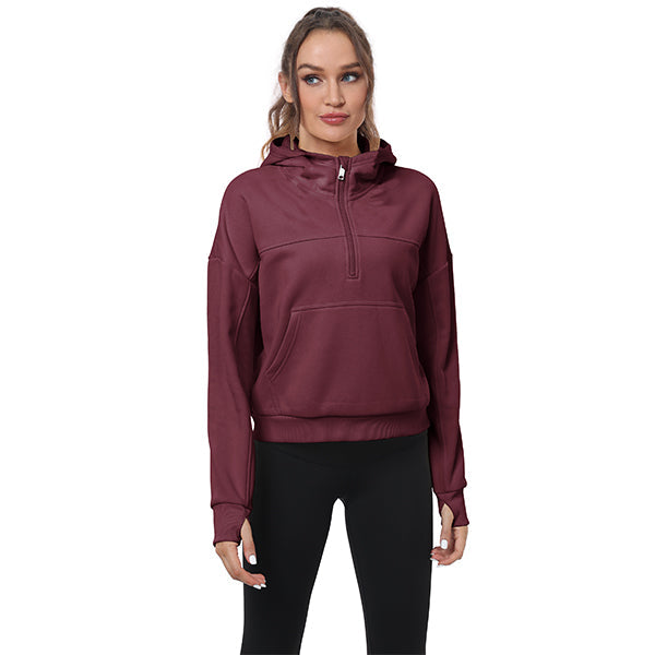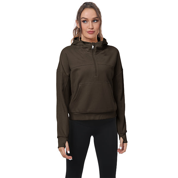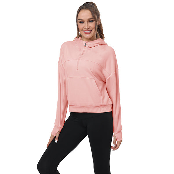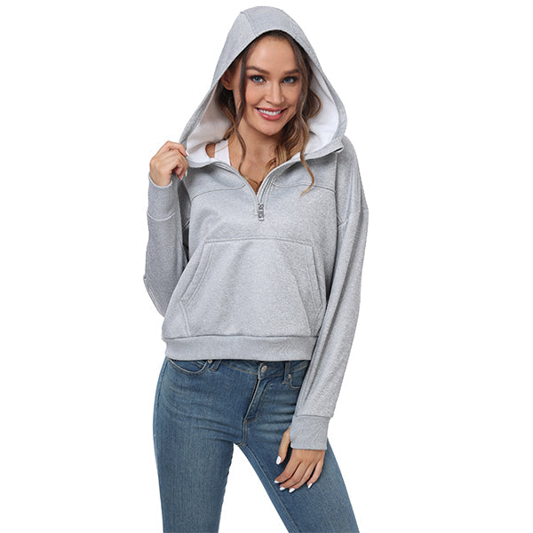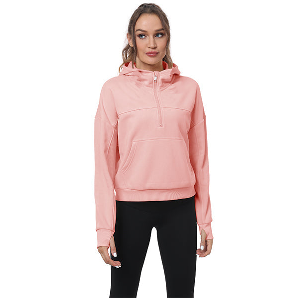 Women's Half Zip Hooded Sweatshirt Long Sleeve