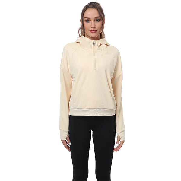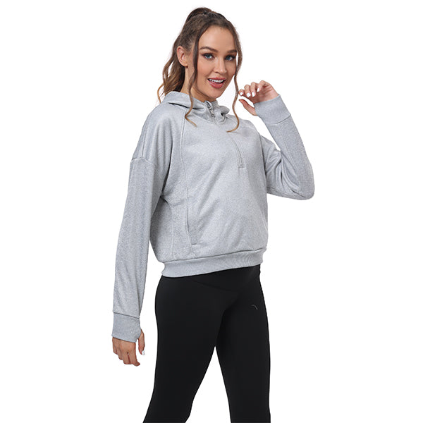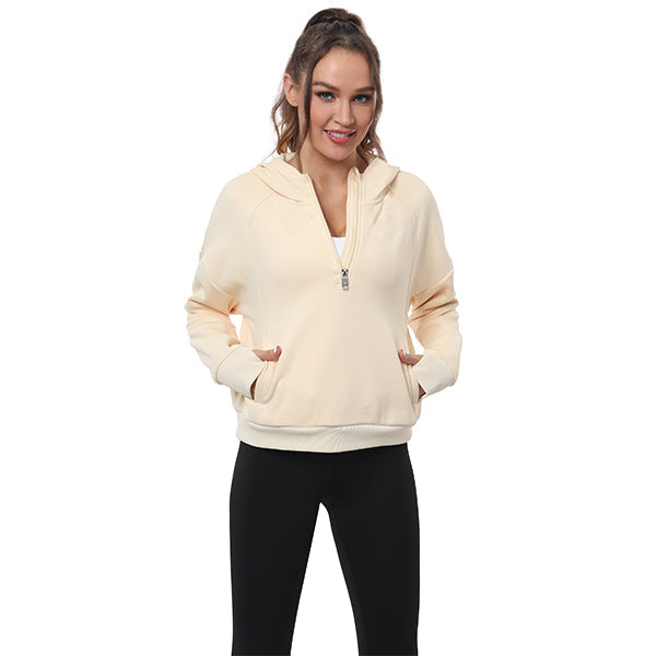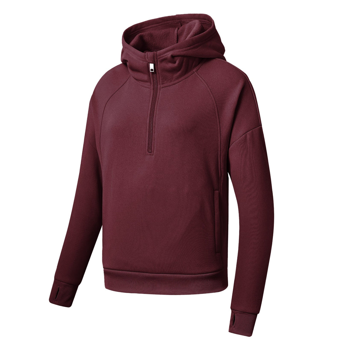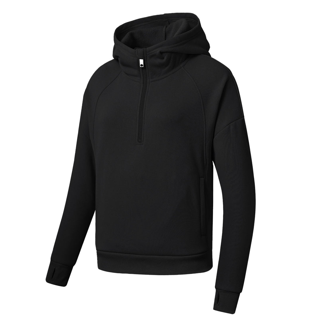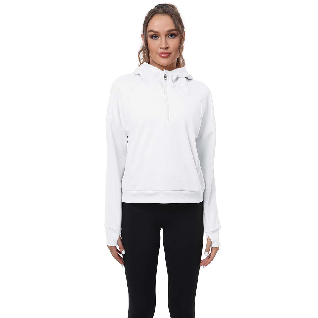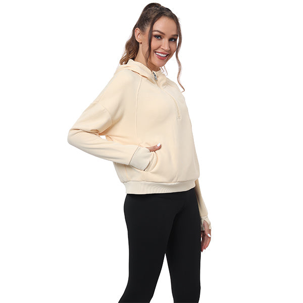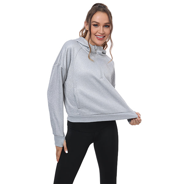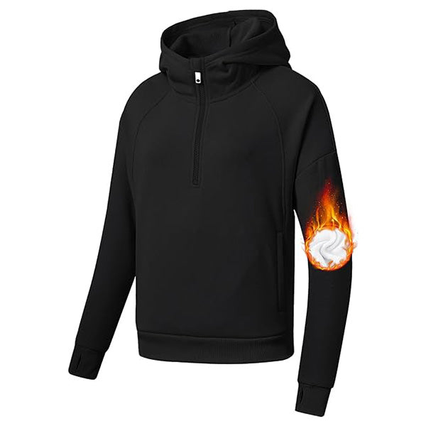 Athletic workout hoodies,women pullover sweatshirt,long sleeve with thumb hole ,1/2 zip up collar, solid color,cropped length,stand collar,fleece lined,2 insert pockets,relaxed fit,crop top
