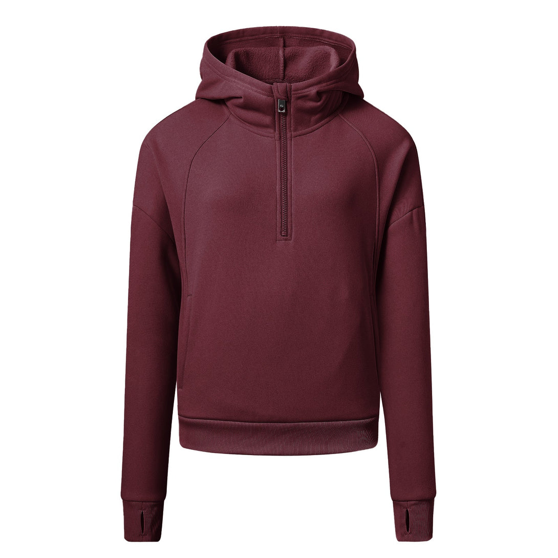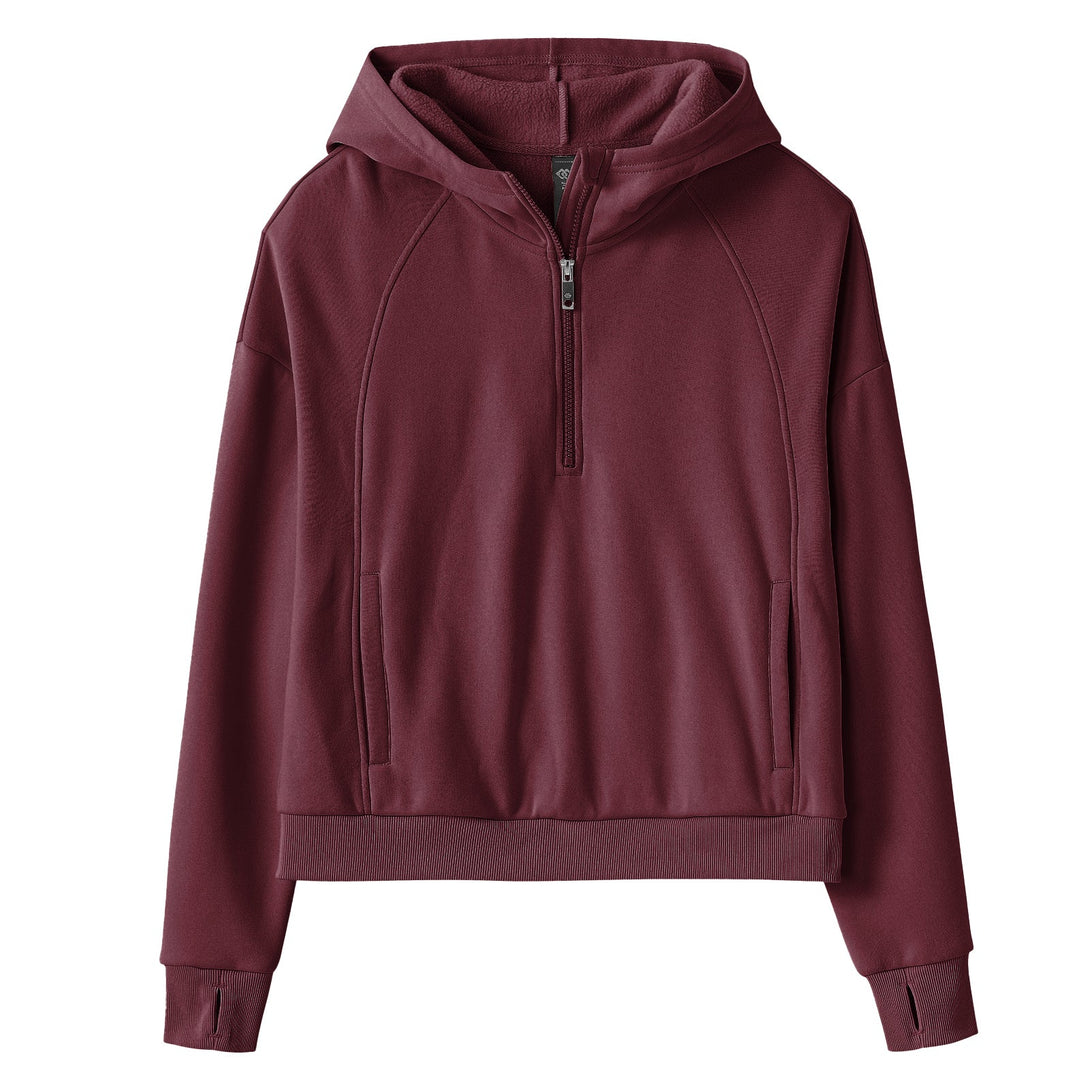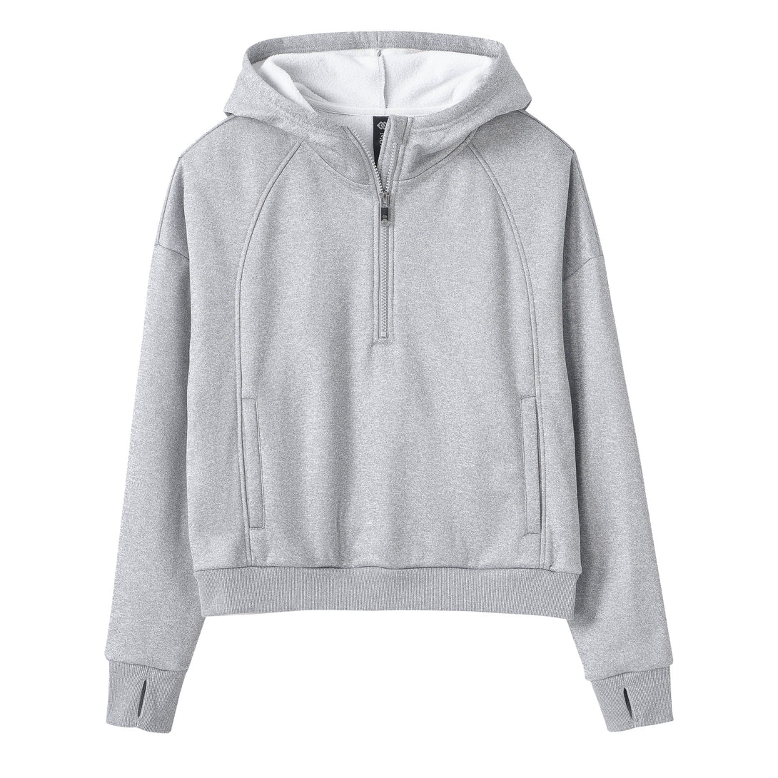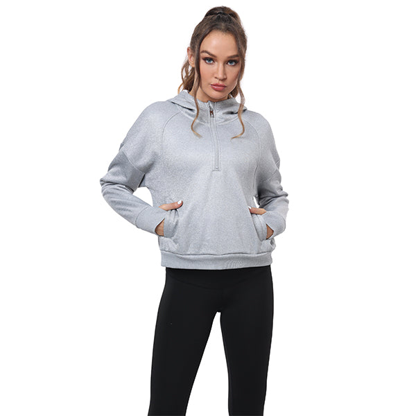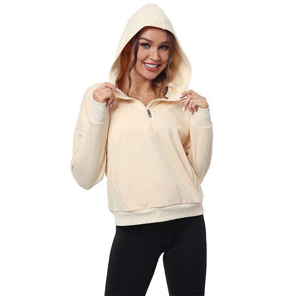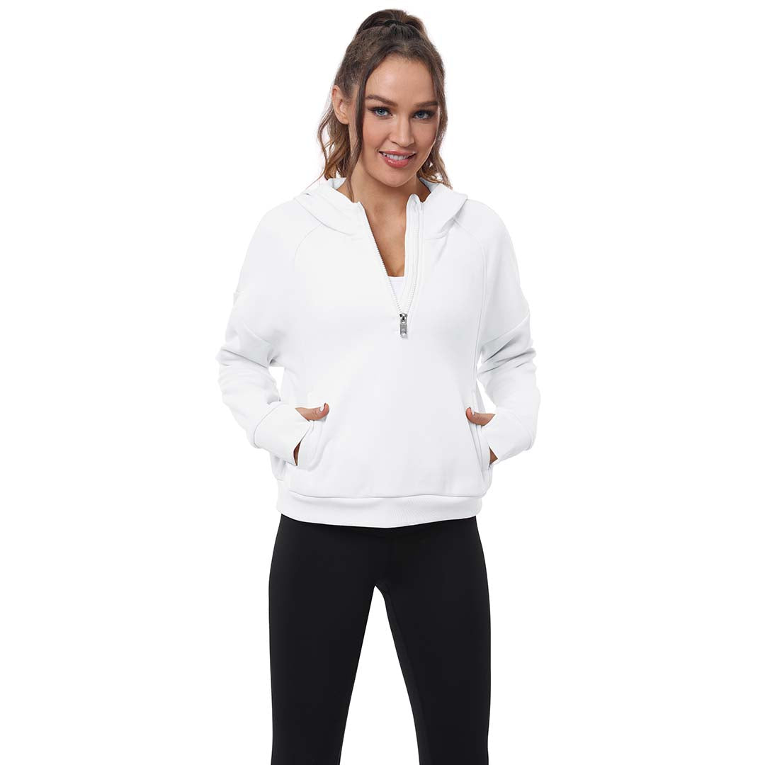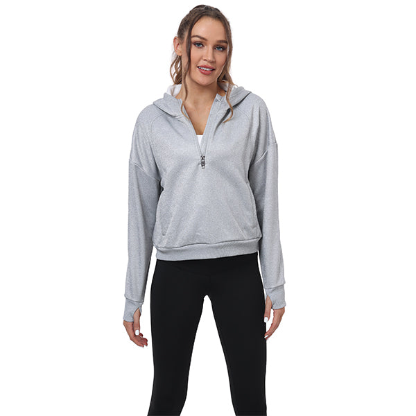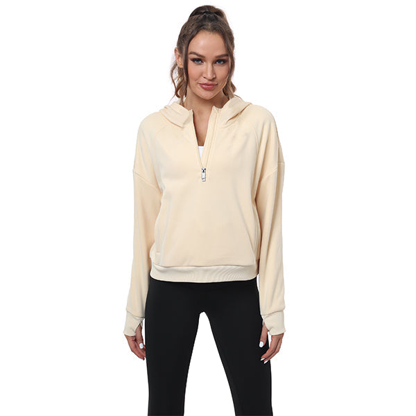 Athletic workout hoodies,women pullover sweatshirt,long sleeve with thumb hole ,1/2 zip up collar, solid color,cropped length,stand collar,fleece lined,2 insert pockets,relaxed fit,crop top