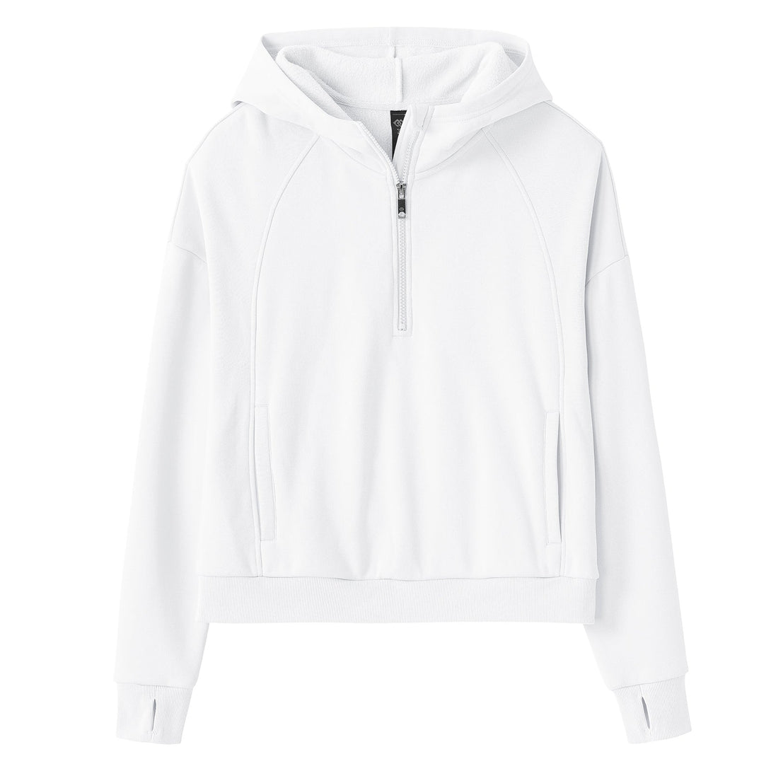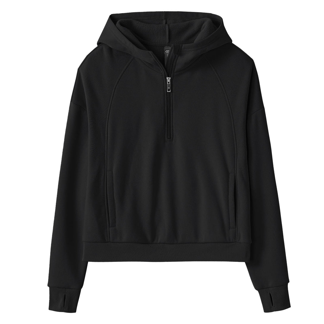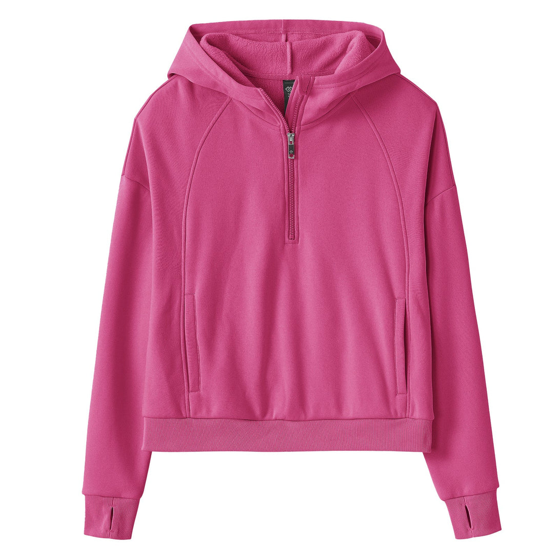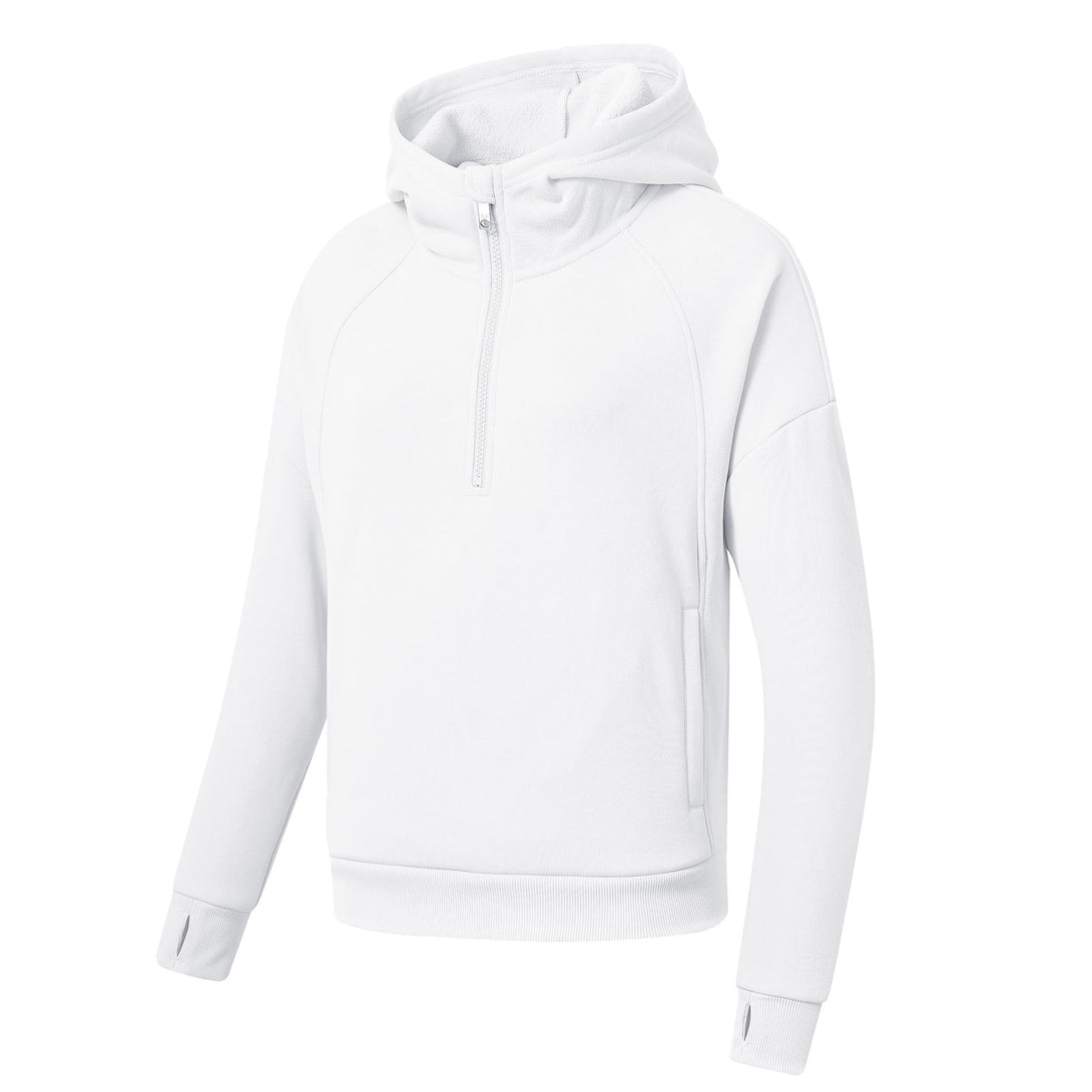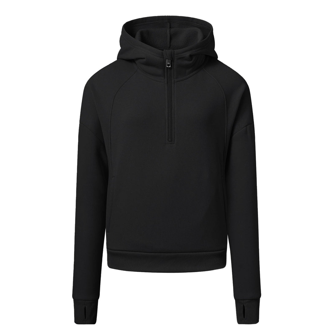Athletic workout hoodies,women pullover sweatshirt,long sleeve with thumb hole ,1/2 zip up collar, solid color,cropped length,stand collar,fleece lined,2 insert pockets,relaxed fit,crop top