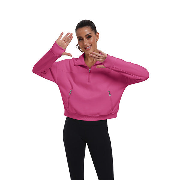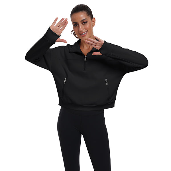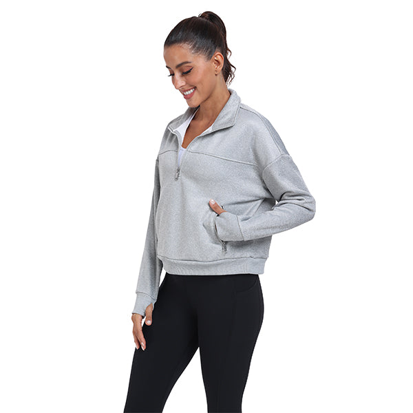 The cropped half zipper sweatshirt for women has a half zipper neckline for a better fit and a stand up collar to keep your neck warm, the solid color long sleeve cropped tops pair well with jeans, athletic pants, joggers,wide-leg pants, and tights