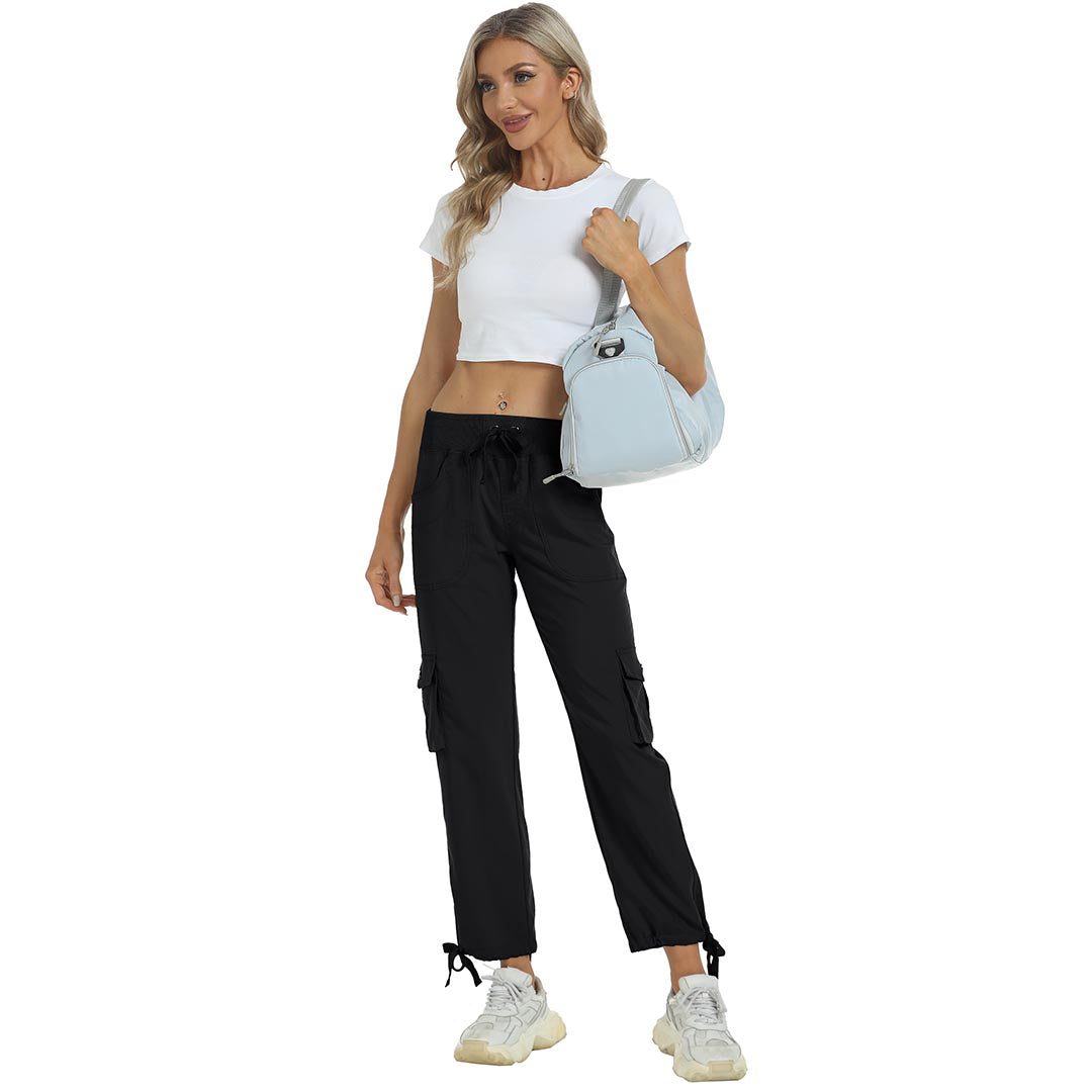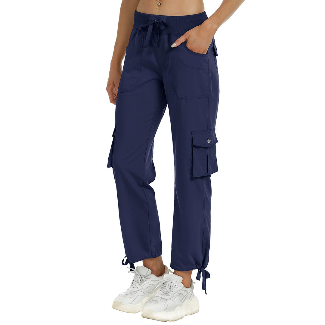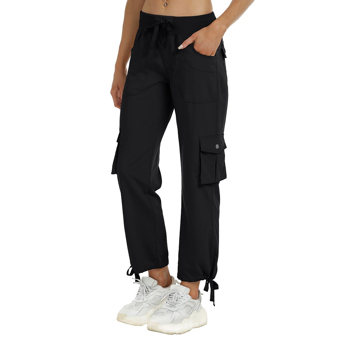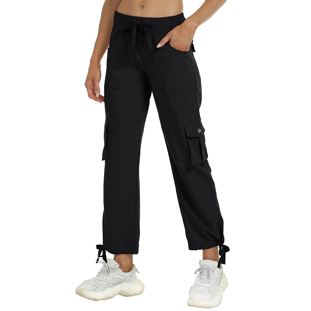 Women cargo pants features an adjustable rope lock around the cuff to keep out bugs during outdoor hiking.Design: