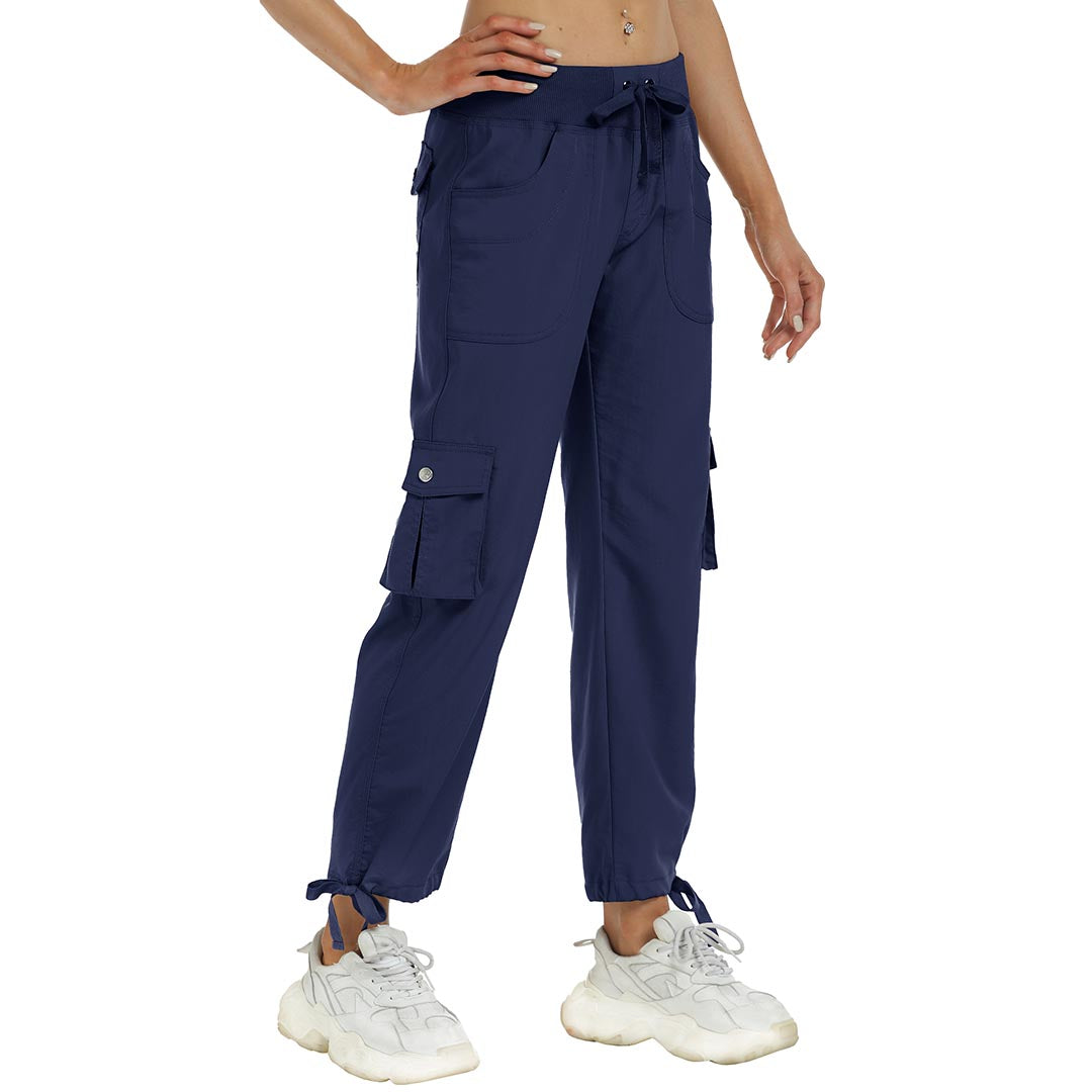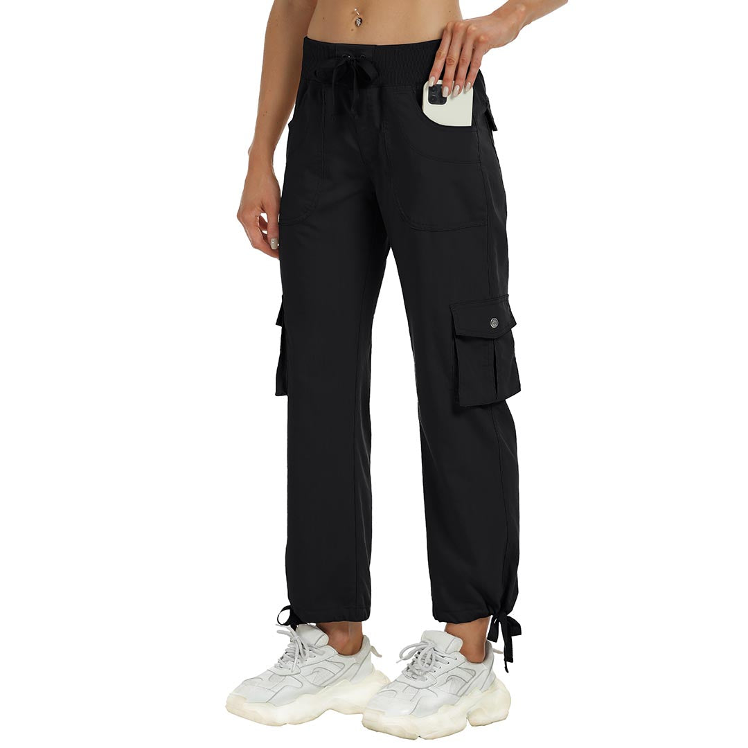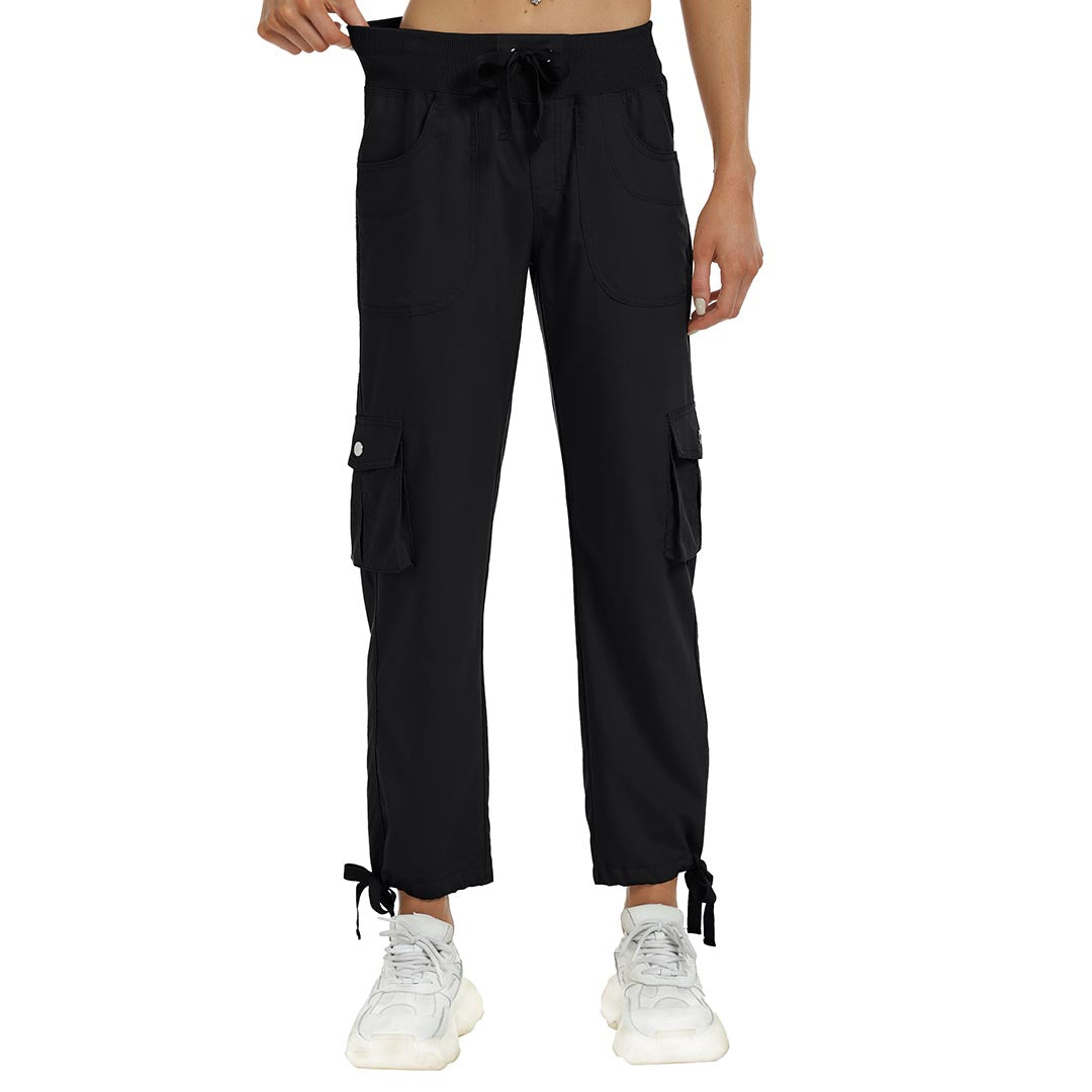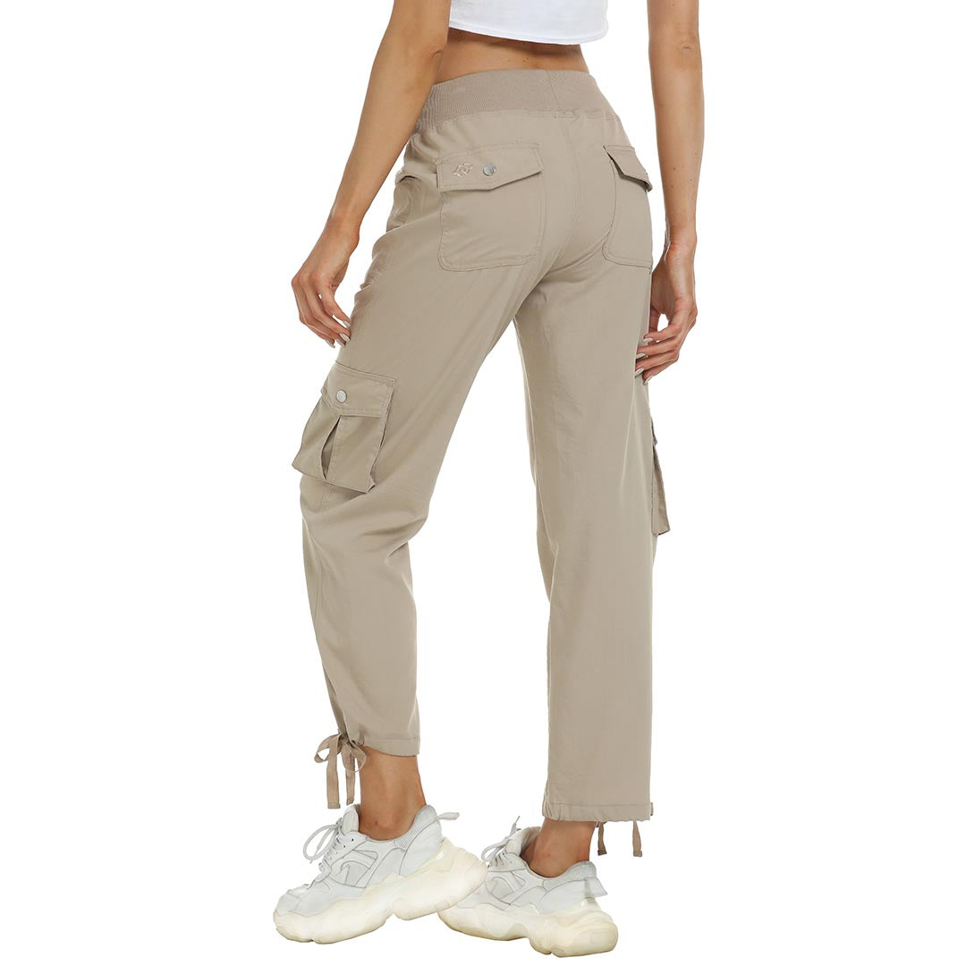 Women cargo pants features an adjustable rope lock around the cuff to keep out bugs during outdoor hiking.Design: