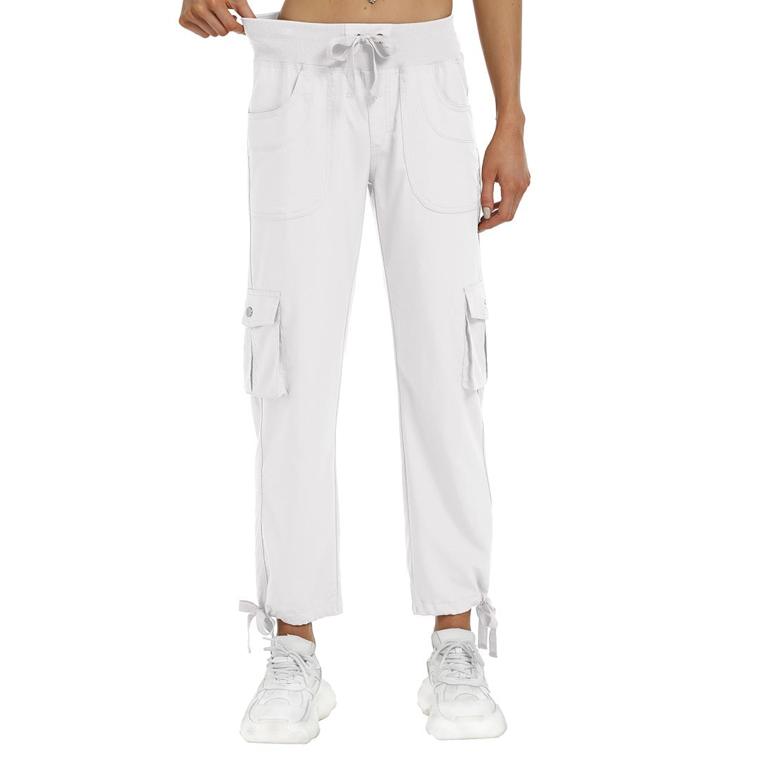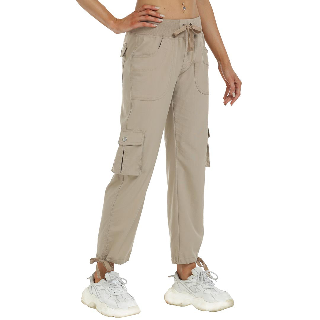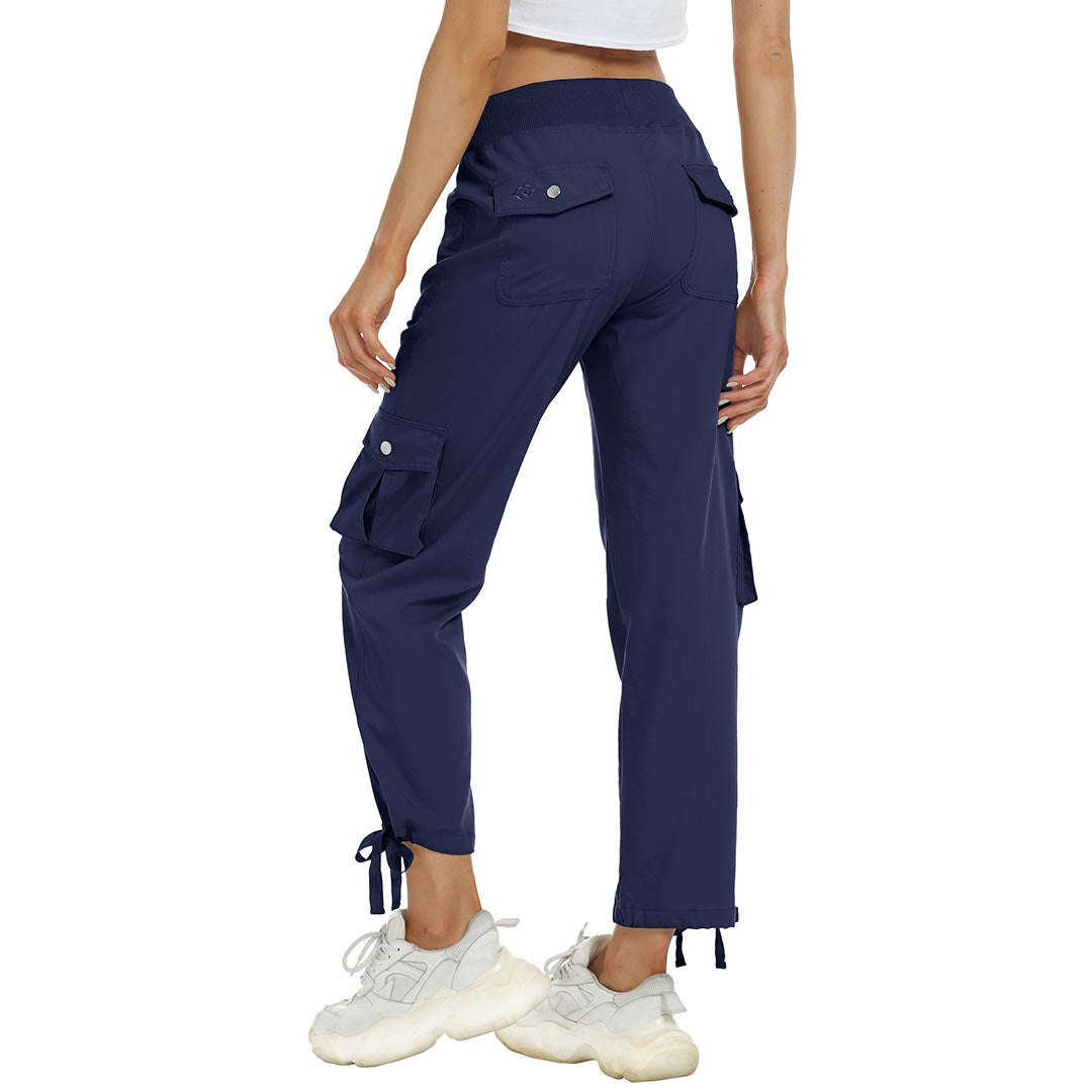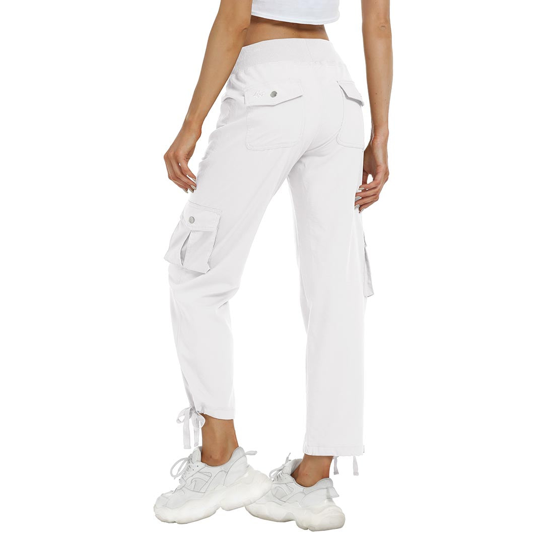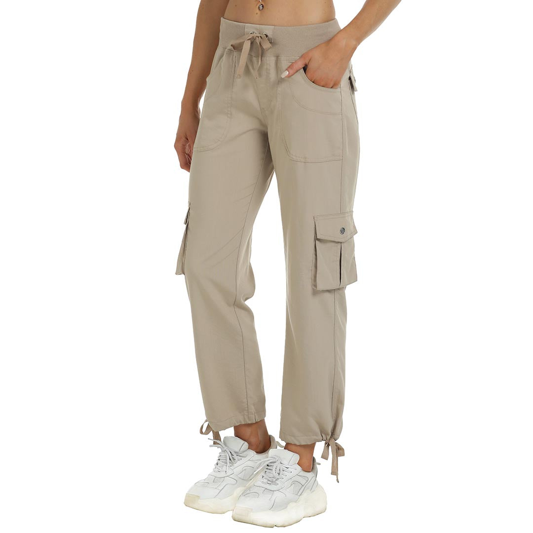 Women cargo pants features an adjustable rope lock around the cuff to keep out bugs during outdoor hiking.Design: