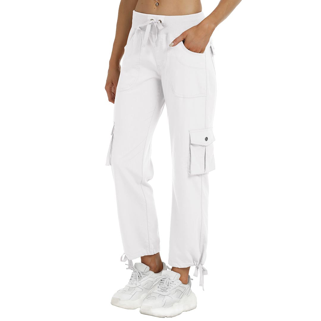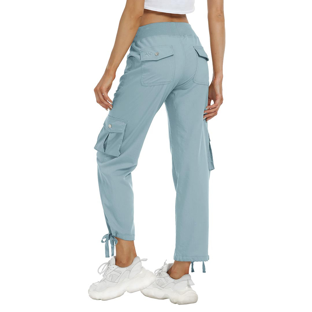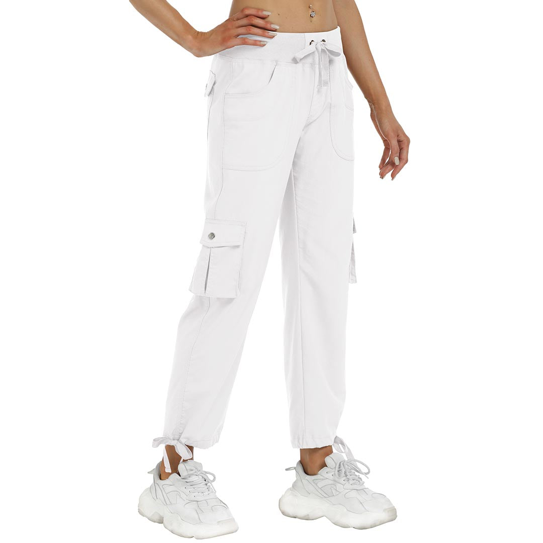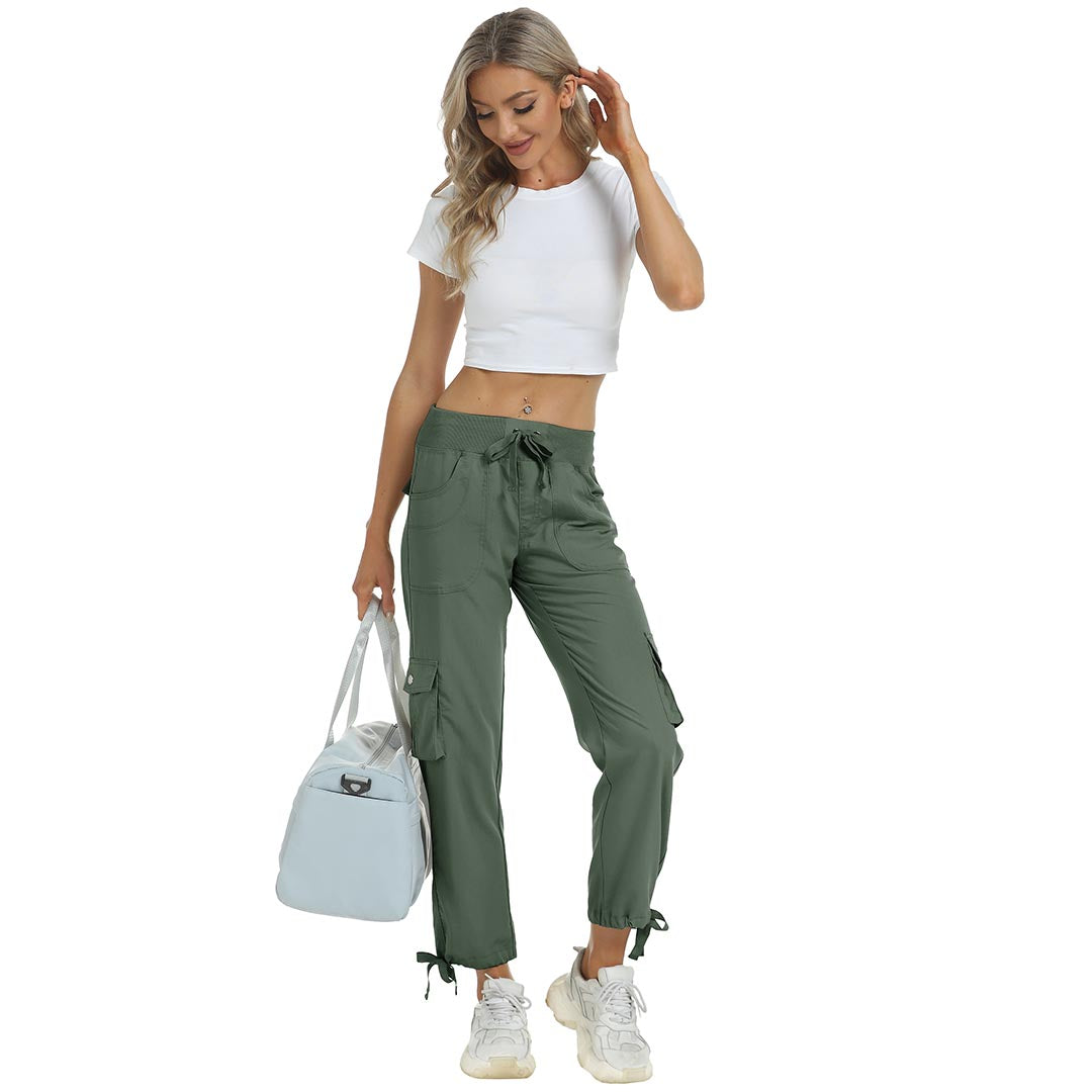 Women cargo pants features an adjustable rope lock around the cuff to keep out bugs during outdoor hiking.Design: