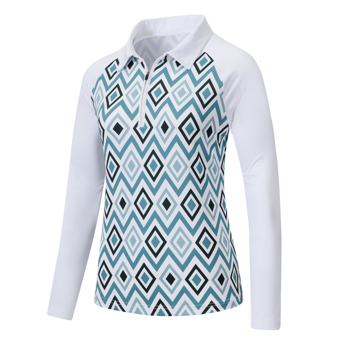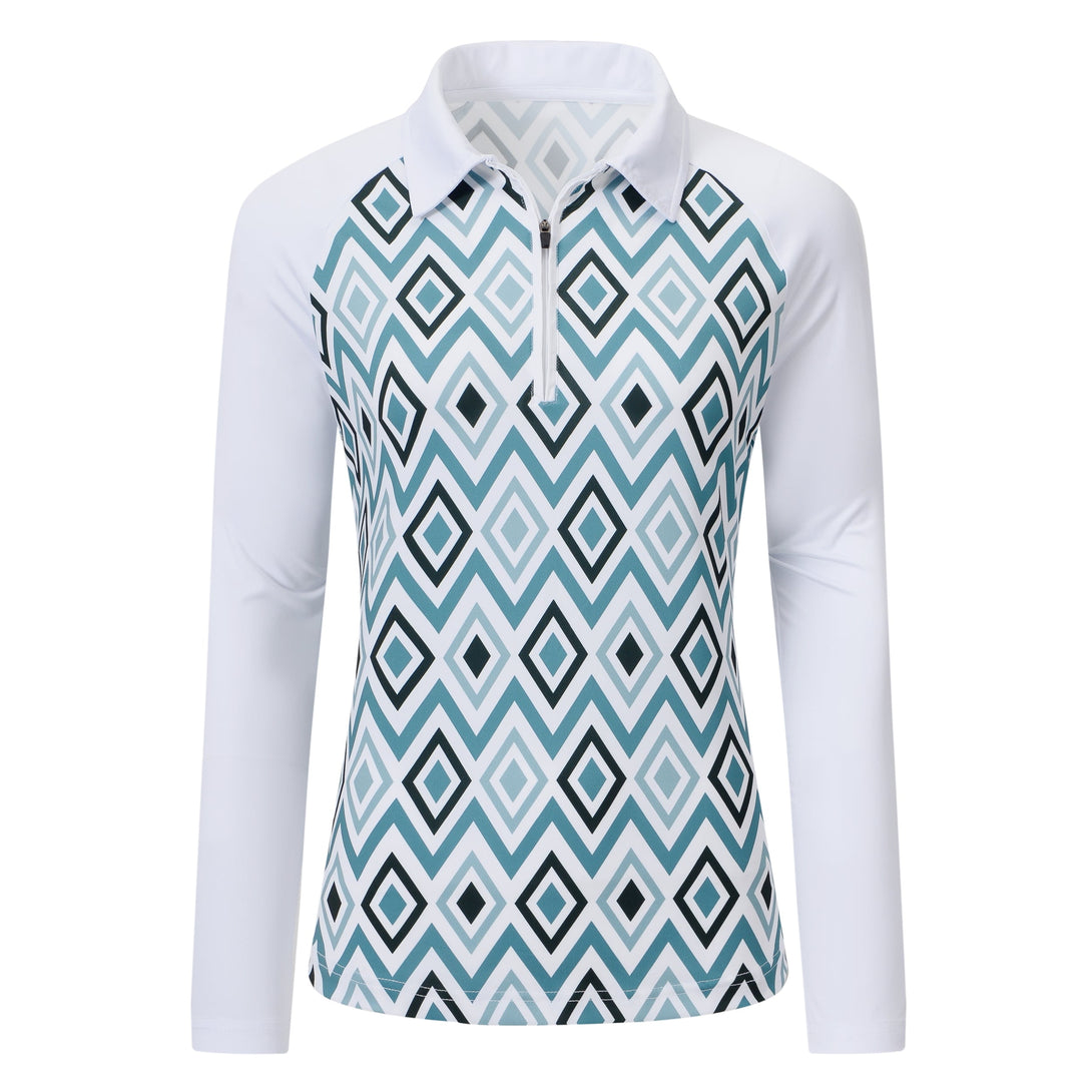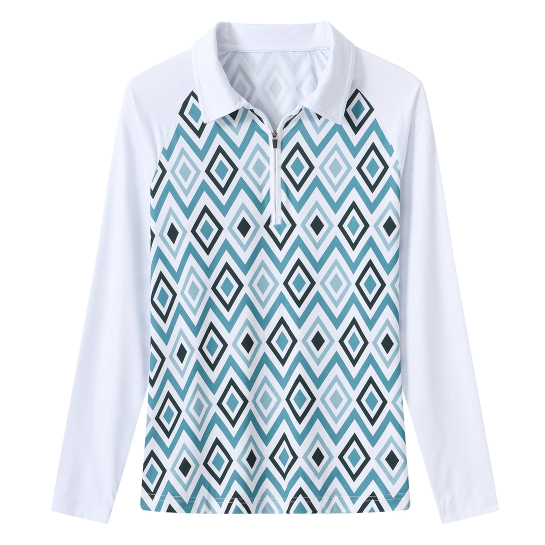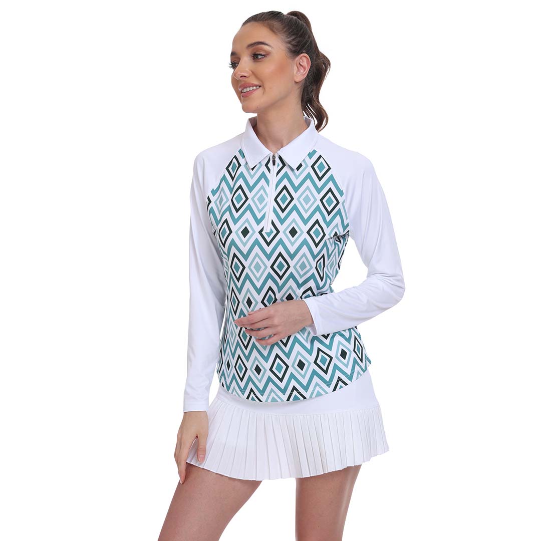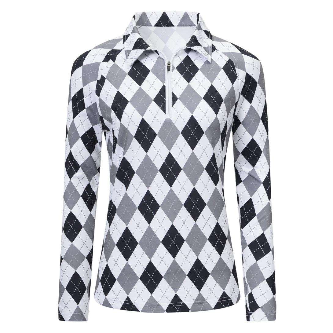 Polo shirt for women - polo T-shirt with polo collar, long sleeve T-shirt, 1/4 zip, polo collar without tag, colour block, slim fit.