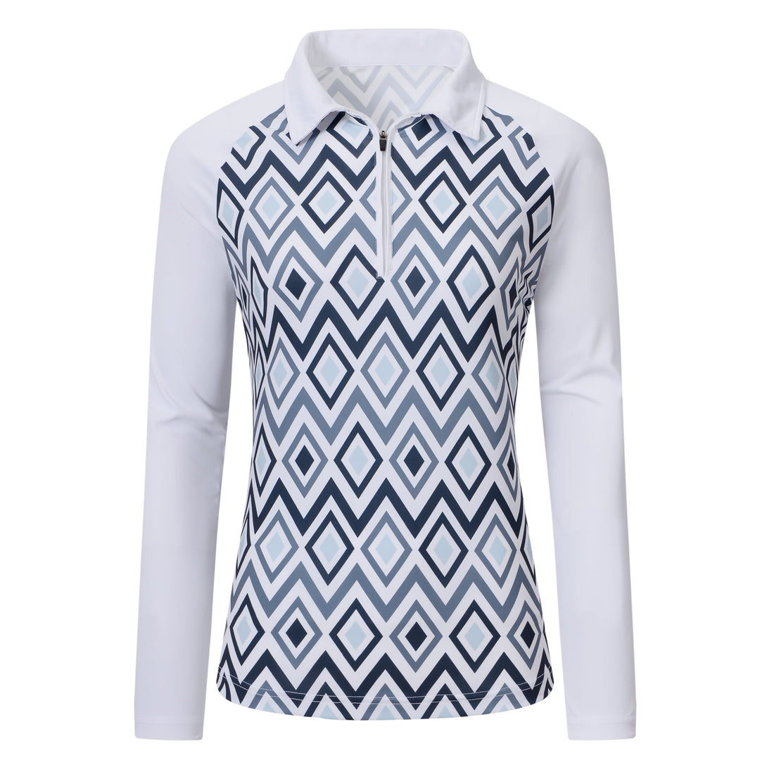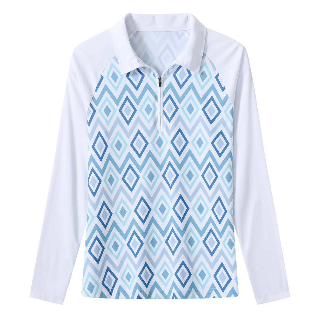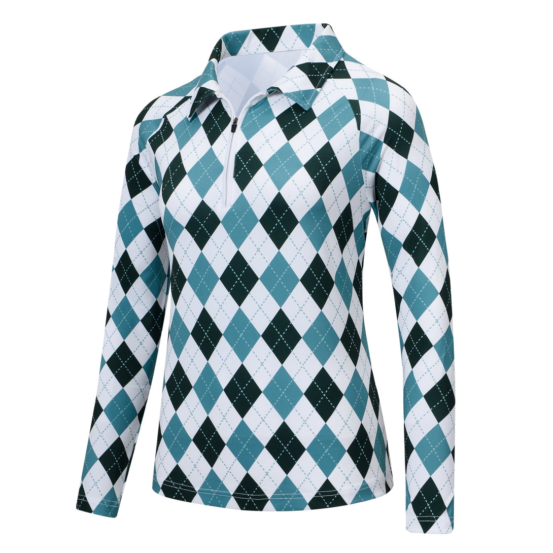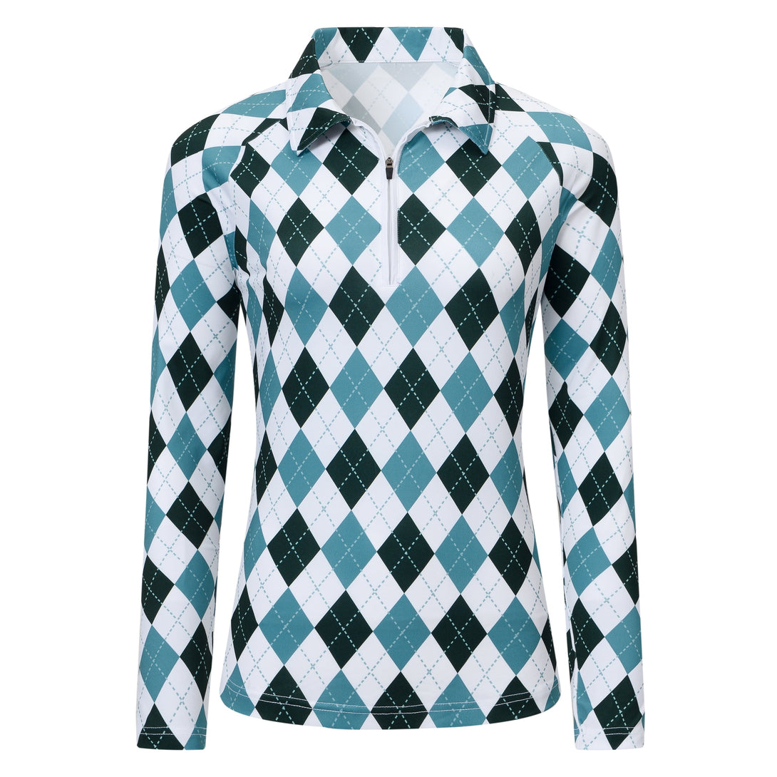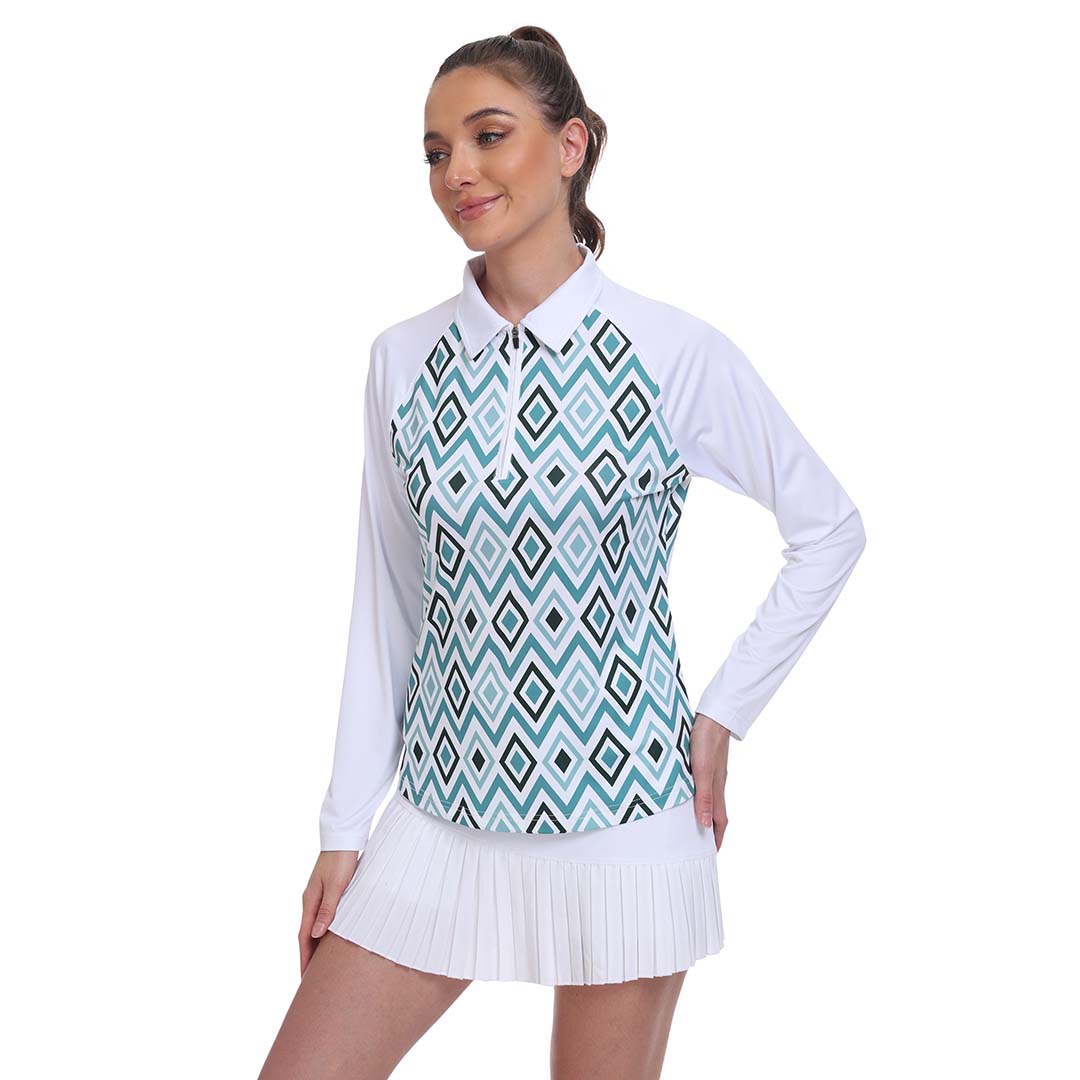 Polo shirt for women - polo T-shirt with polo collar, long sleeve T-shirt, 1/4 zip, polo collar without tag, colour block, slim fit.