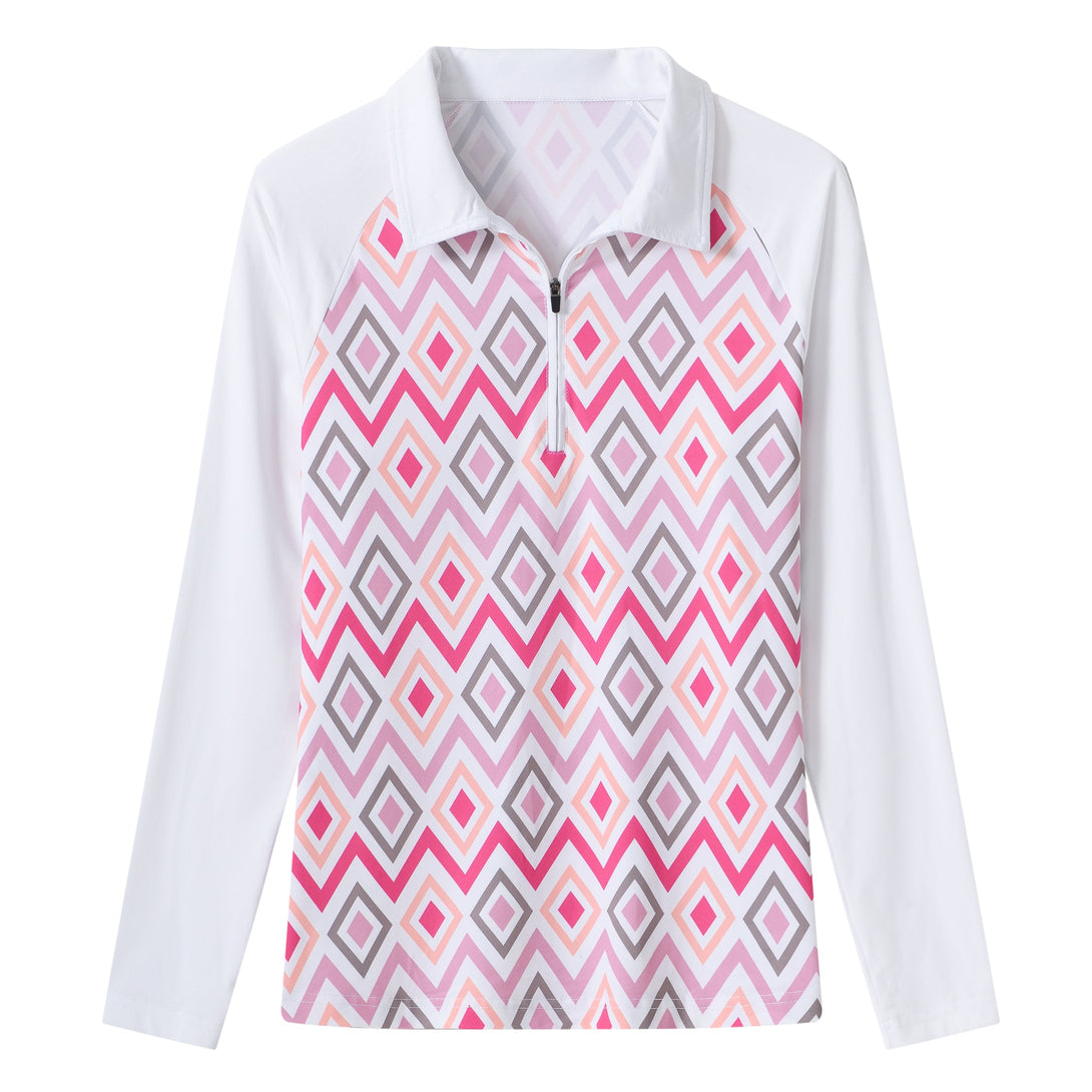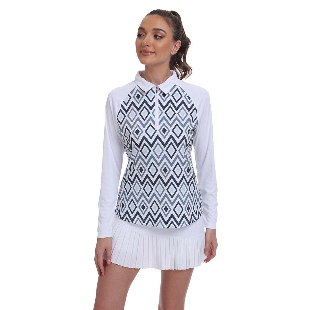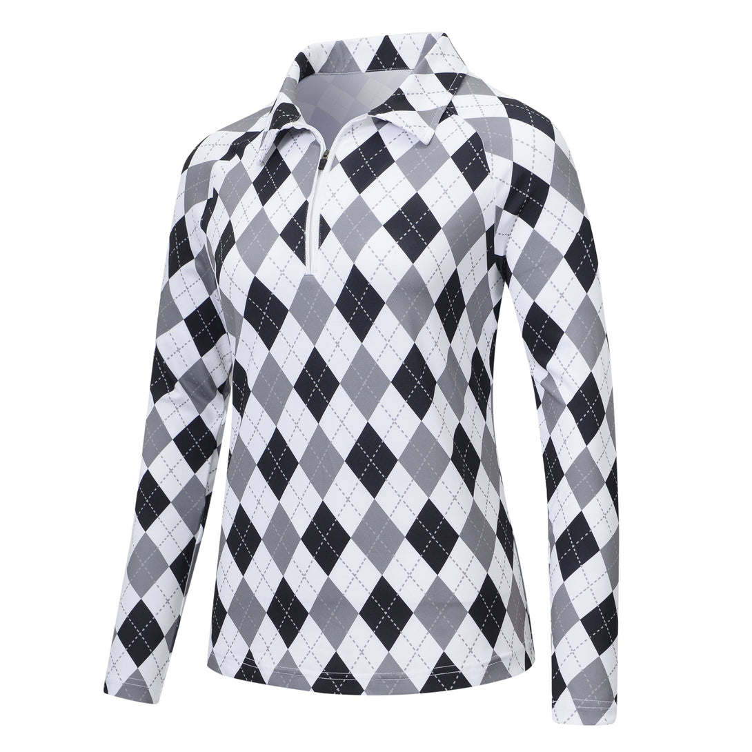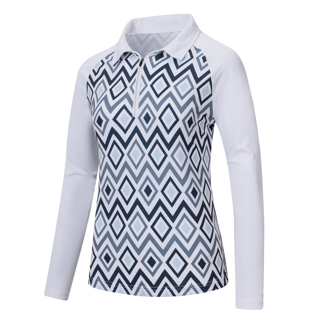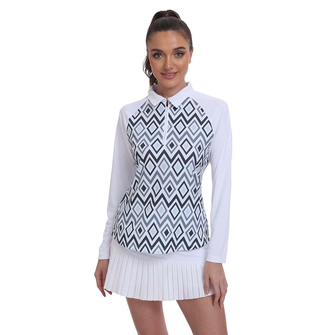 Polo shirt for women - polo T-shirt with polo collar, long sleeve T-shirt, 1/4 zip, polo collar without tag, colour block, slim fit.