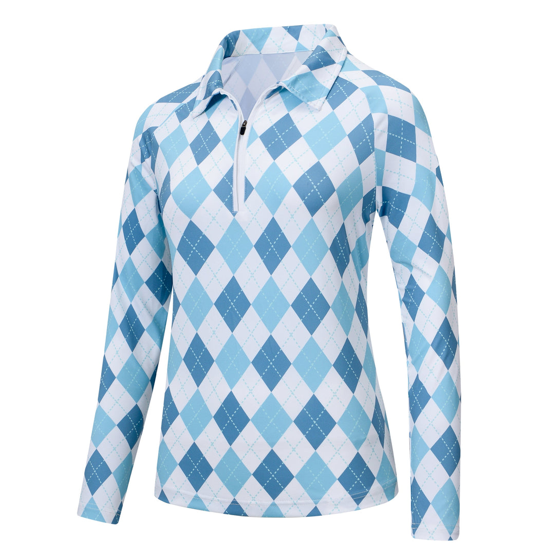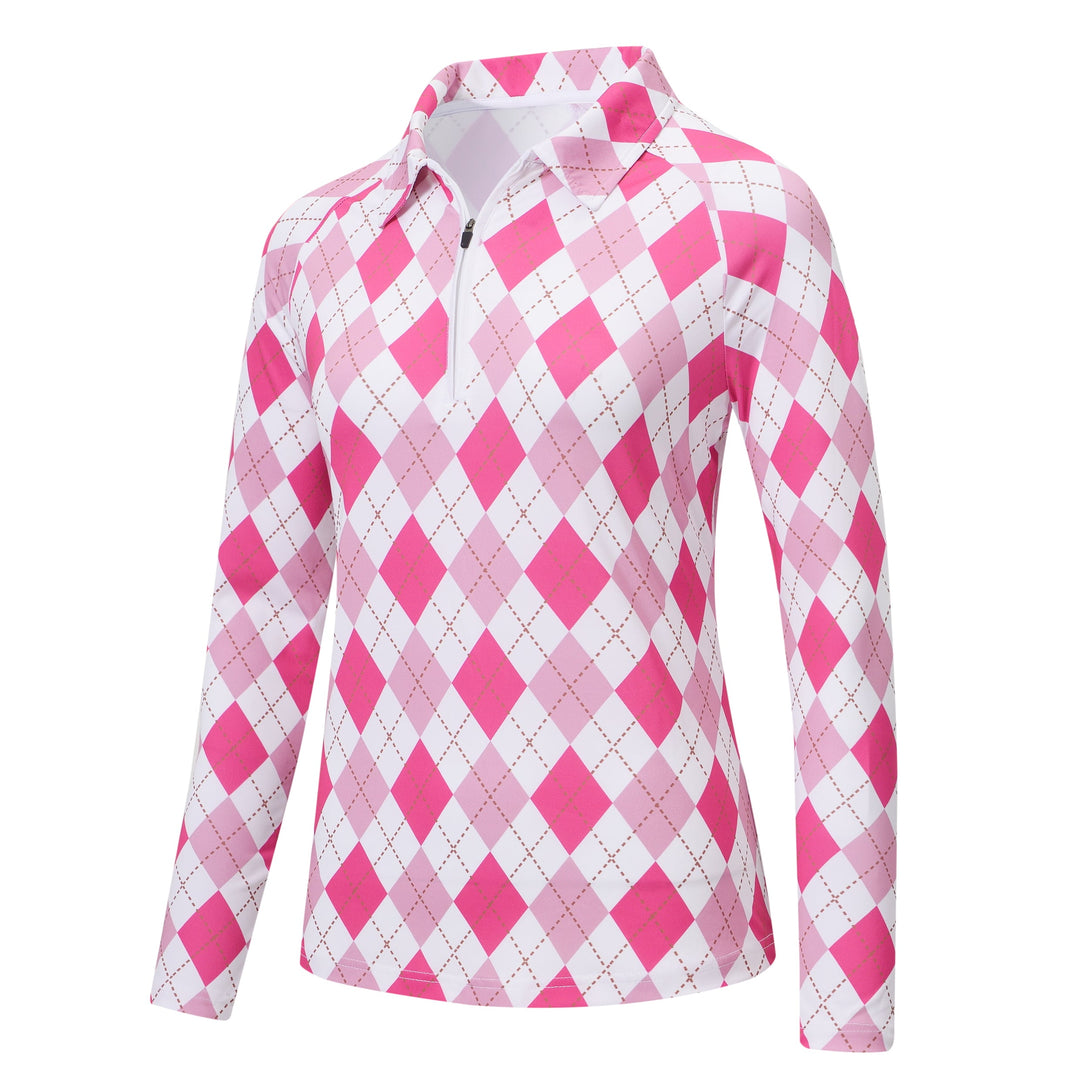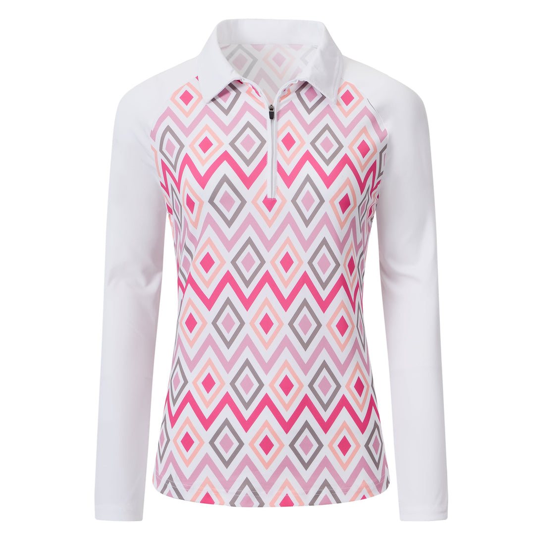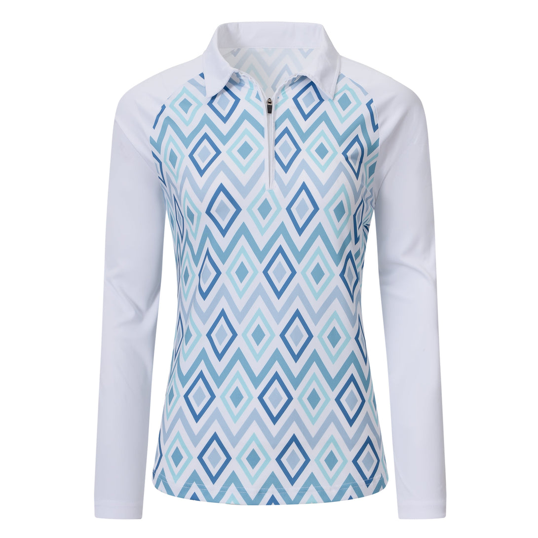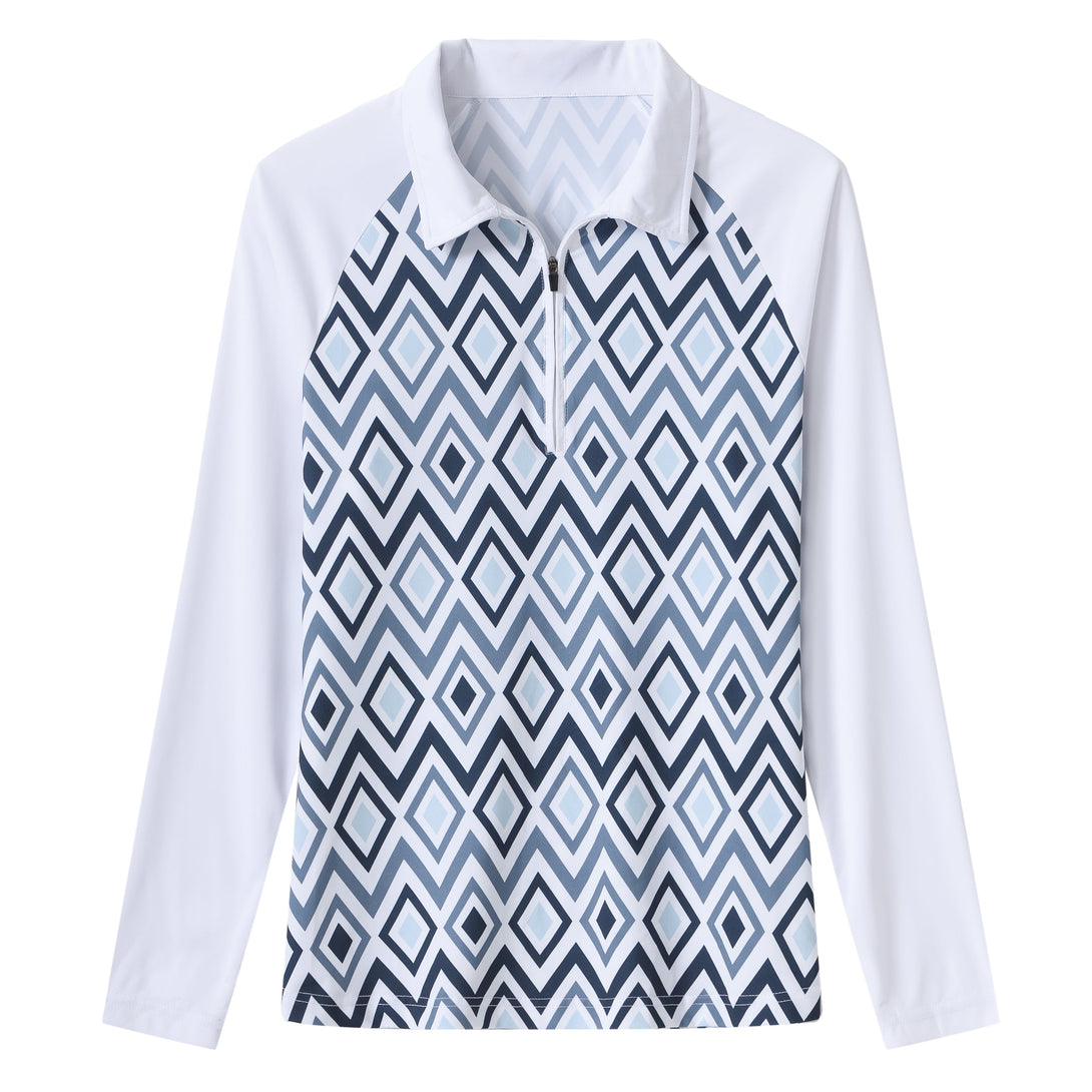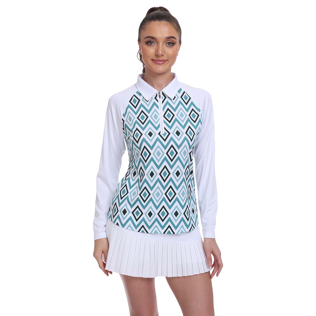 Polo shirt for women - polo T-shirt with polo collar, long sleeve T-shirt, 1/4 zip, polo collar without tag, colour block, slim fit.