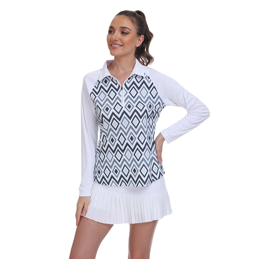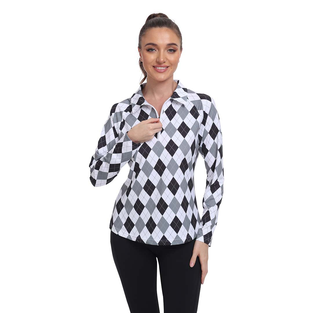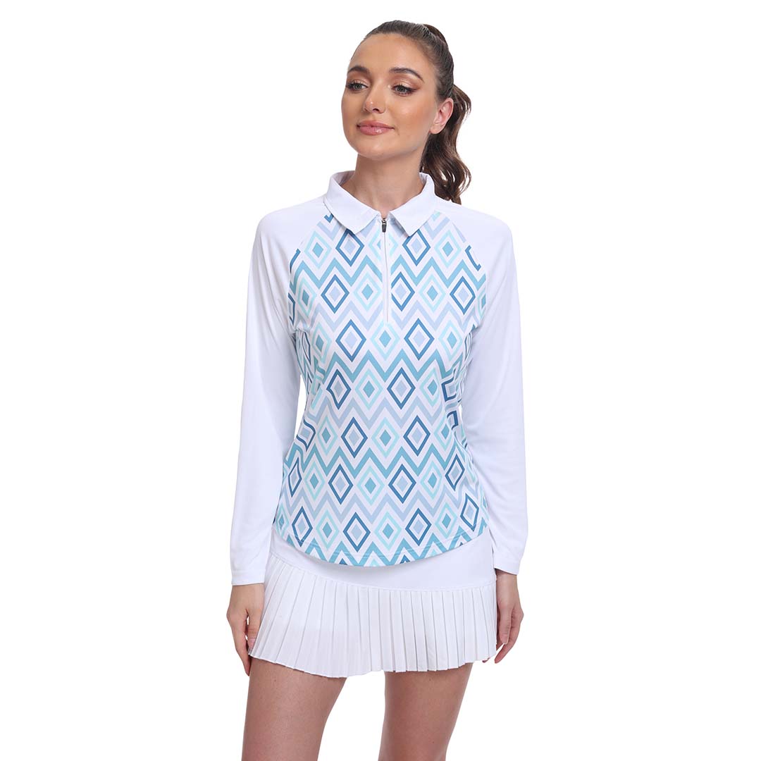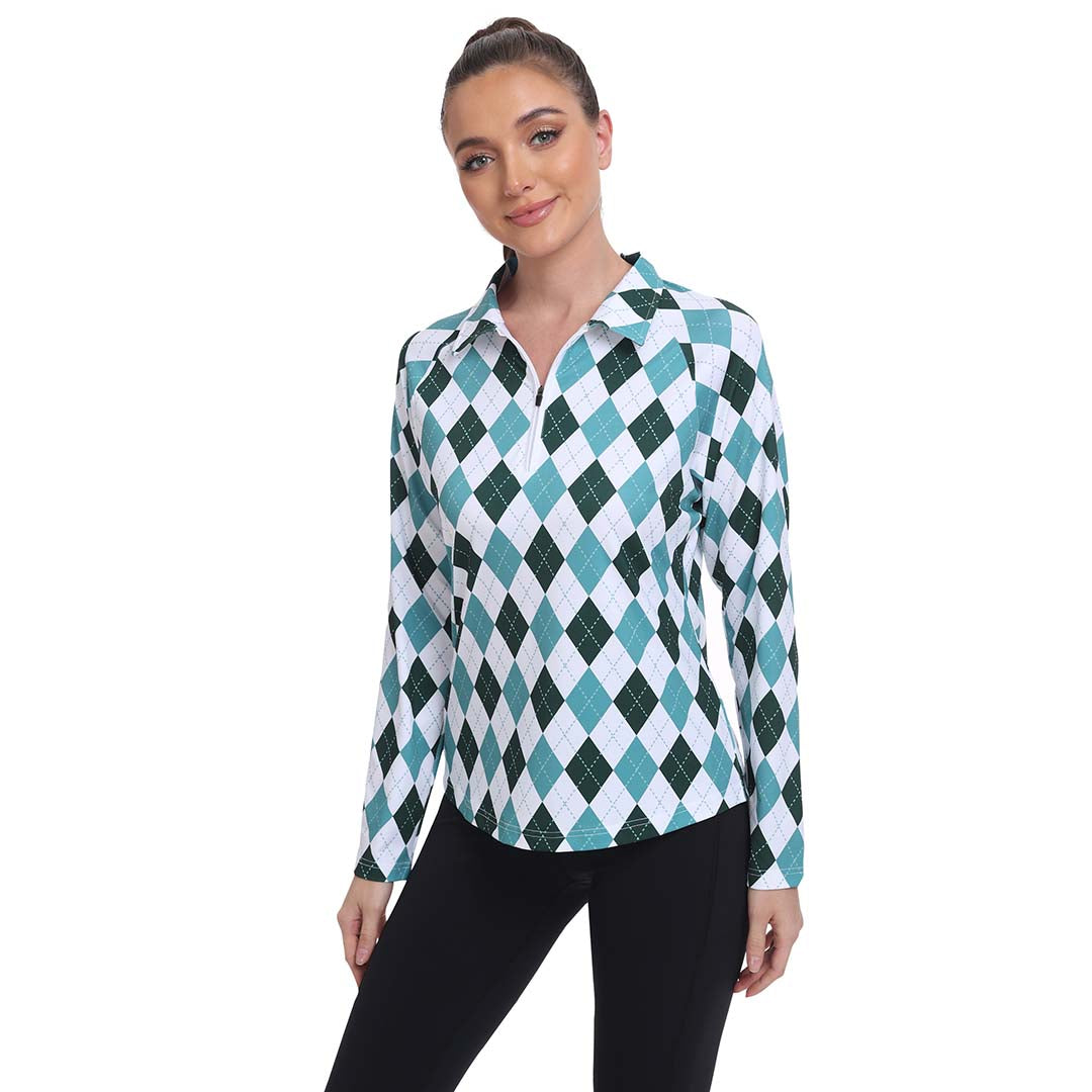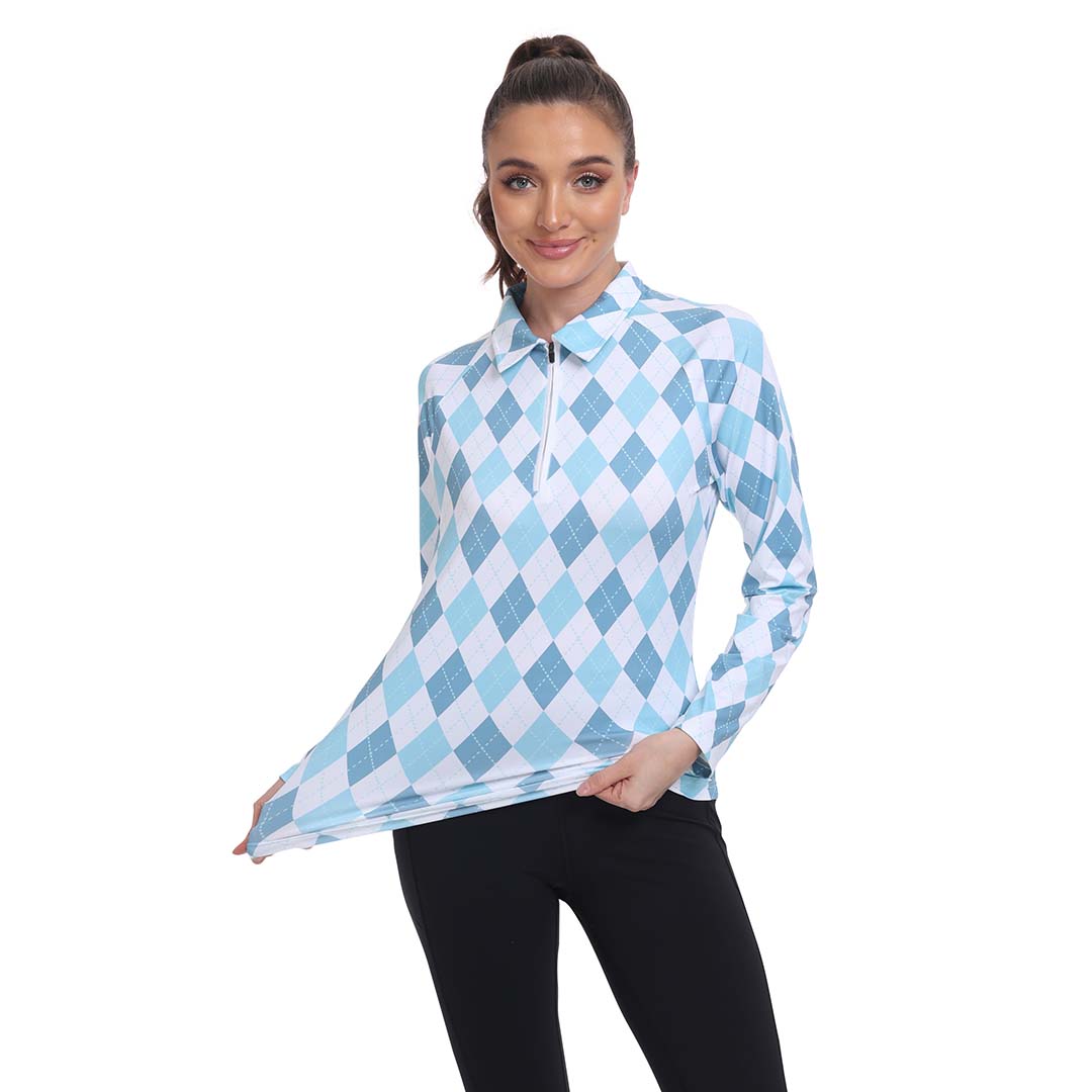 Polo shirt for women - polo T-shirt with polo collar, long sleeve T-shirt, 1/4 zip, polo collar without tag, colour block, slim fit.