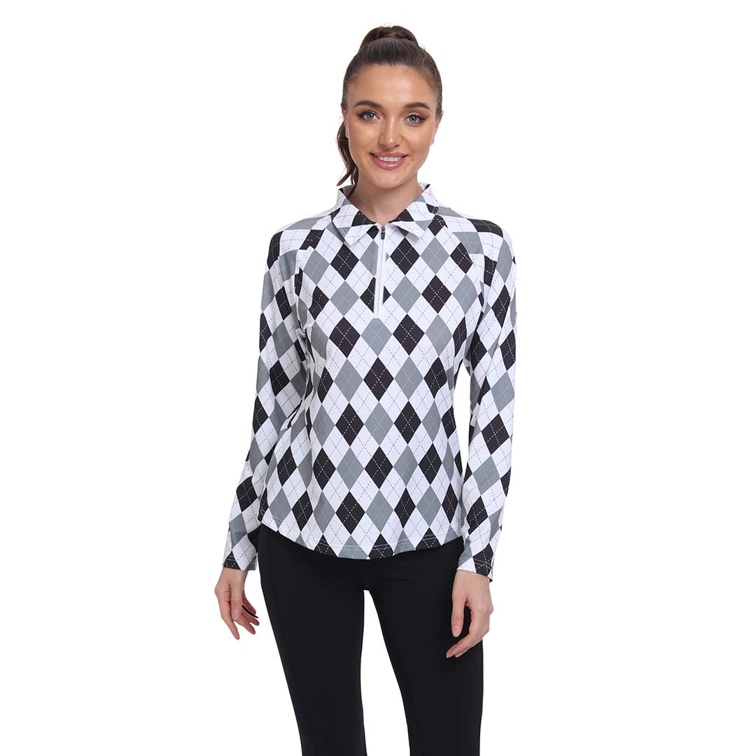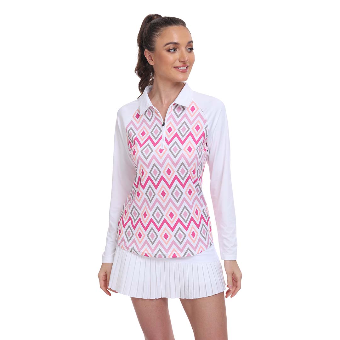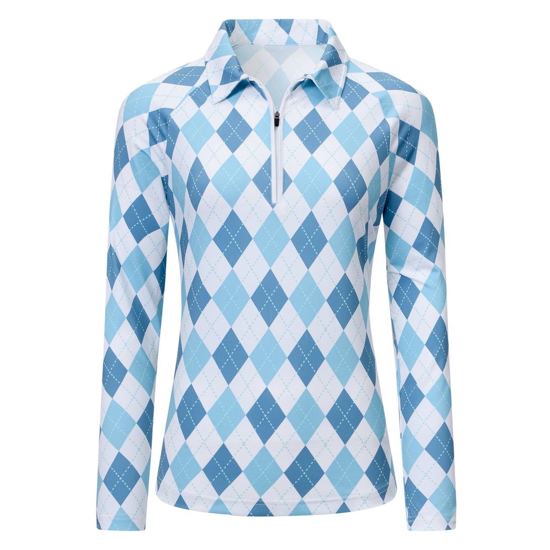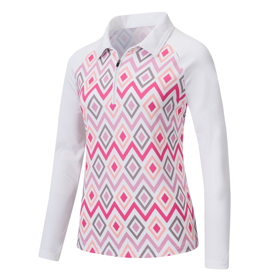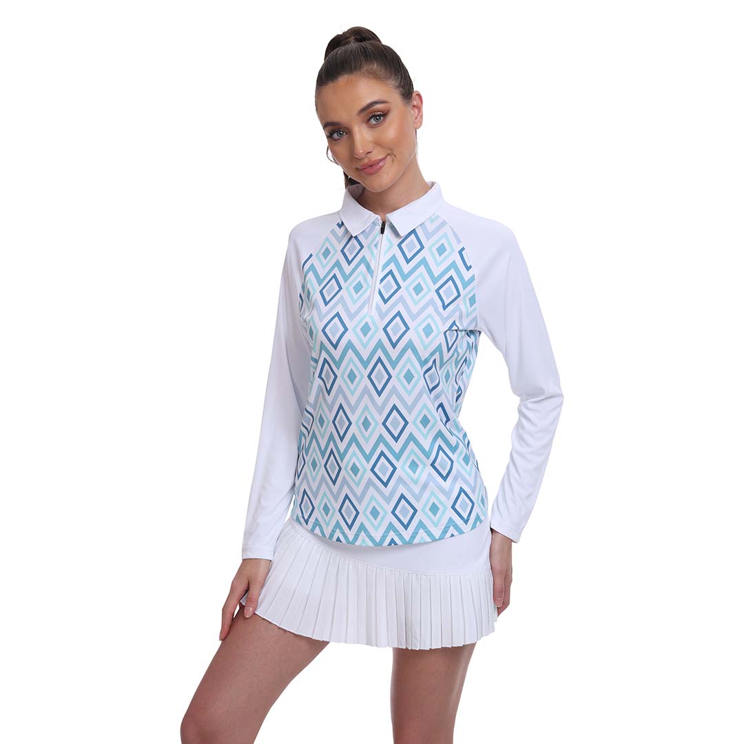Polo shirt for women - polo T-shirt with polo collar, long sleeve T-shirt, 1/4 zip, polo collar without tag, colour block, slim fit.