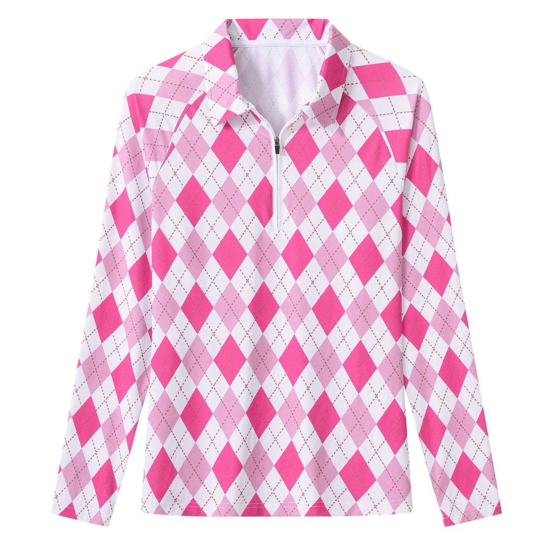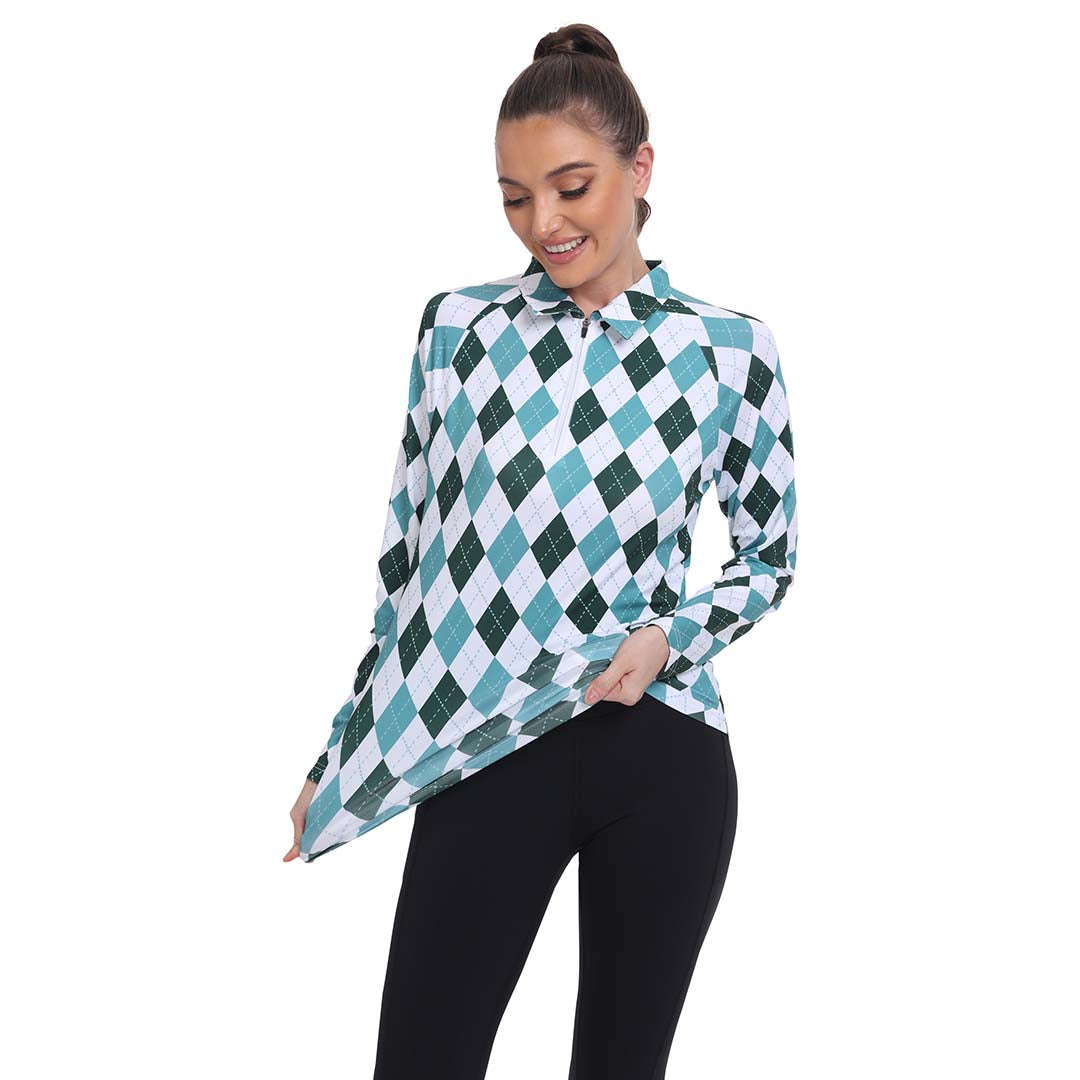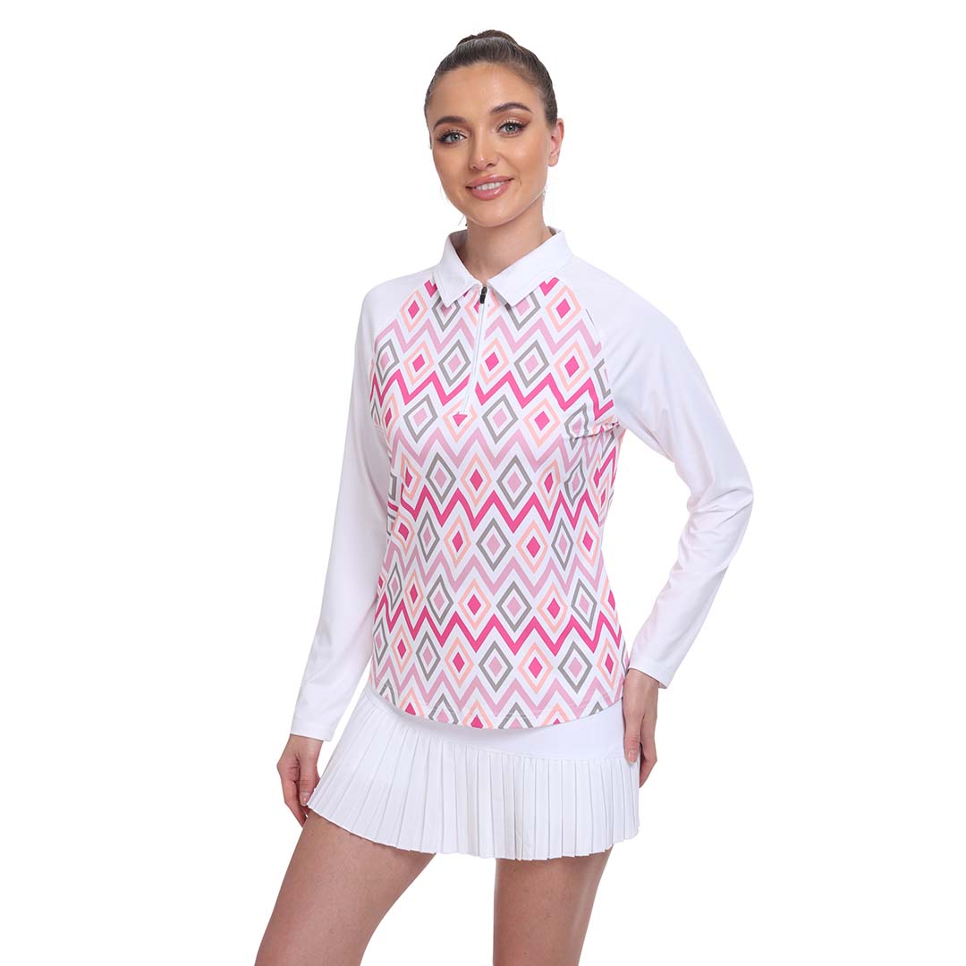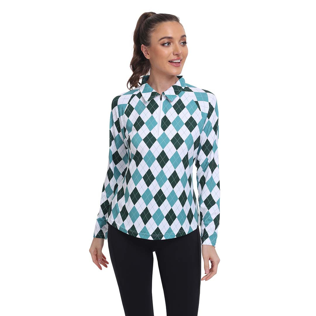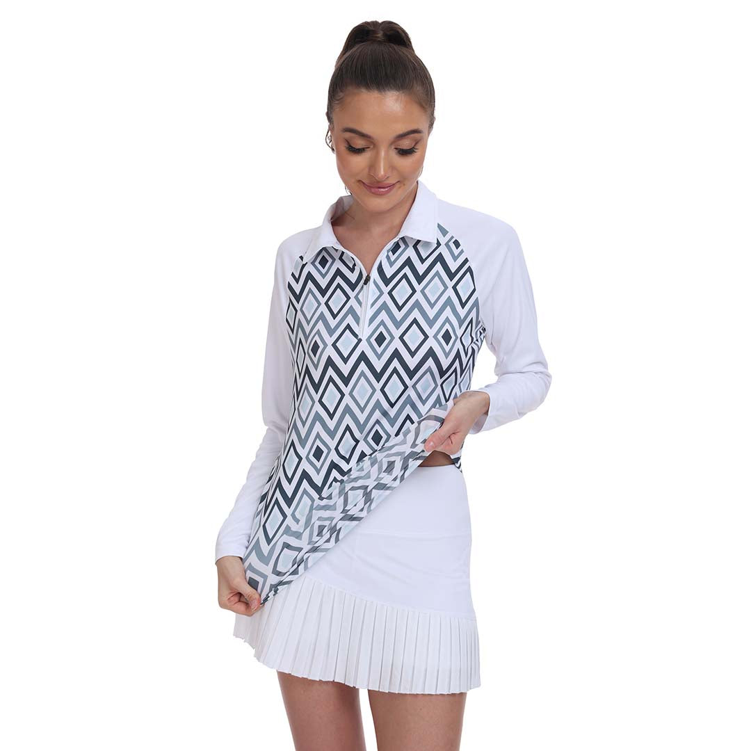 Polo shirt for women - polo T-shirt with polo collar, long sleeve T-shirt, 1/4 zip, polo collar without tag, colour block, slim fit.