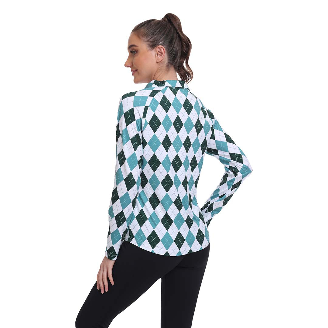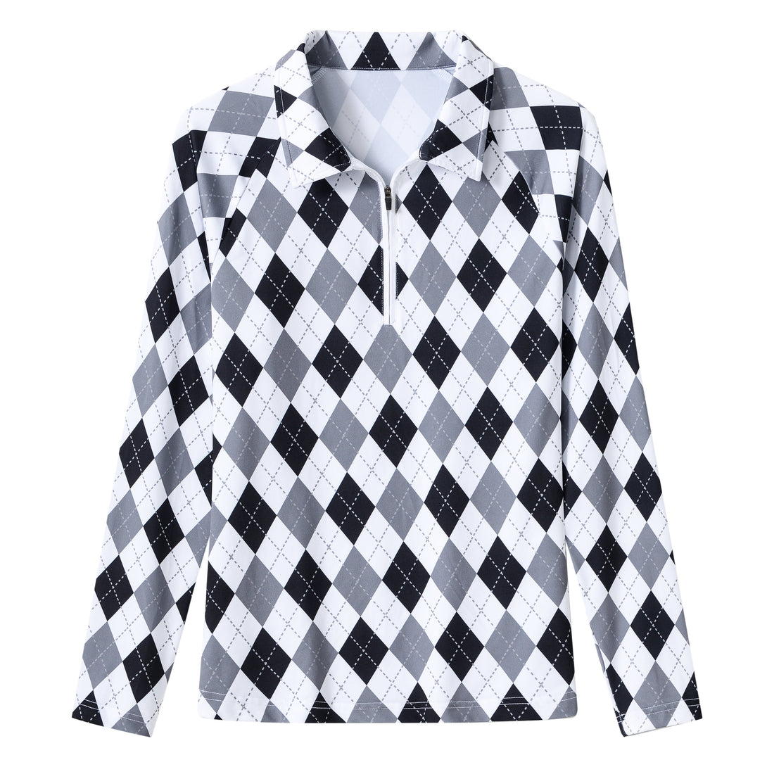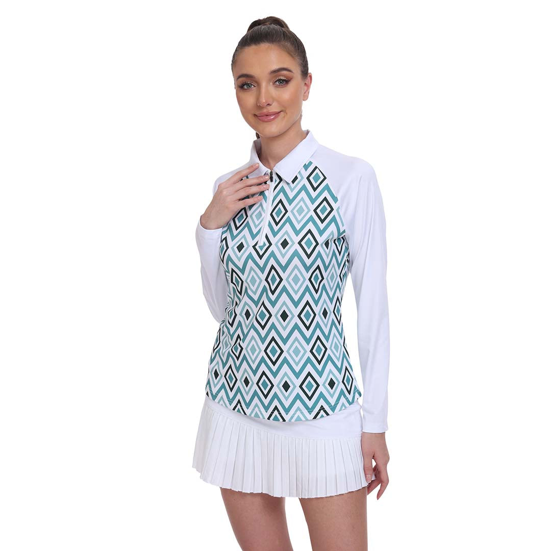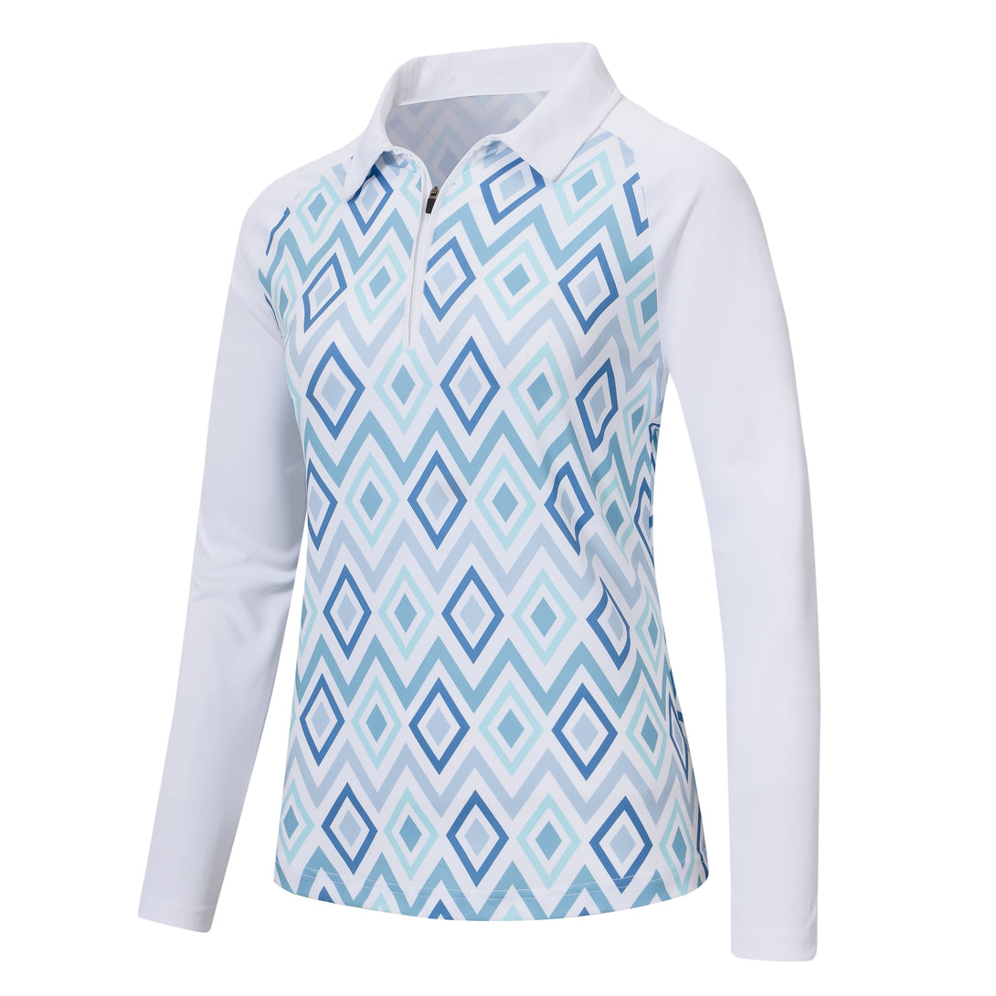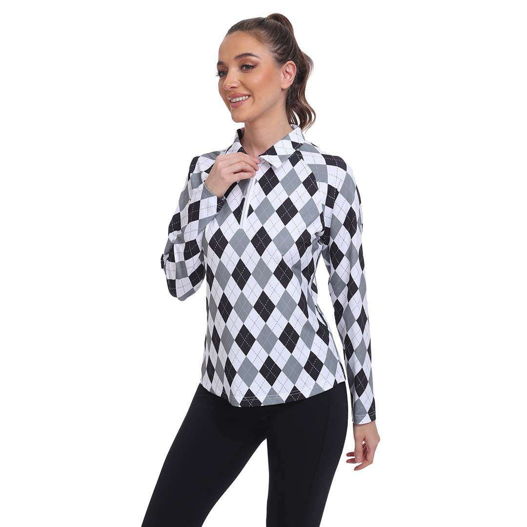 Polo shirt for women - polo T-shirt with polo collar, long sleeve T-shirt, 1/4 zip, polo collar without tag, colour block, slim fit.