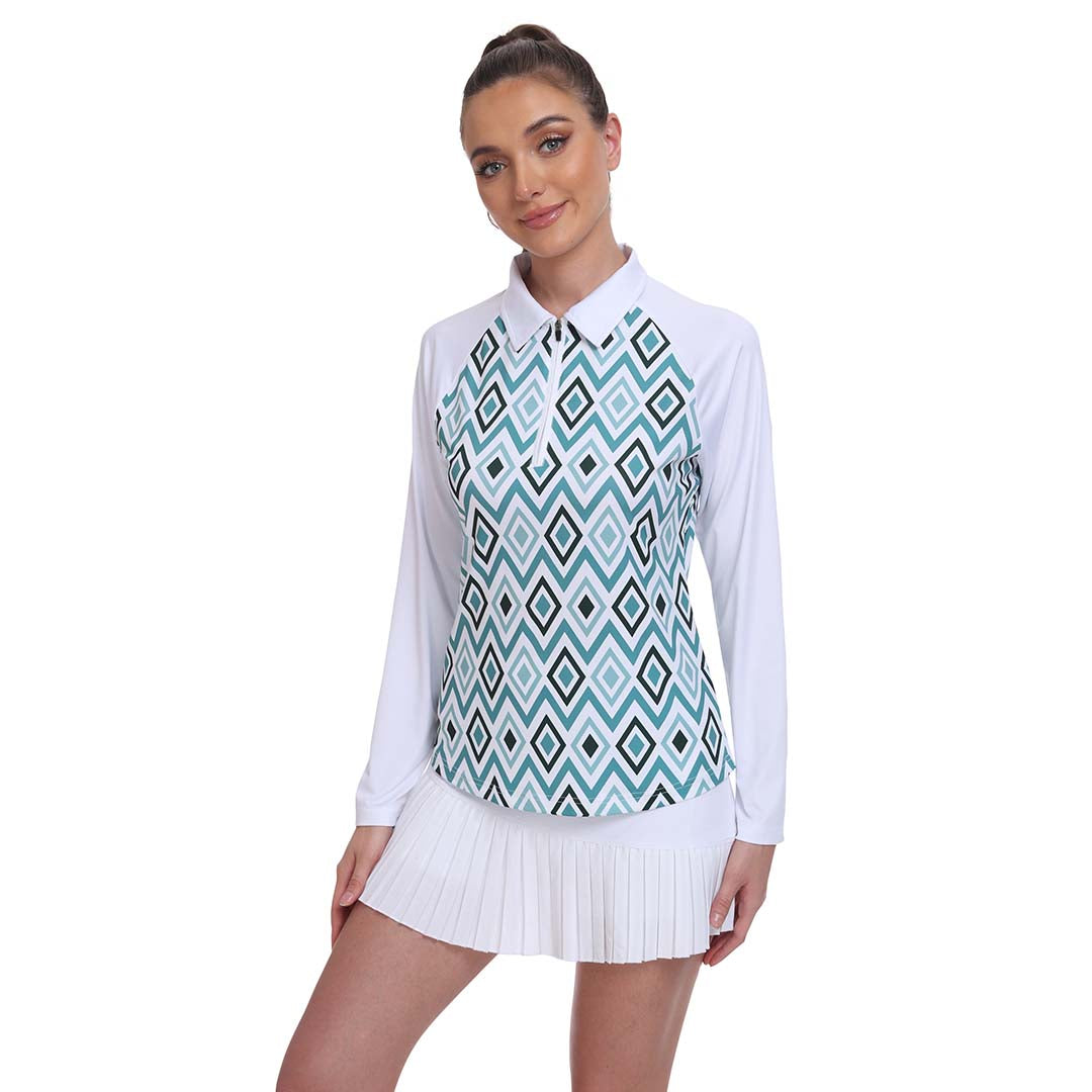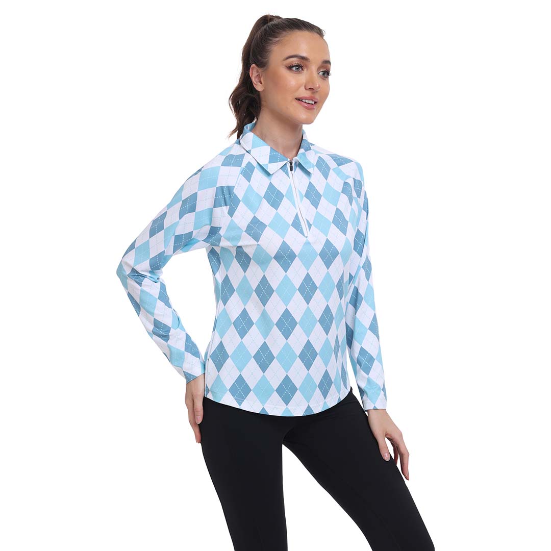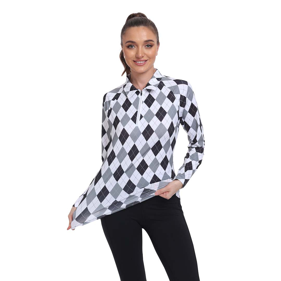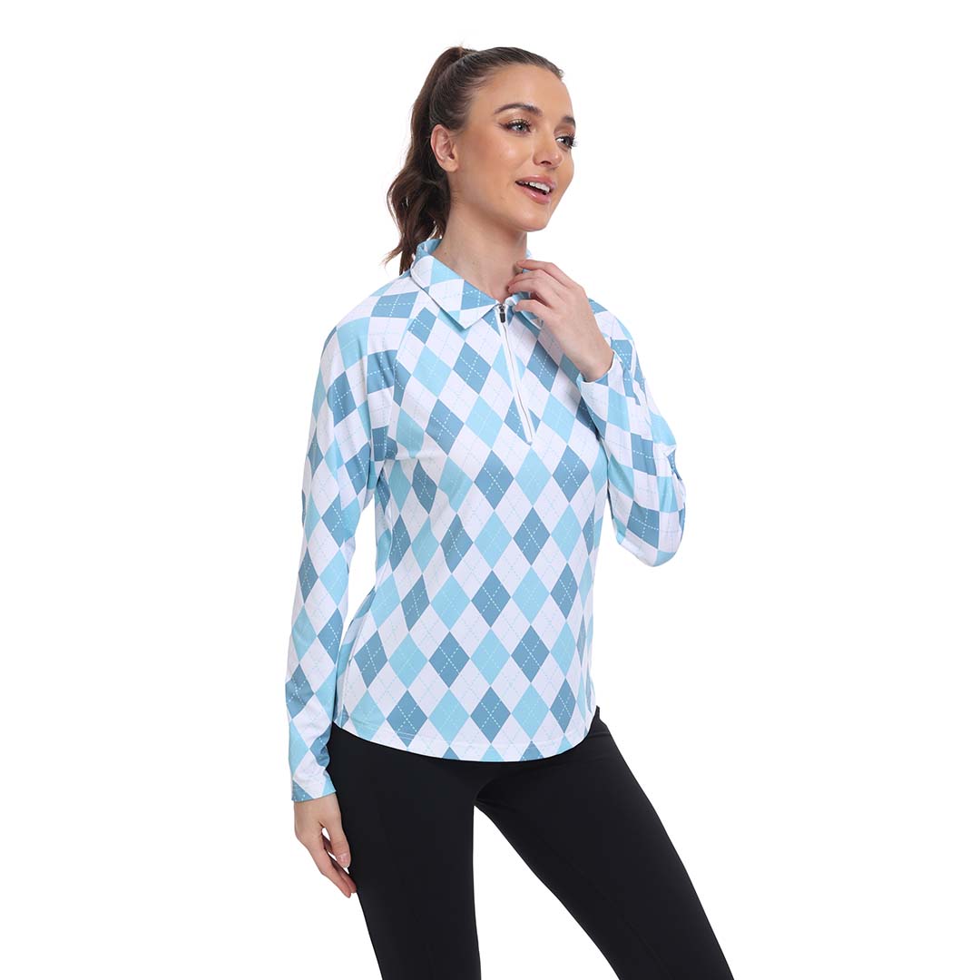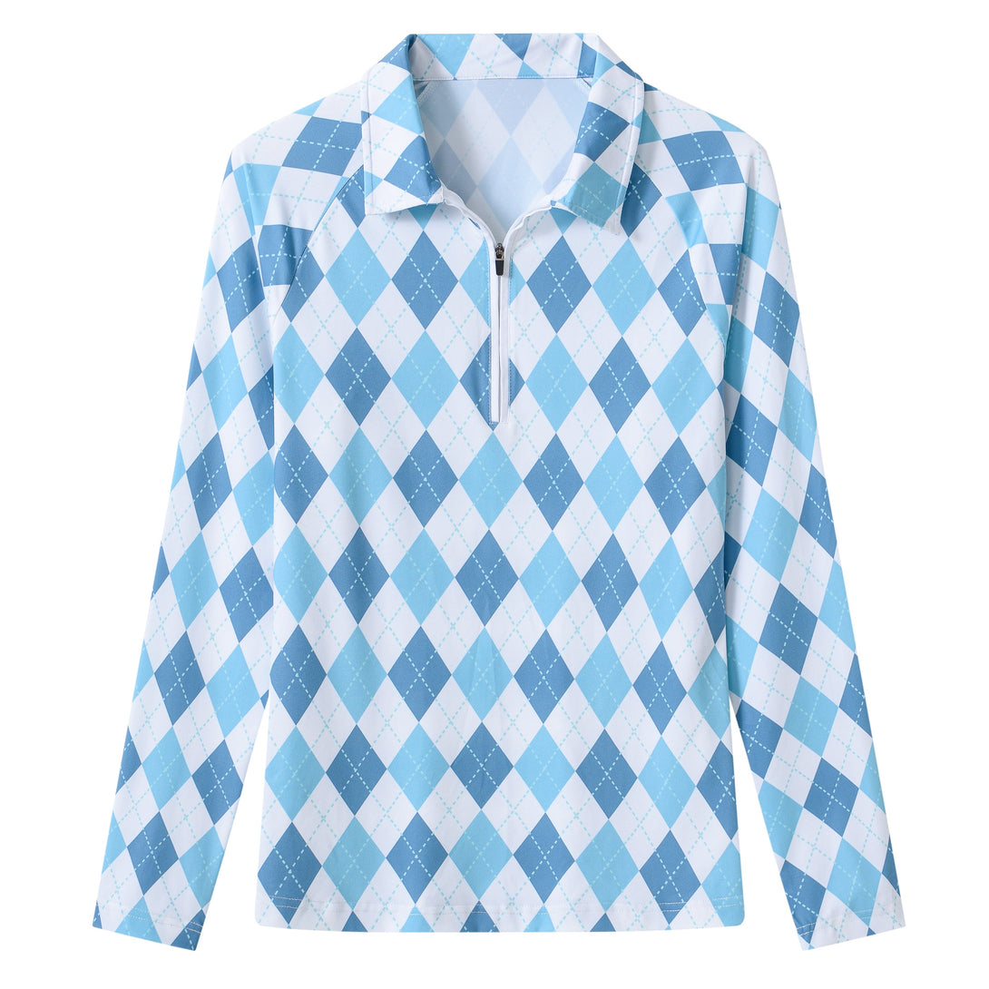 Polo shirt for women - polo T-shirt with polo collar, long sleeve T-shirt, 1/4 zip, polo collar without tag, colour block, slim fit.