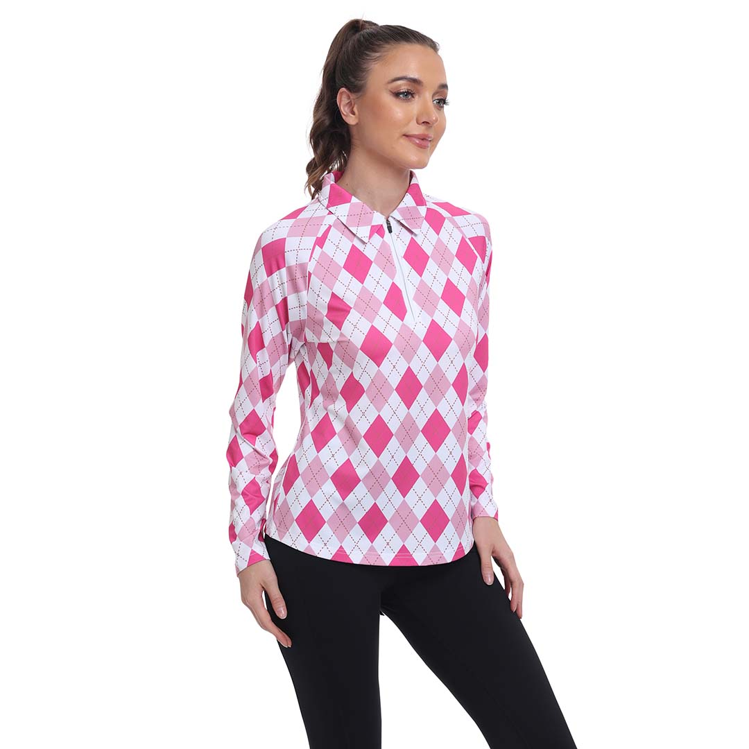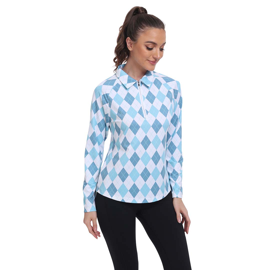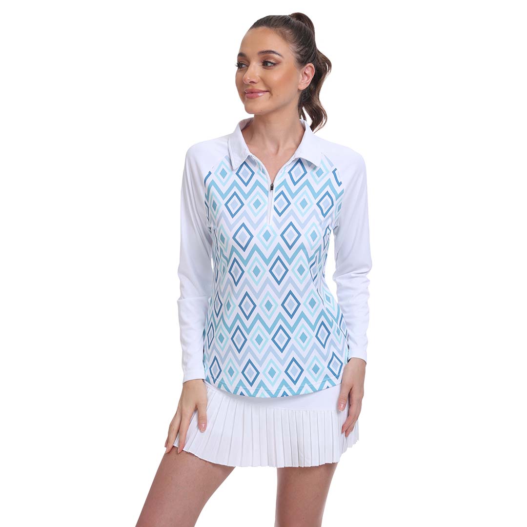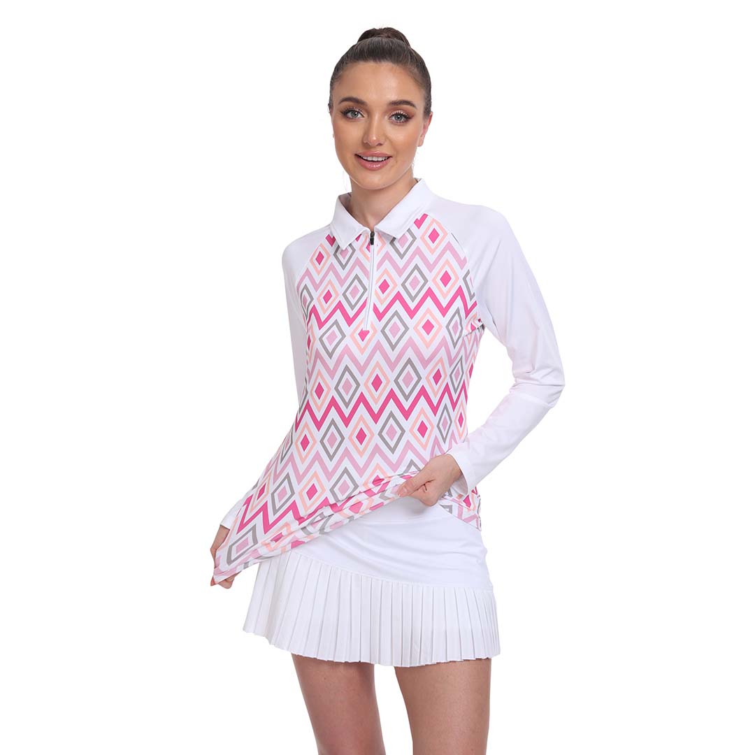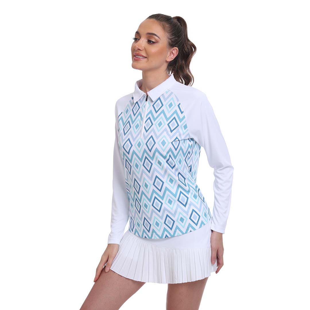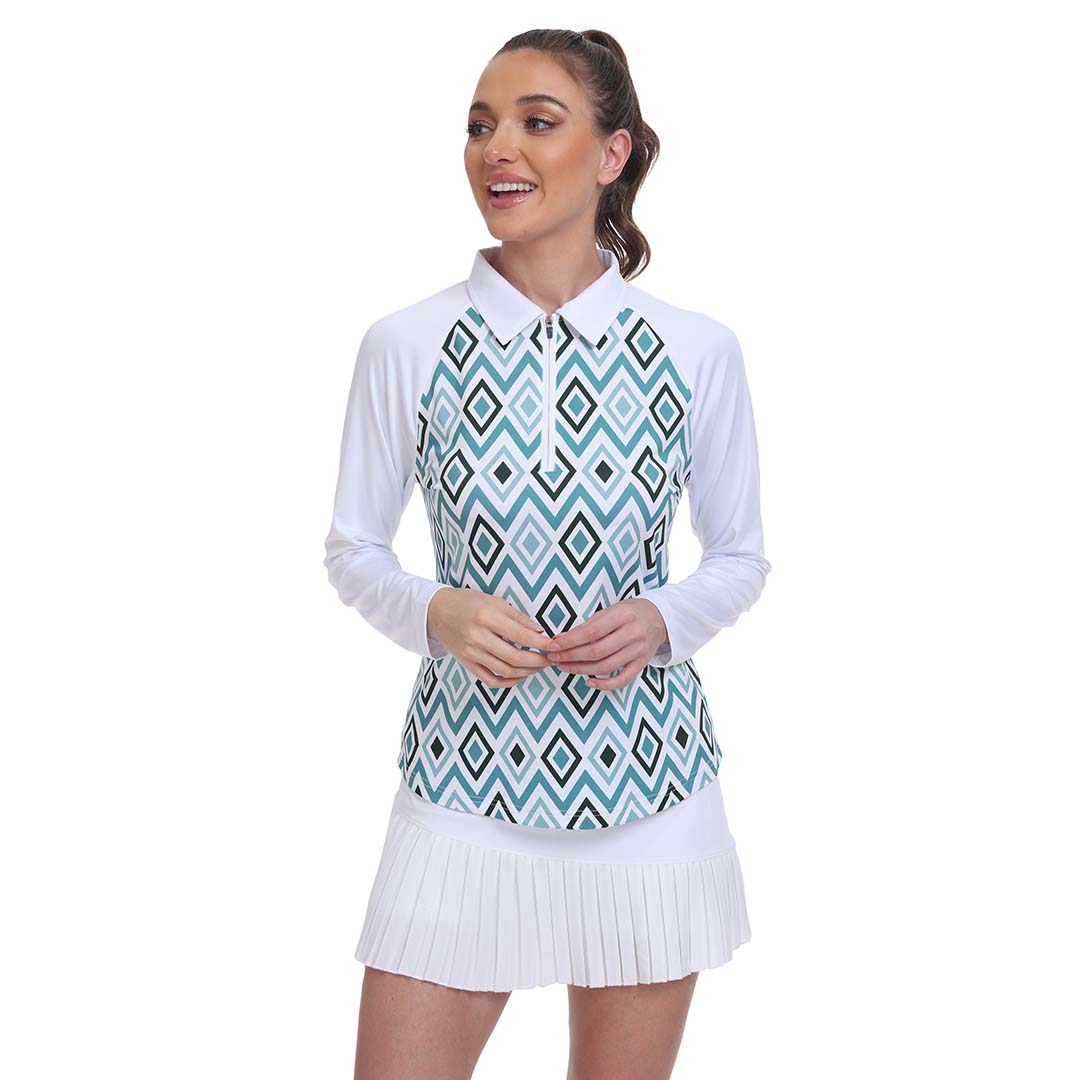 Polo shirt for women - polo T-shirt with polo collar, long sleeve T-shirt, 1/4 zip, polo collar without tag, colour block, slim fit.