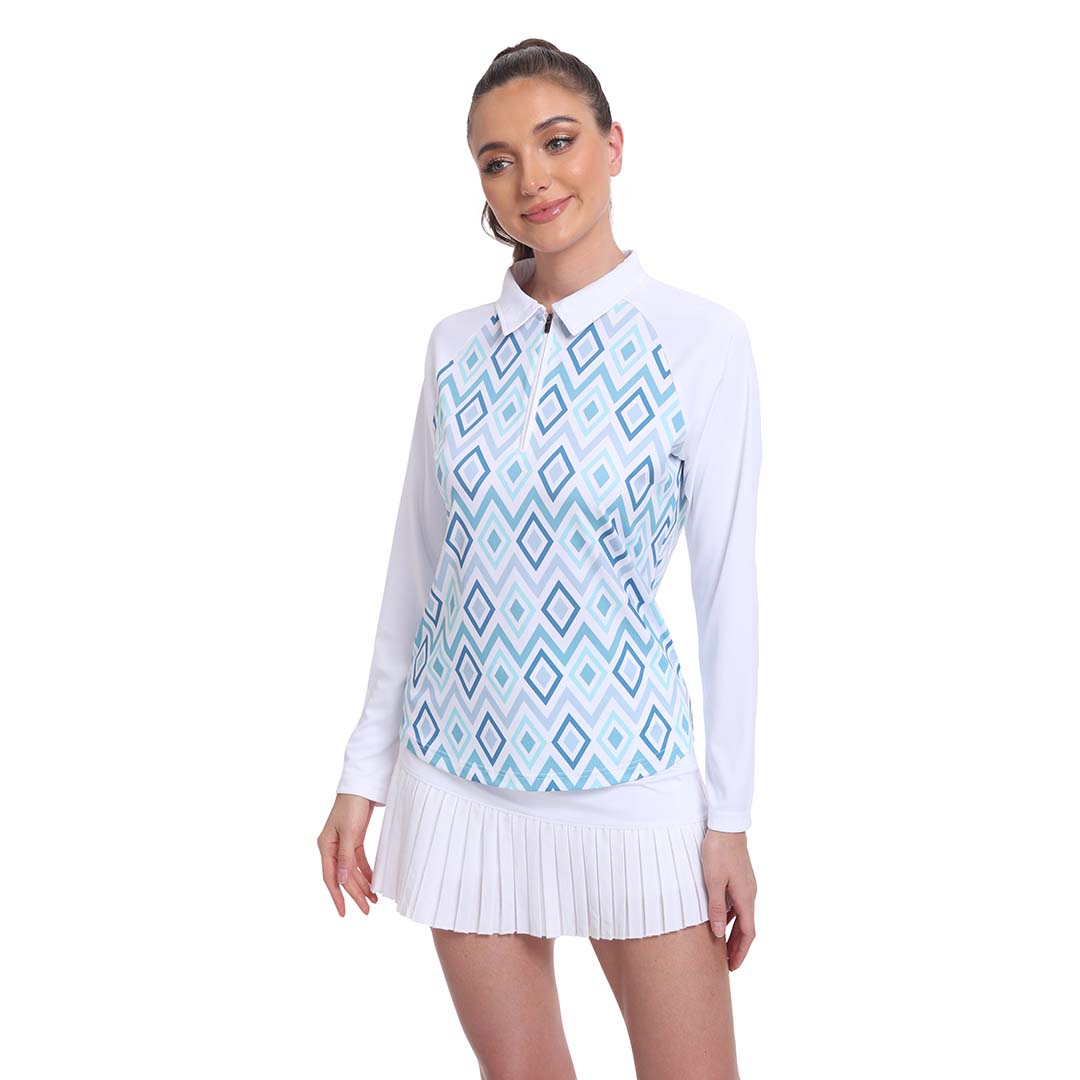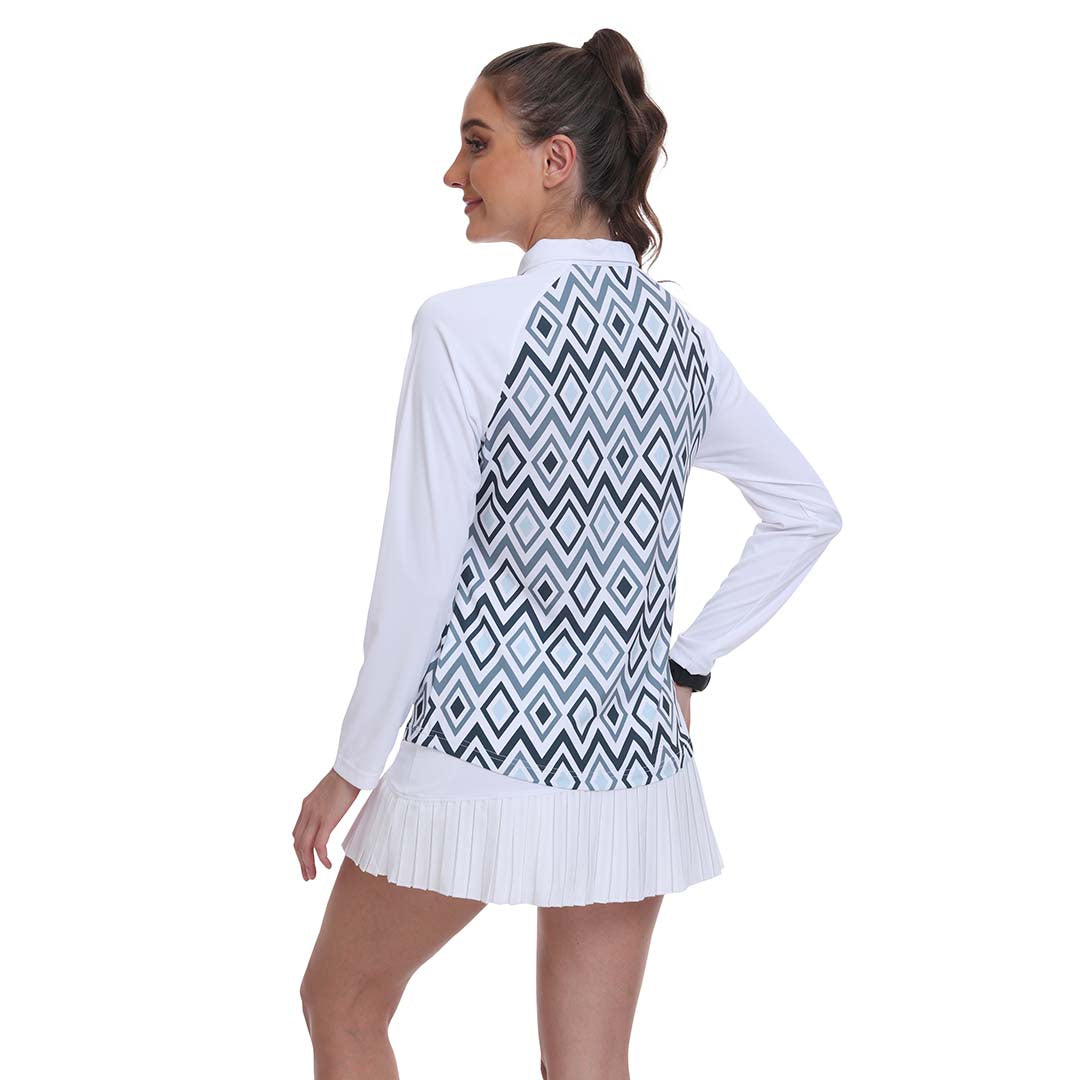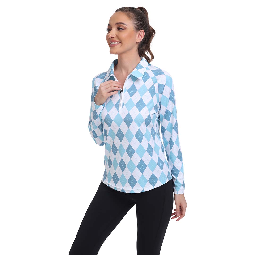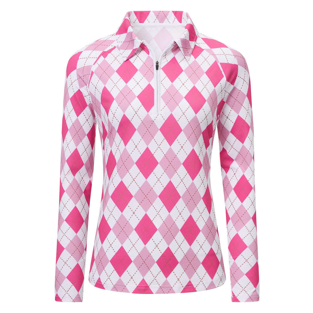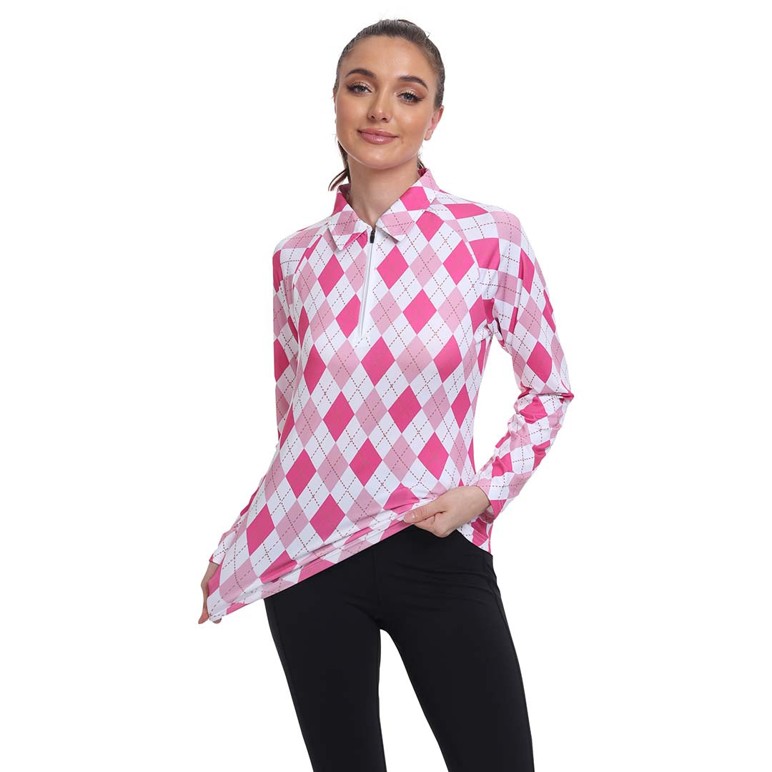 Polo shirt for women - polo T-shirt with polo collar, long sleeve T-shirt, 1/4 zip, polo collar without tag, colour block, slim fit.