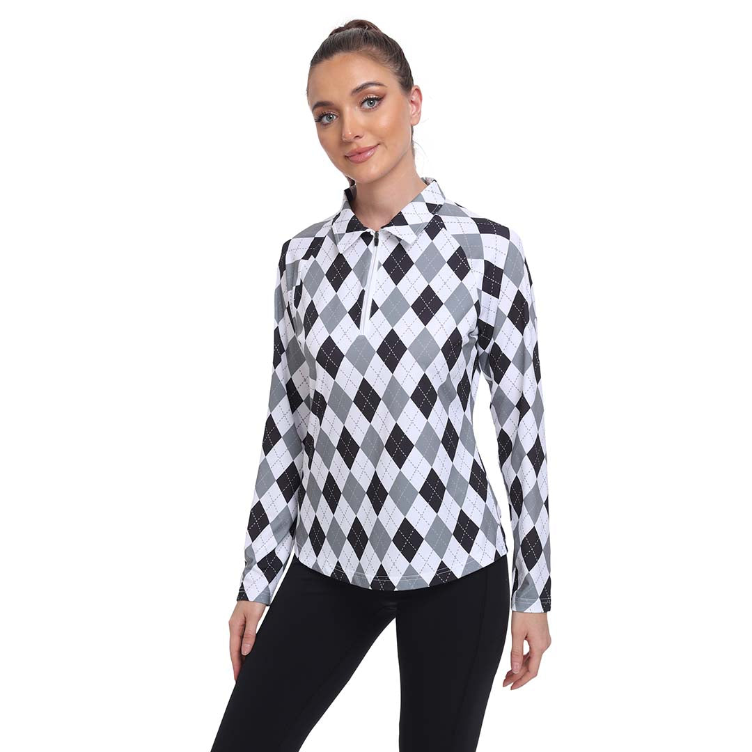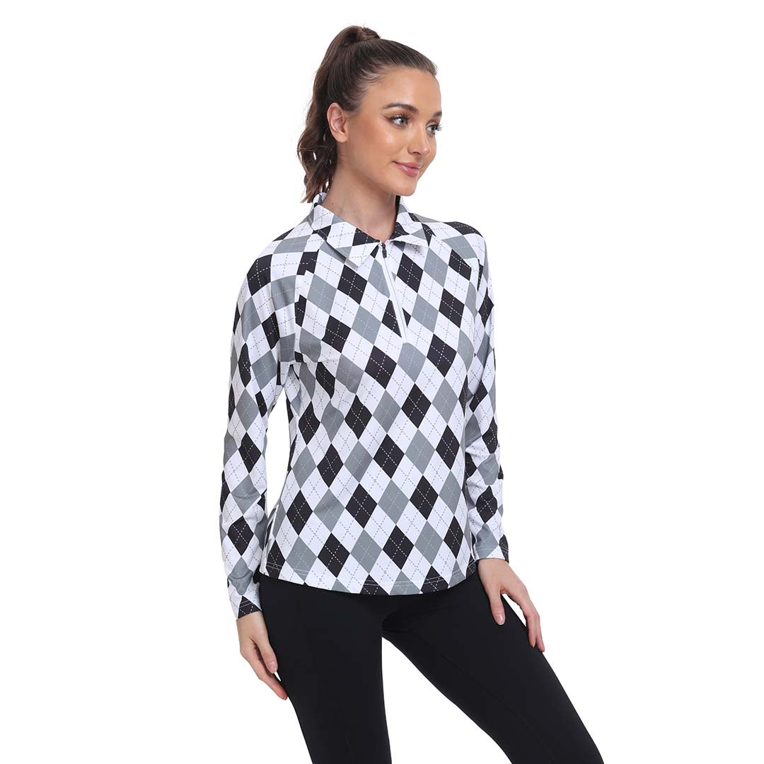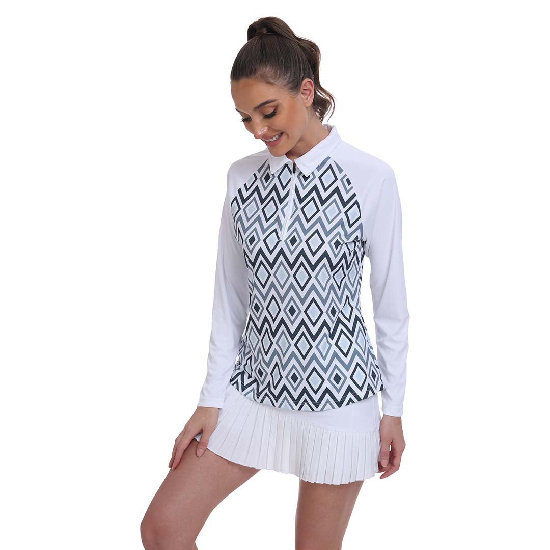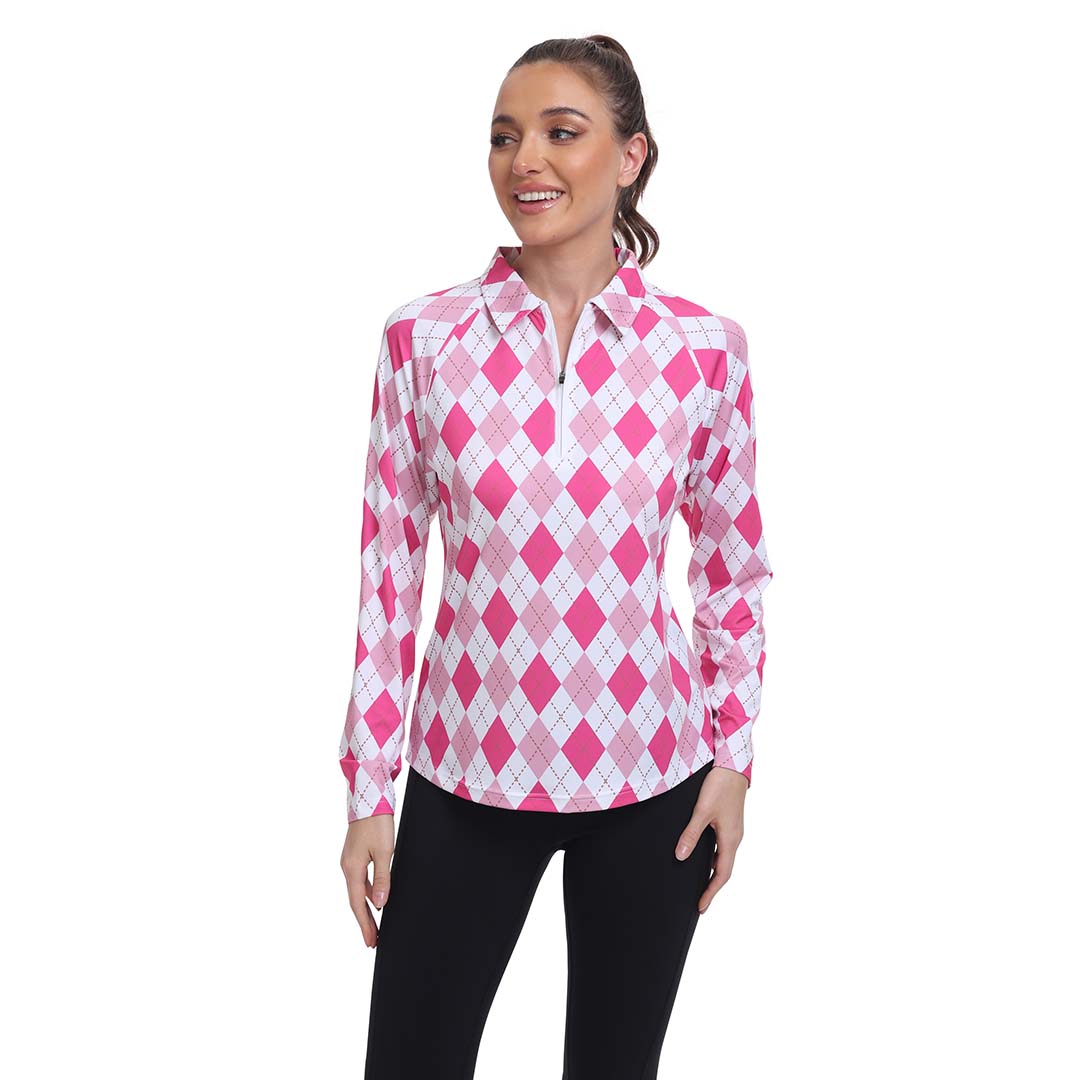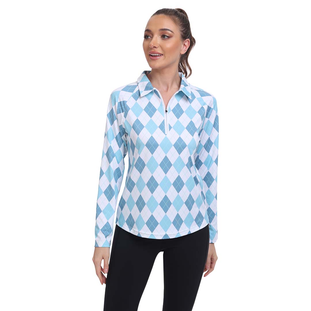Polo shirt for women - polo T-shirt with polo collar, long sleeve T-shirt, 1/4 zip, polo collar without tag, colour block, slim fit.