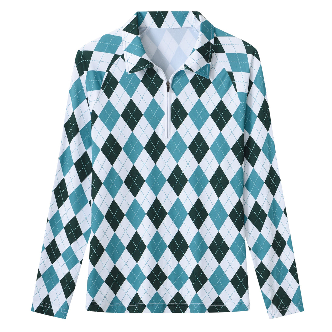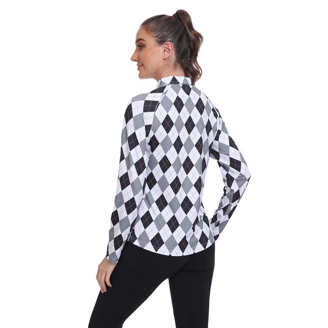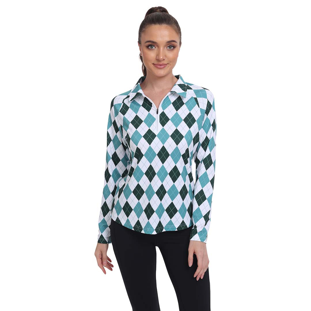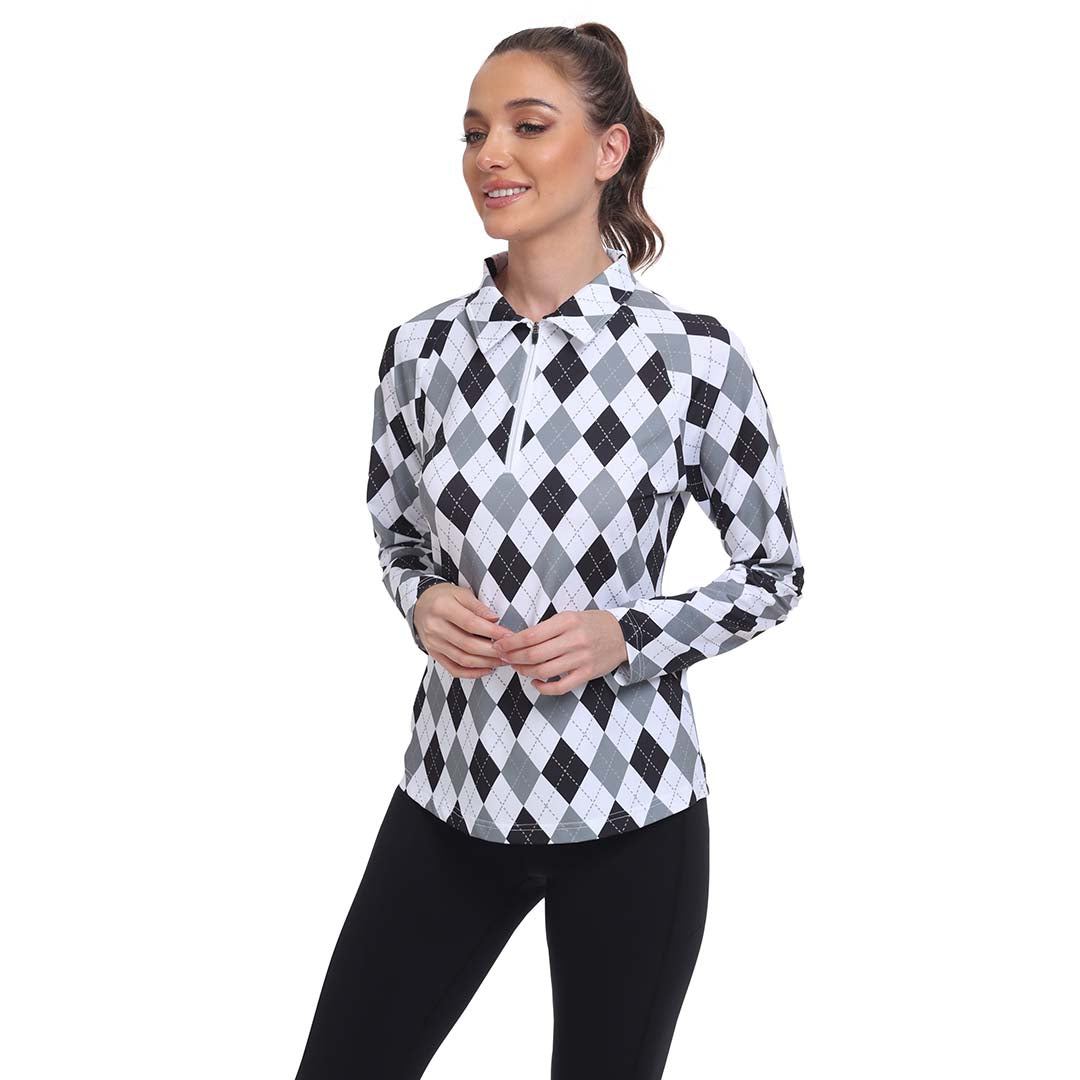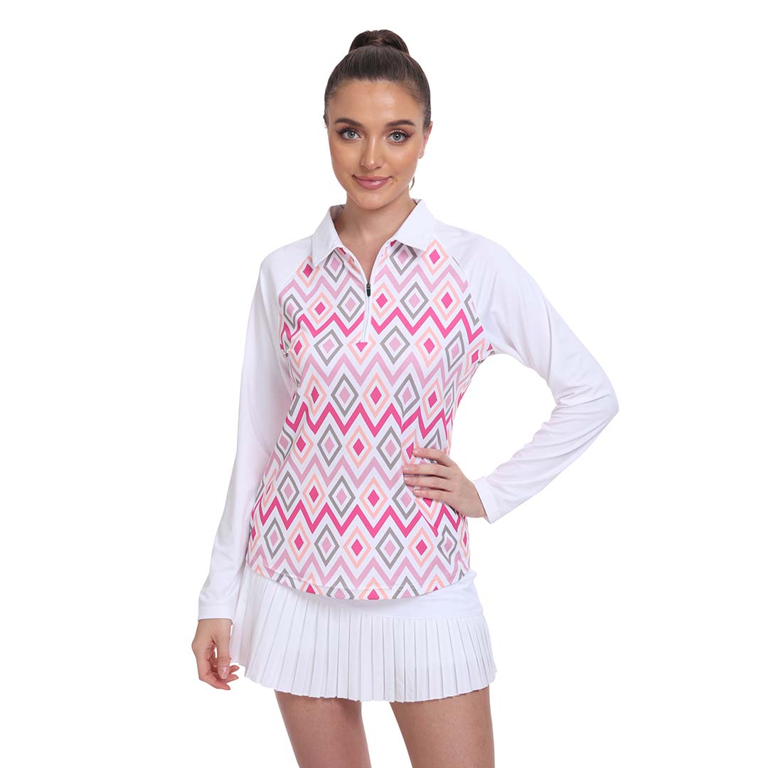 Polo shirt for women - polo T-shirt with polo collar, long sleeve T-shirt, 1/4 zip, polo collar without tag, colour block, slim fit.