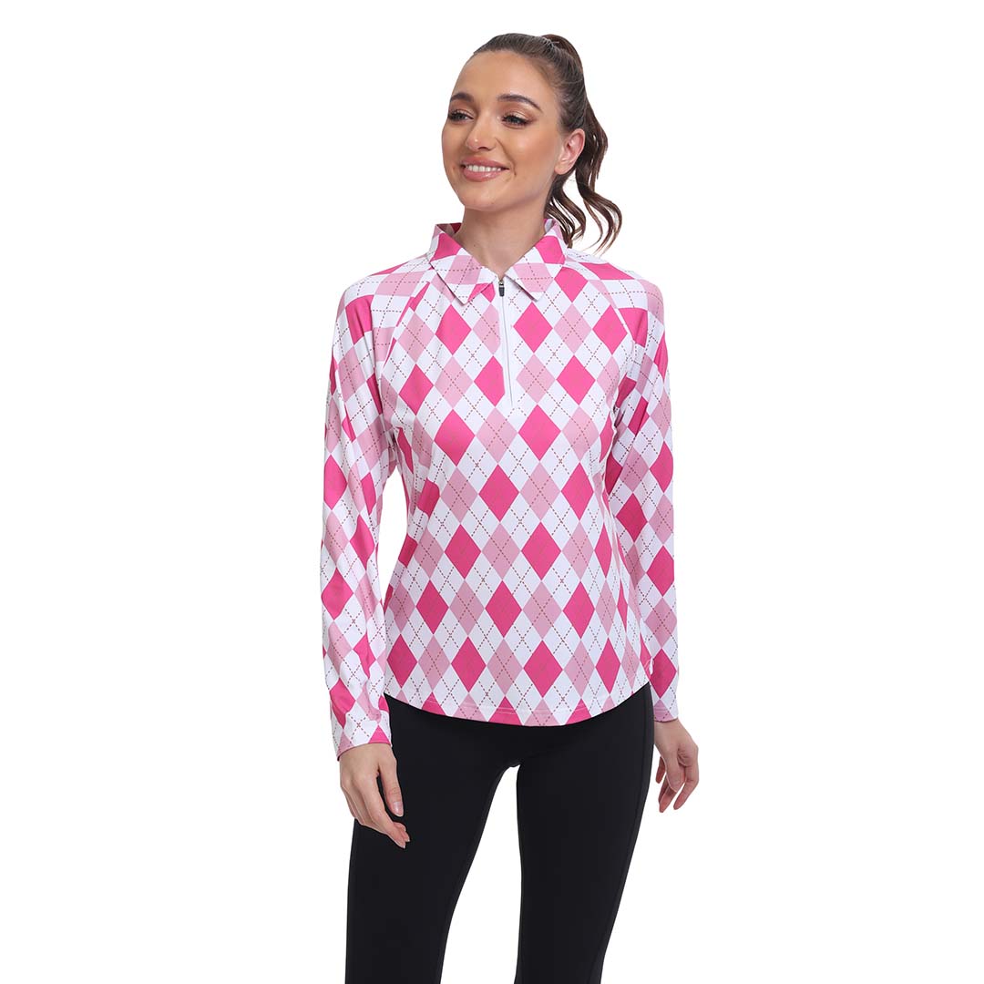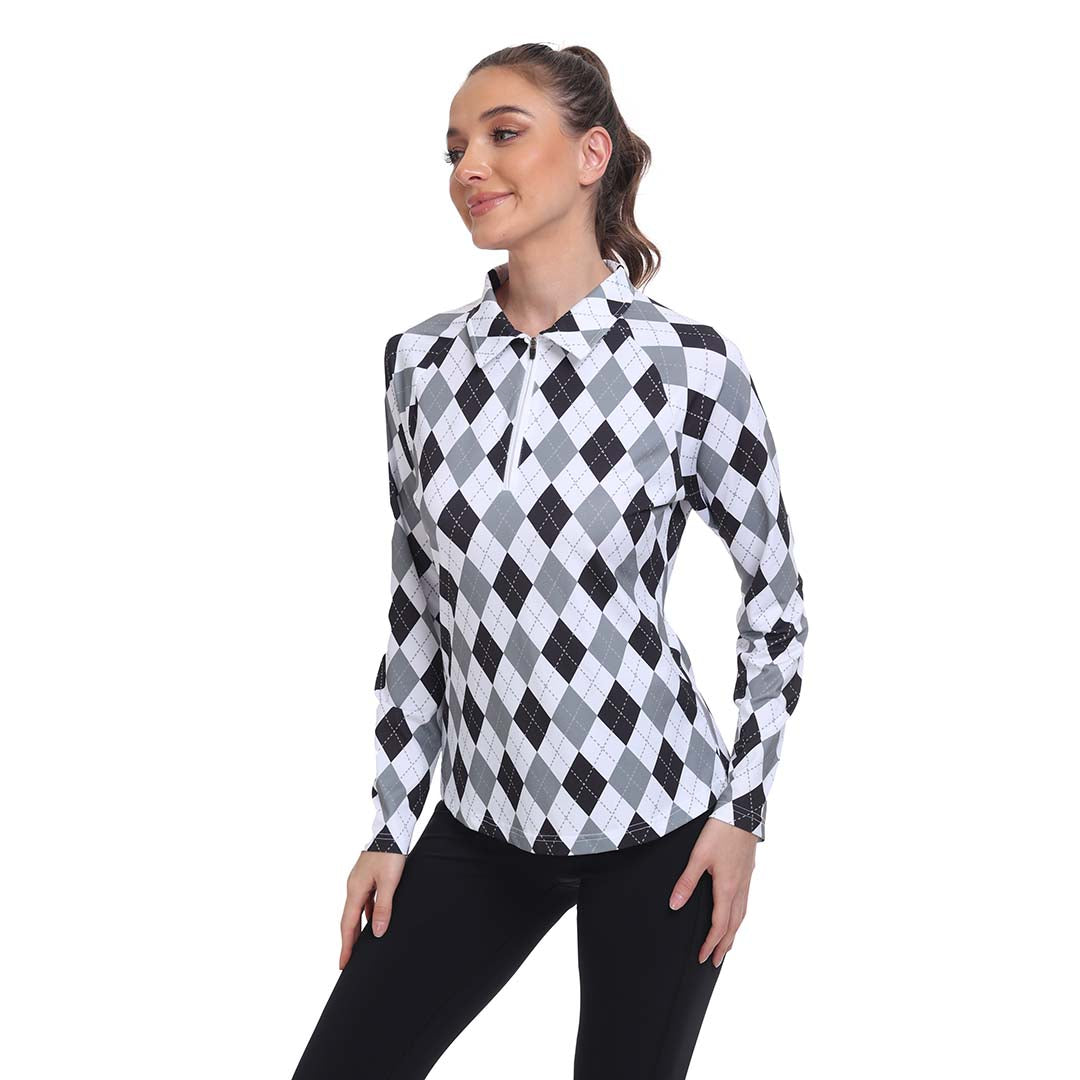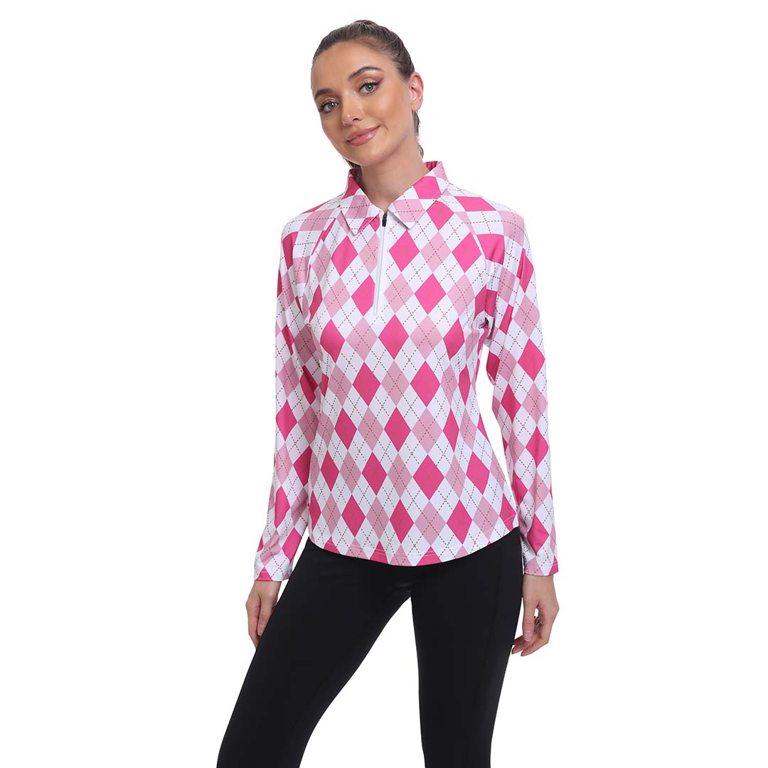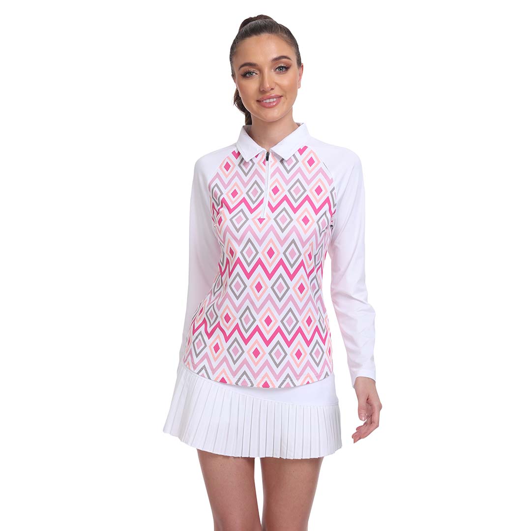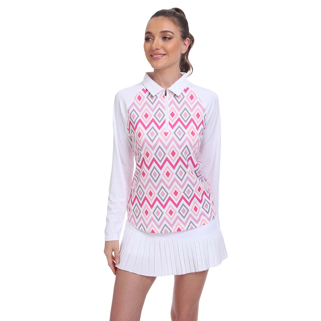 Polo shirt for women - polo T-shirt with polo collar, long sleeve T-shirt, 1/4 zip, polo collar without tag, colour block, slim fit.