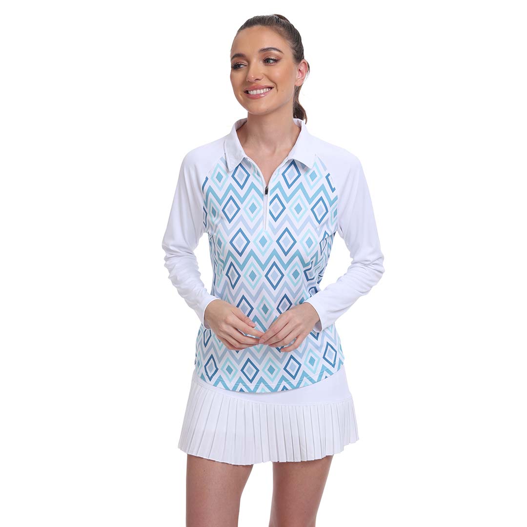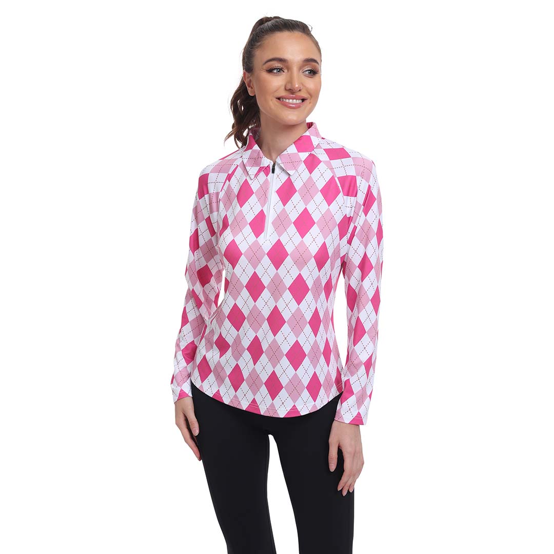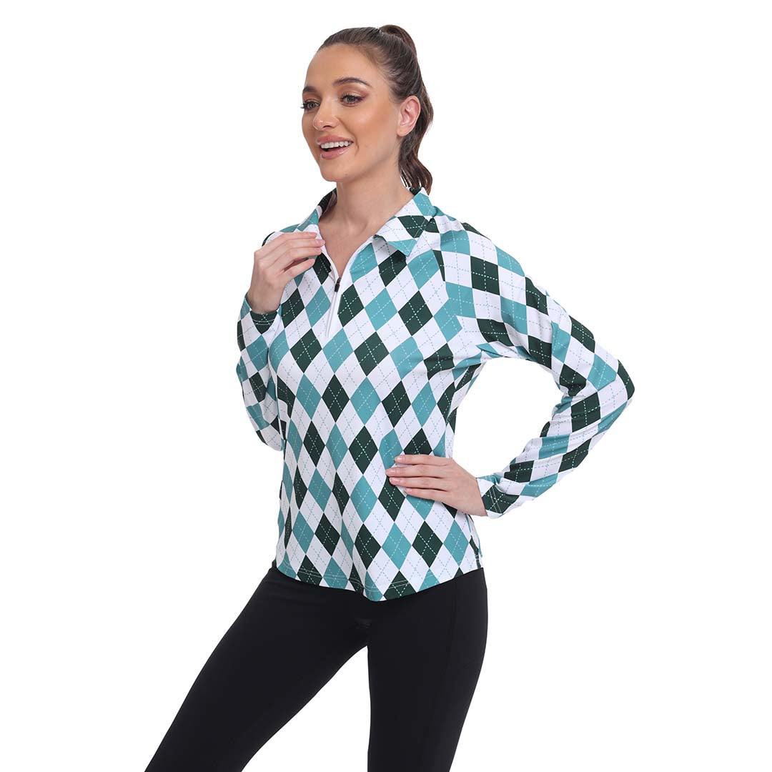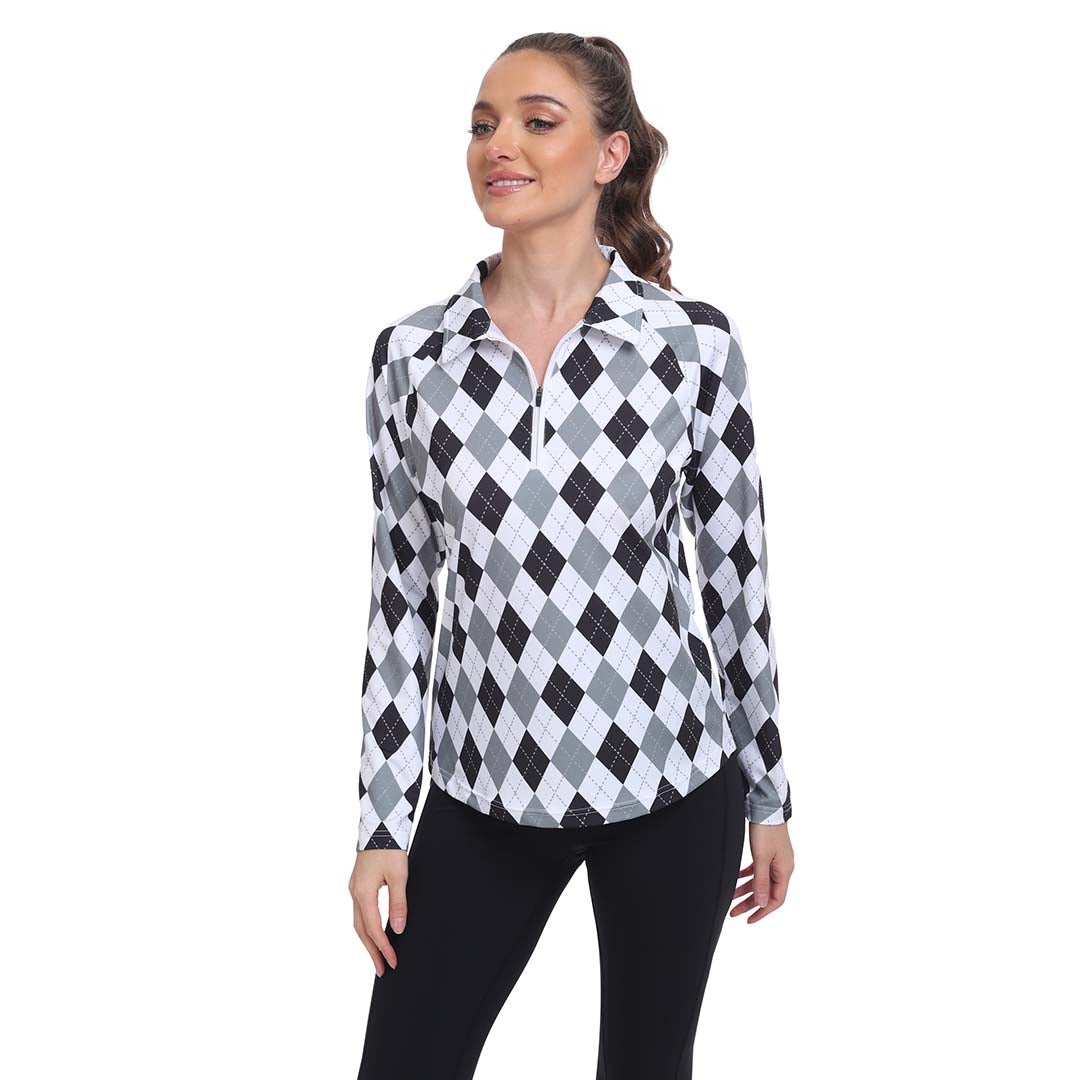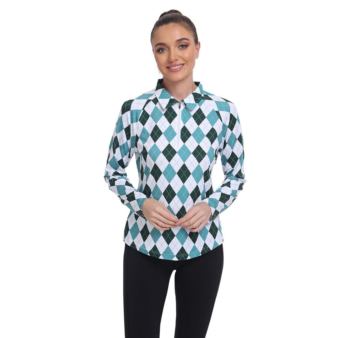 Polo shirt for women - polo T-shirt with polo collar, long sleeve T-shirt, 1/4 zip, polo collar without tag, colour block, slim fit.