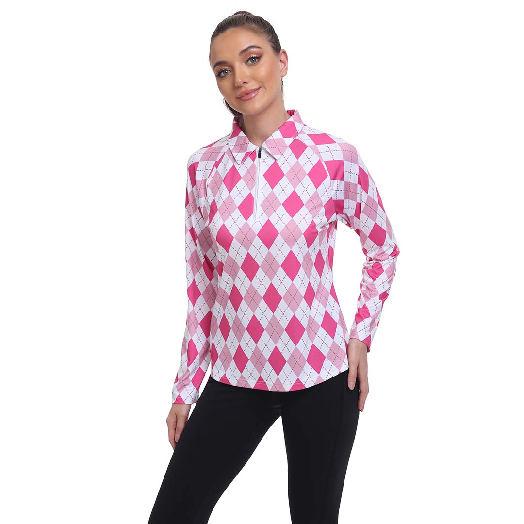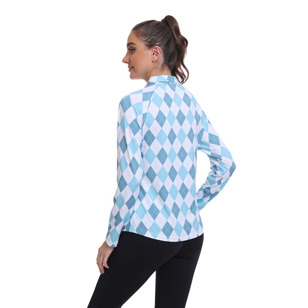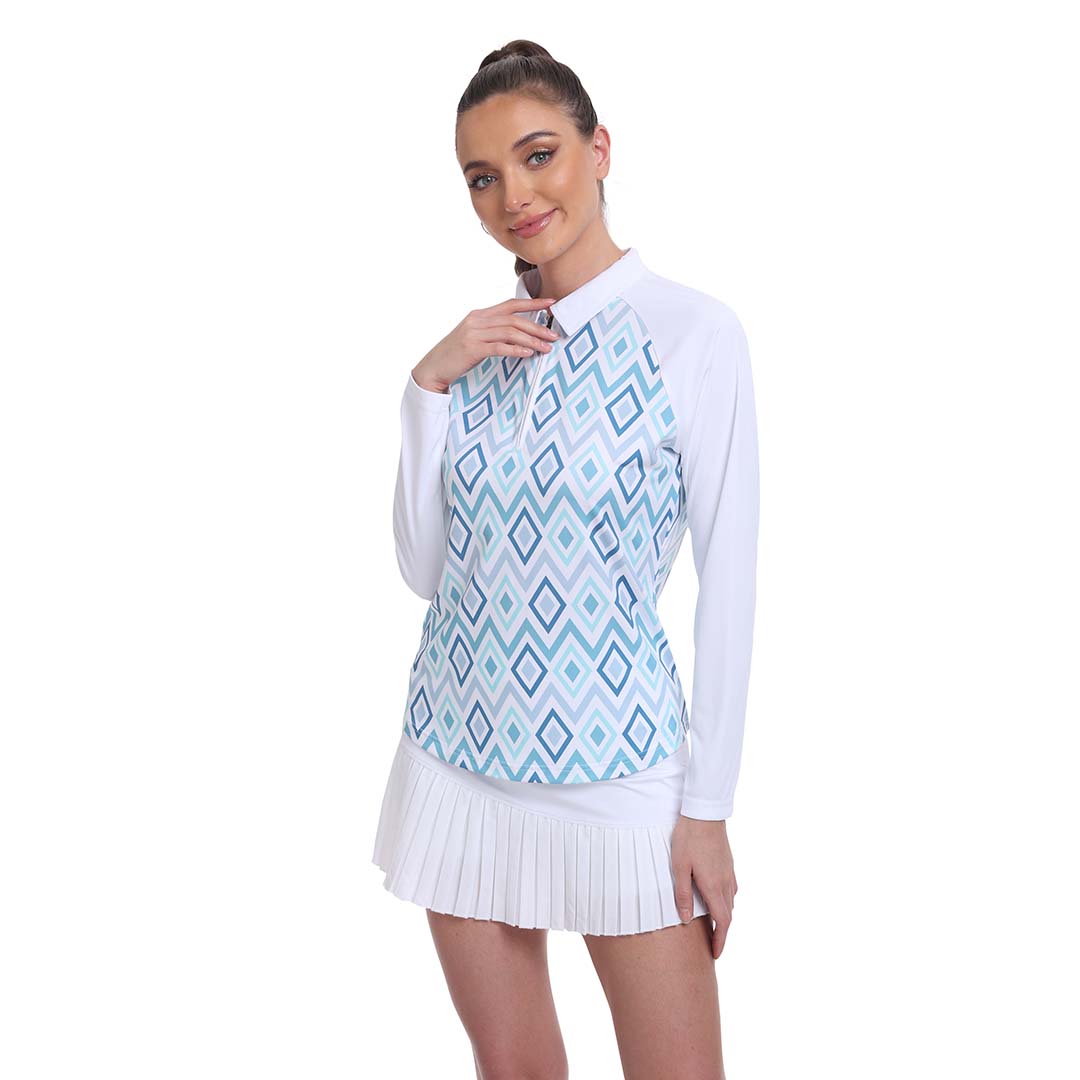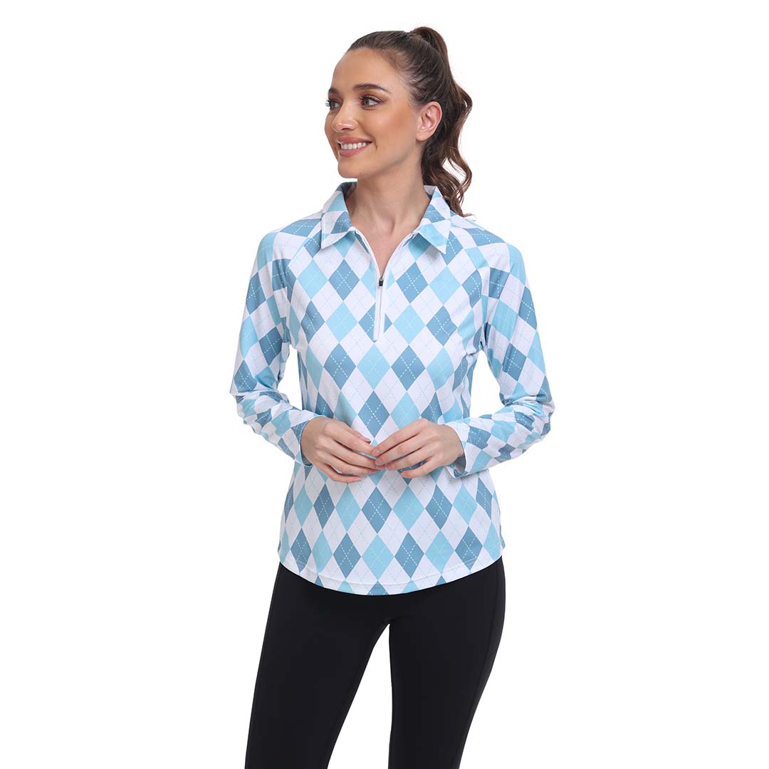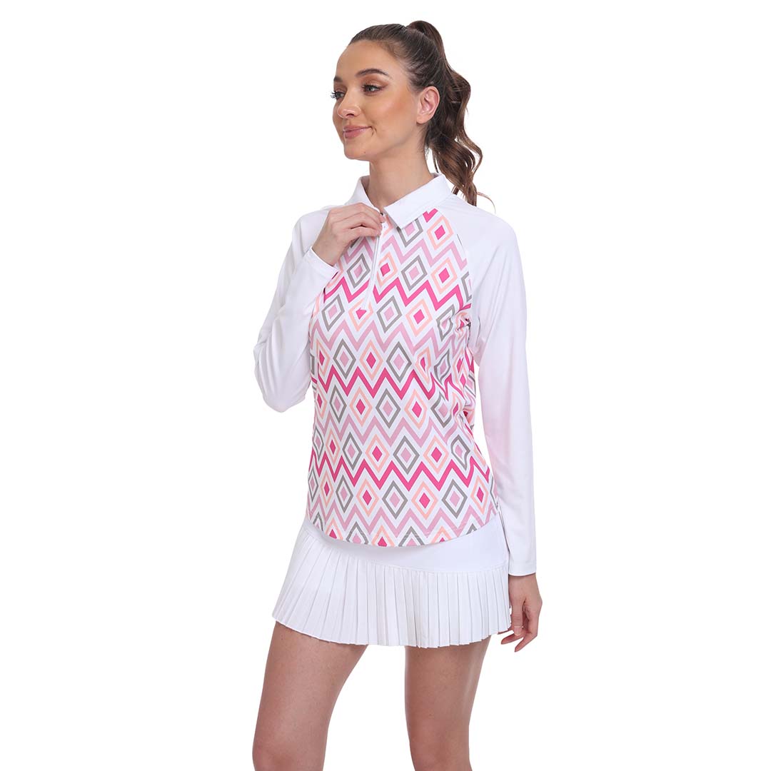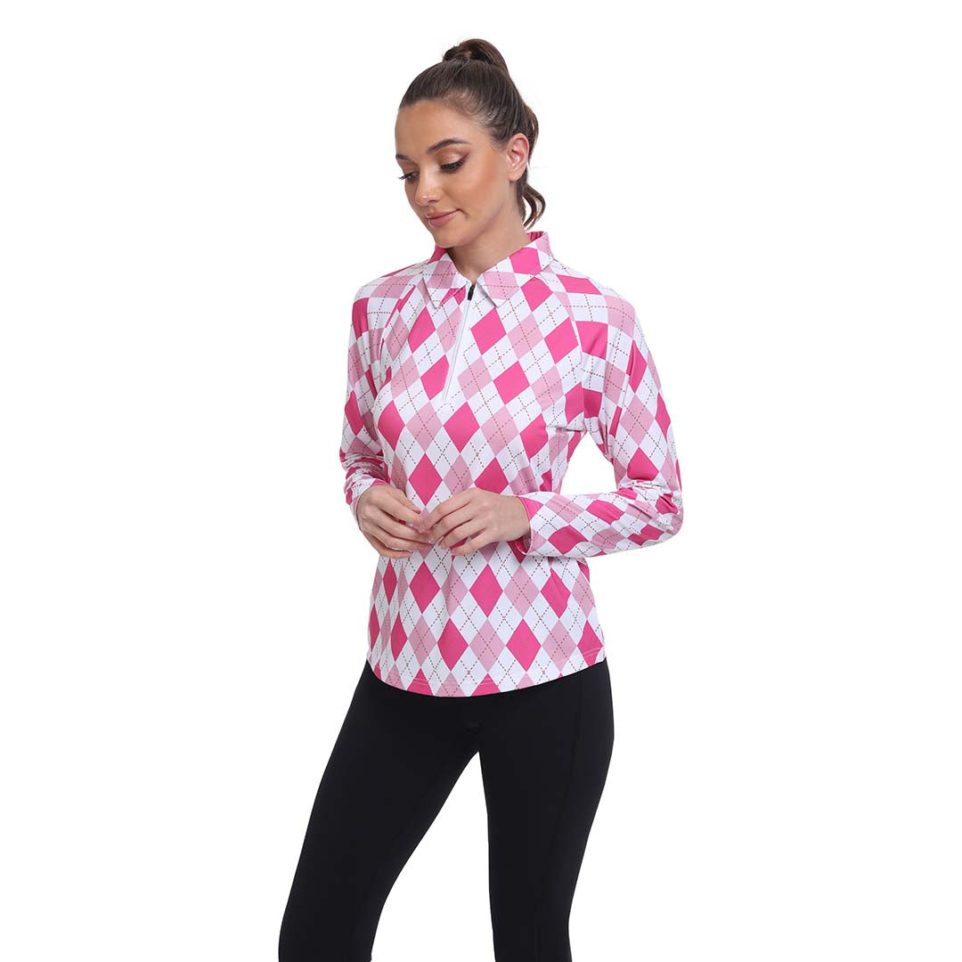 Polo shirt for women - polo T-shirt with polo collar, long sleeve T-shirt, 1/4 zip, polo collar without tag, colour block, slim fit.