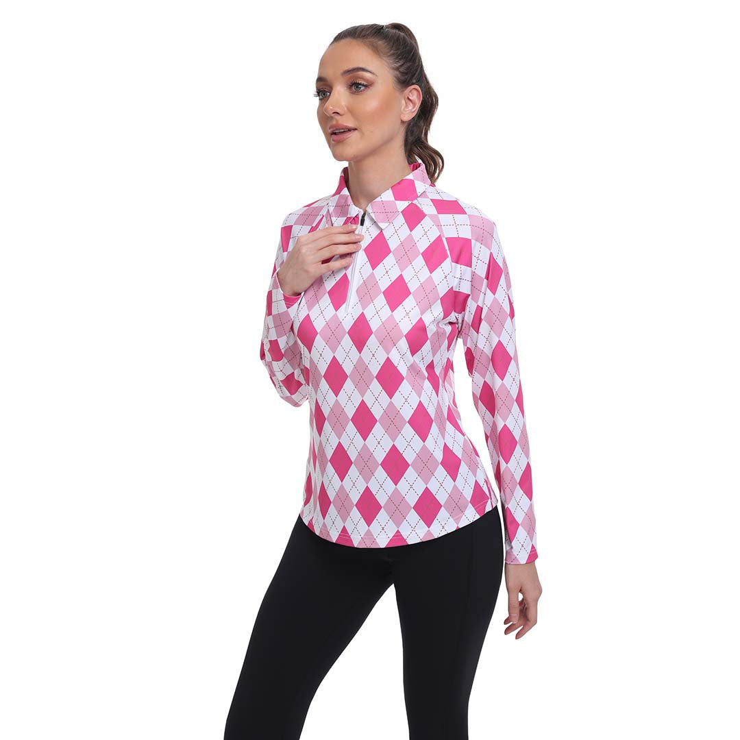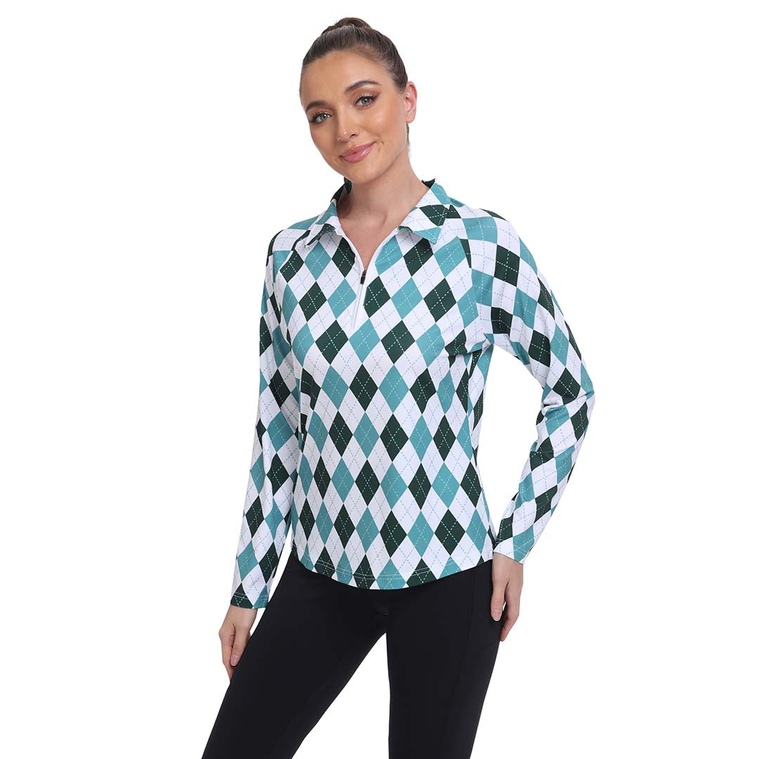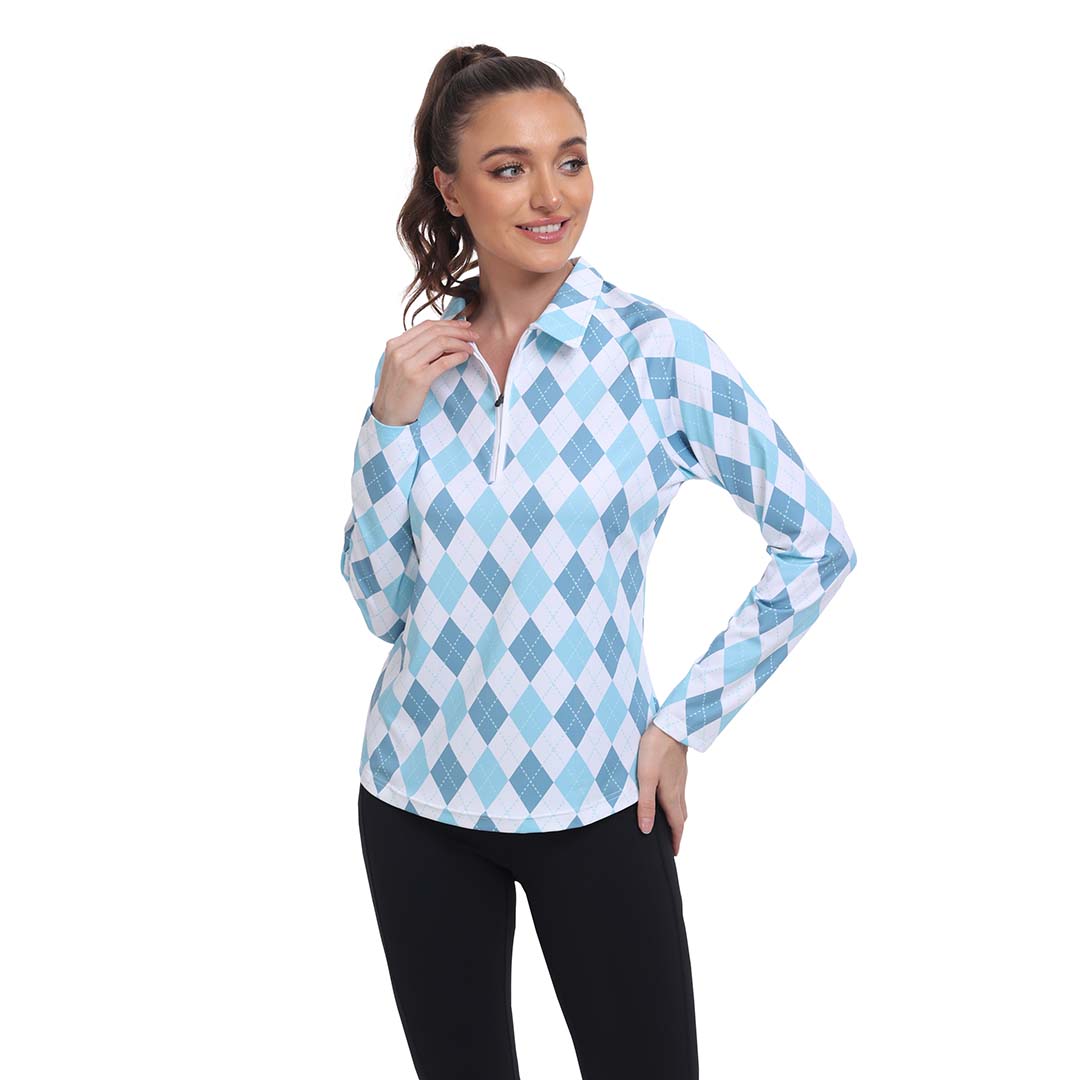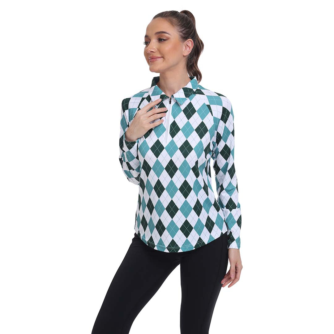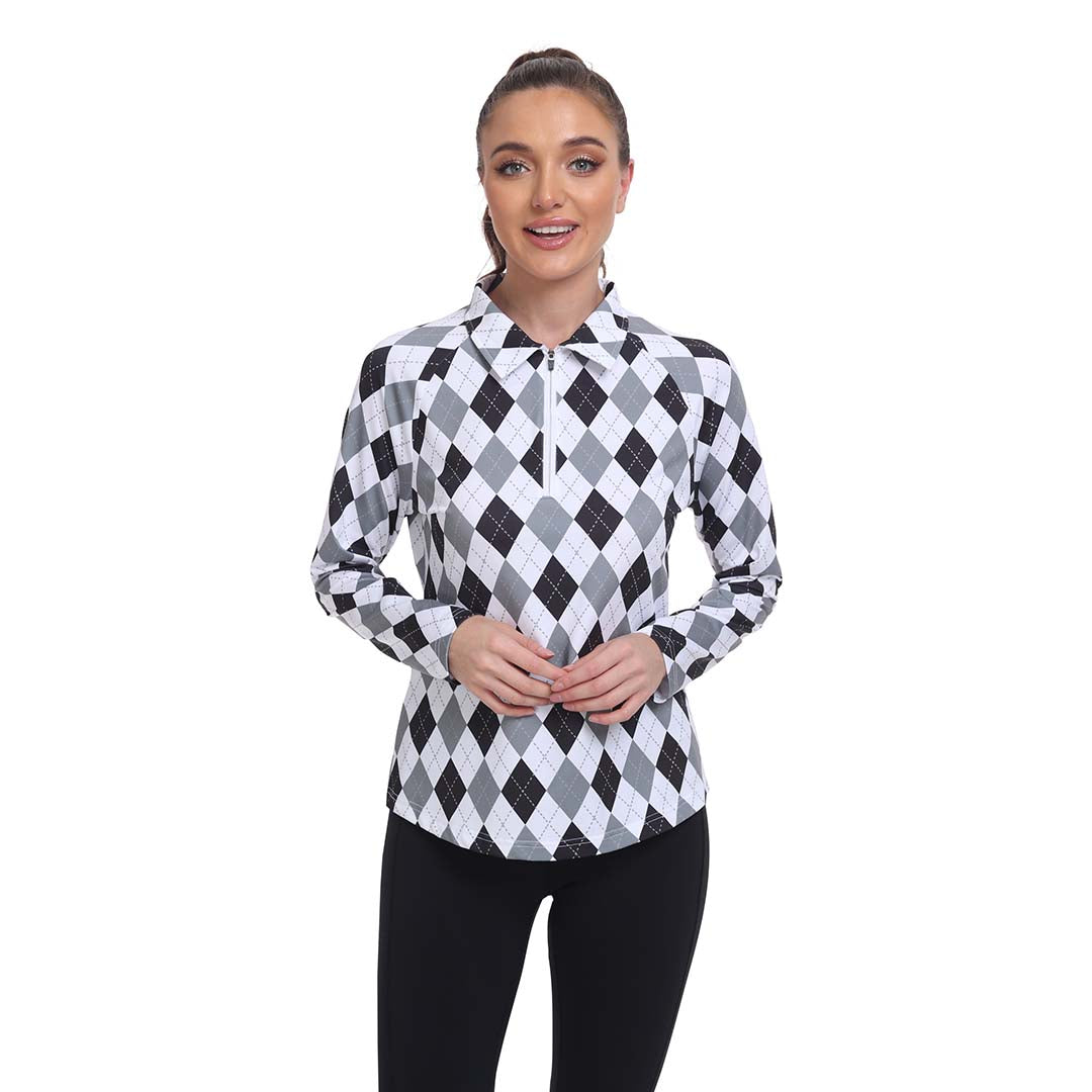 Polo shirt for women - polo T-shirt with polo collar, long sleeve T-shirt, 1/4 zip, polo collar without tag, colour block, slim fit.