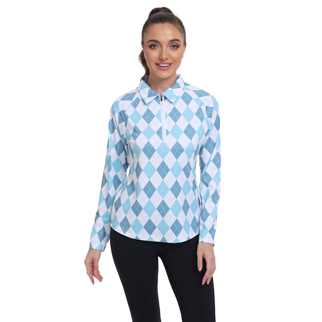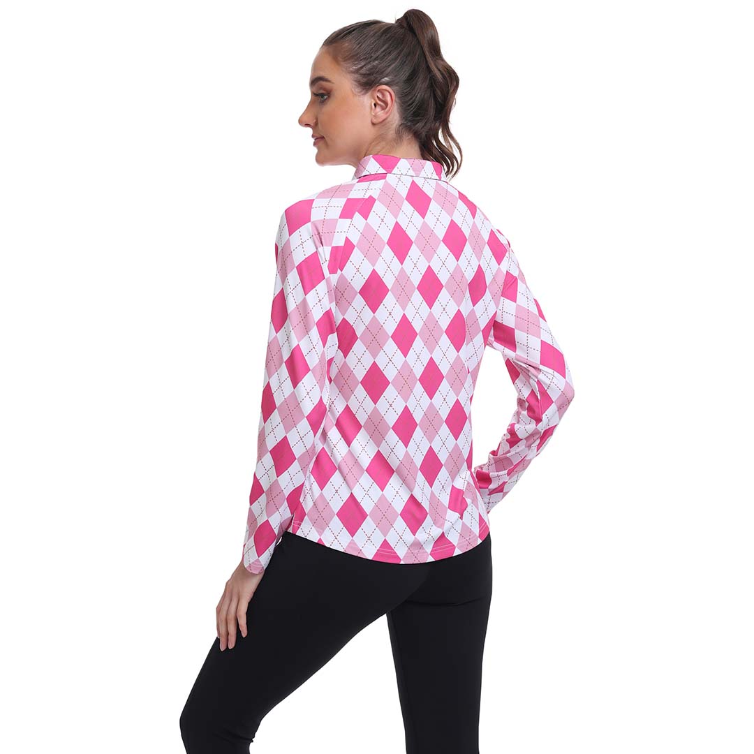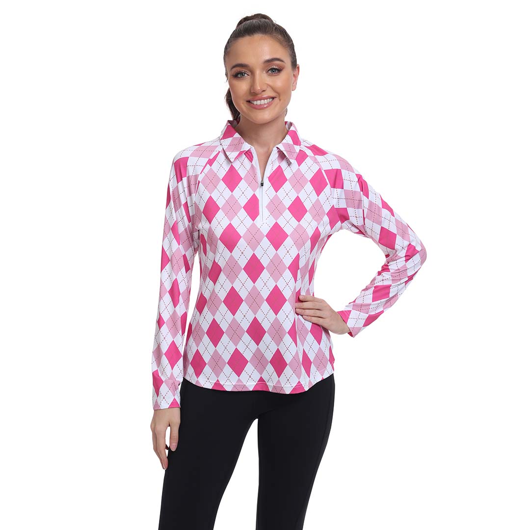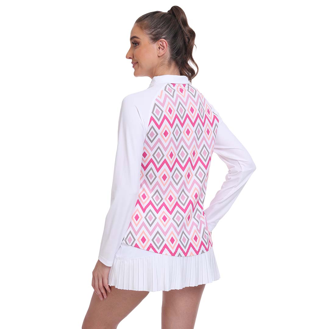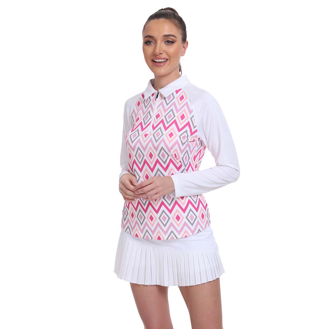 Polo shirt for women - polo T-shirt with polo collar, long sleeve T-shirt, 1/4 zip, polo collar without tag, colour block, slim fit.