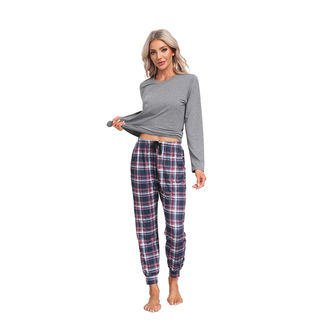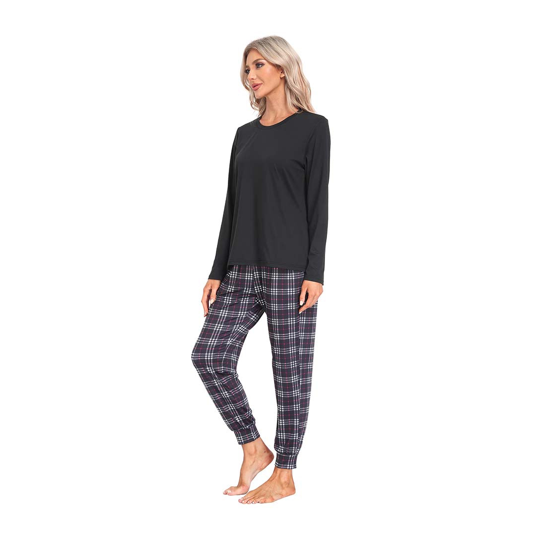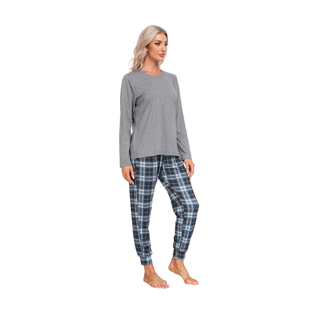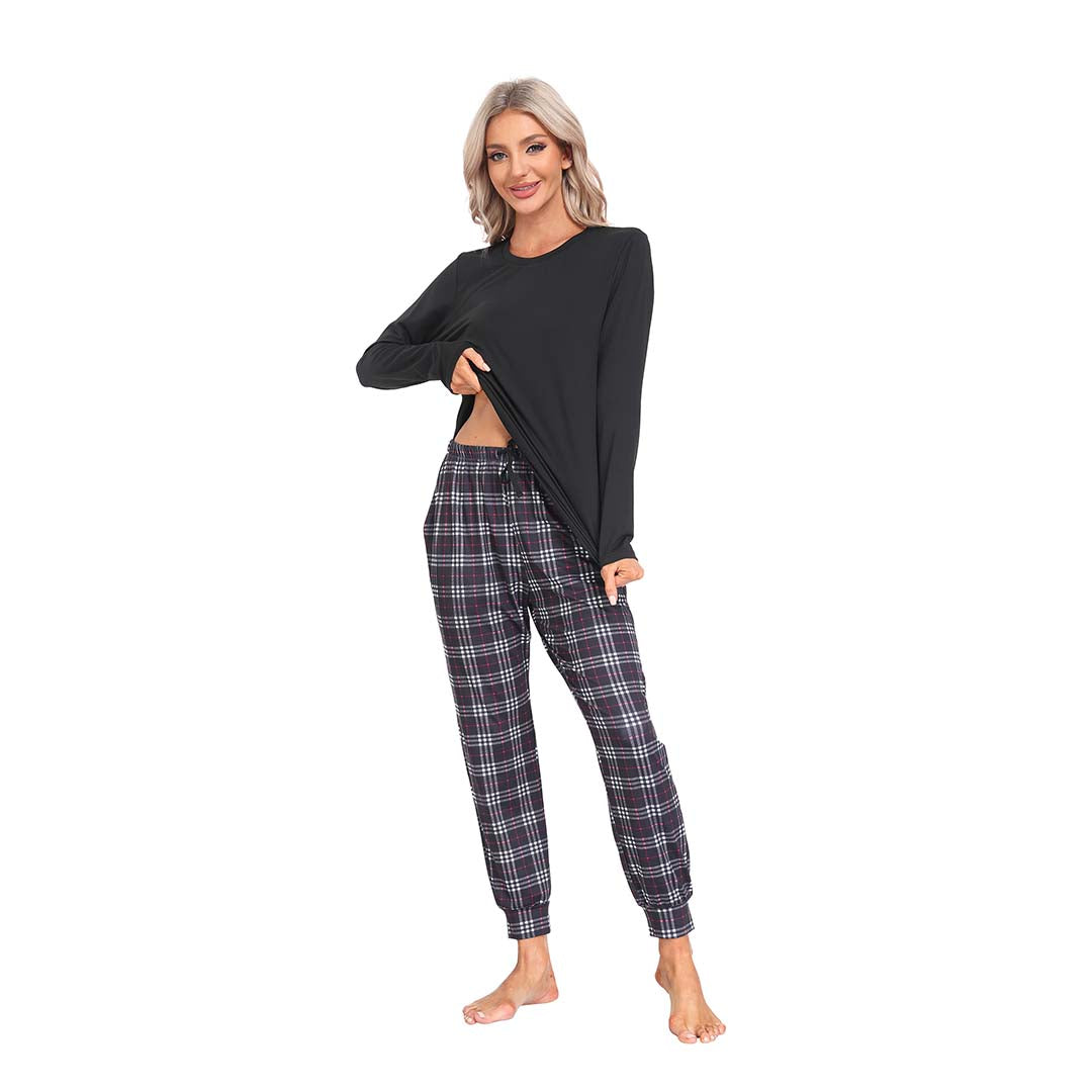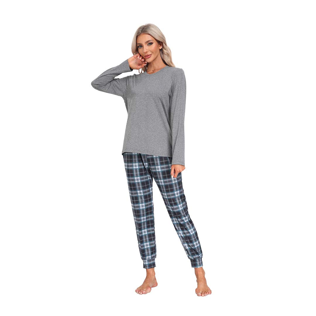 Comfy Pajamas sets for Women feature solid color long sleeve top and Plaid Pants, Drawstring Waist design to make you relaxing as comfortable as possible and 2 side pockets can Can store mobile phone.