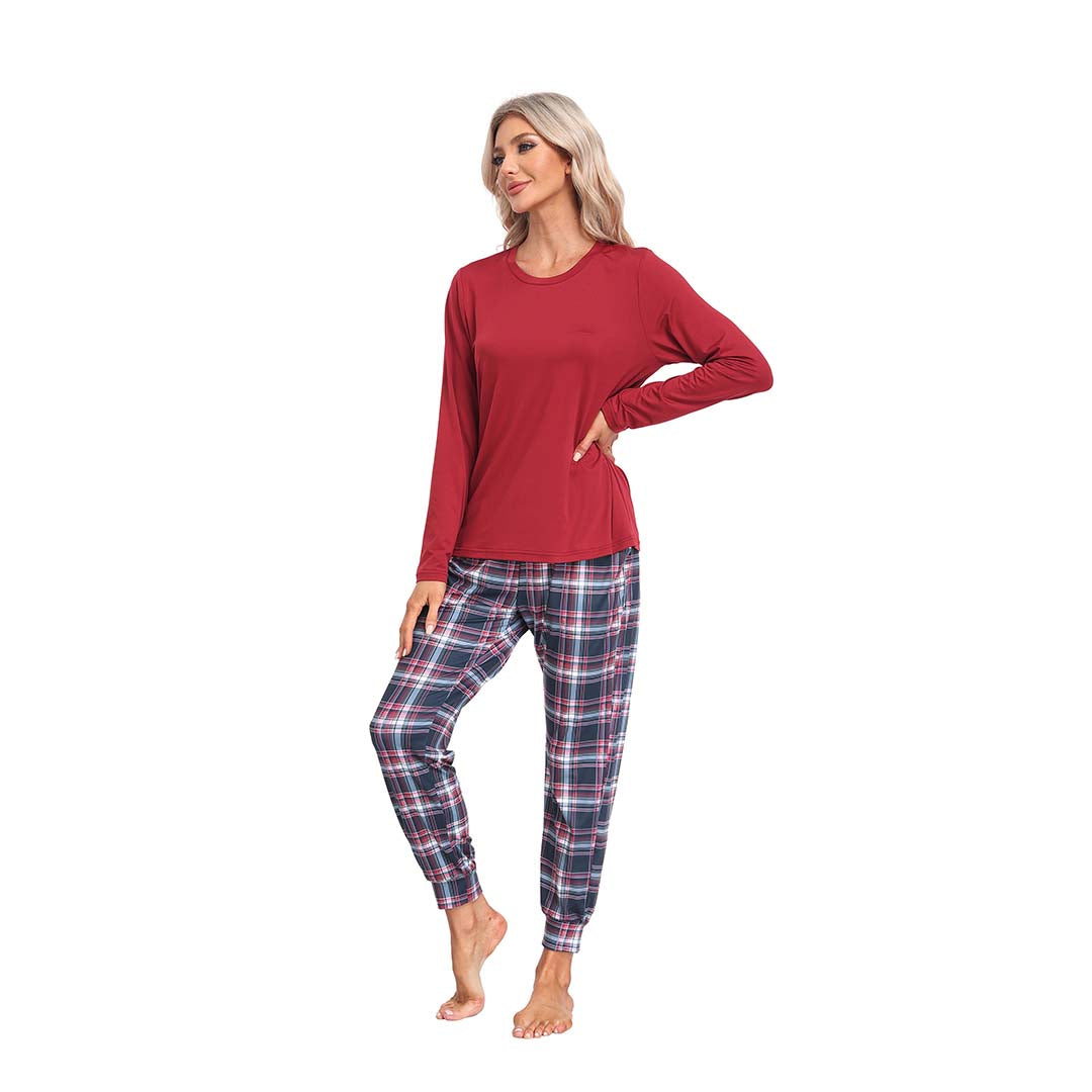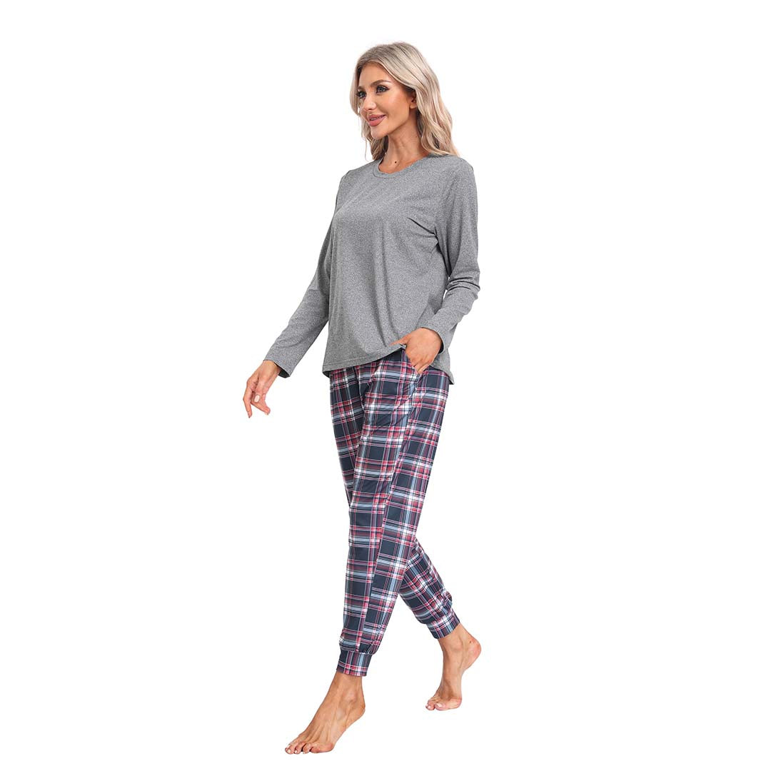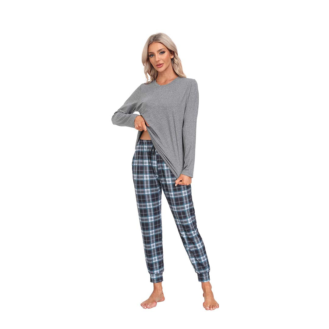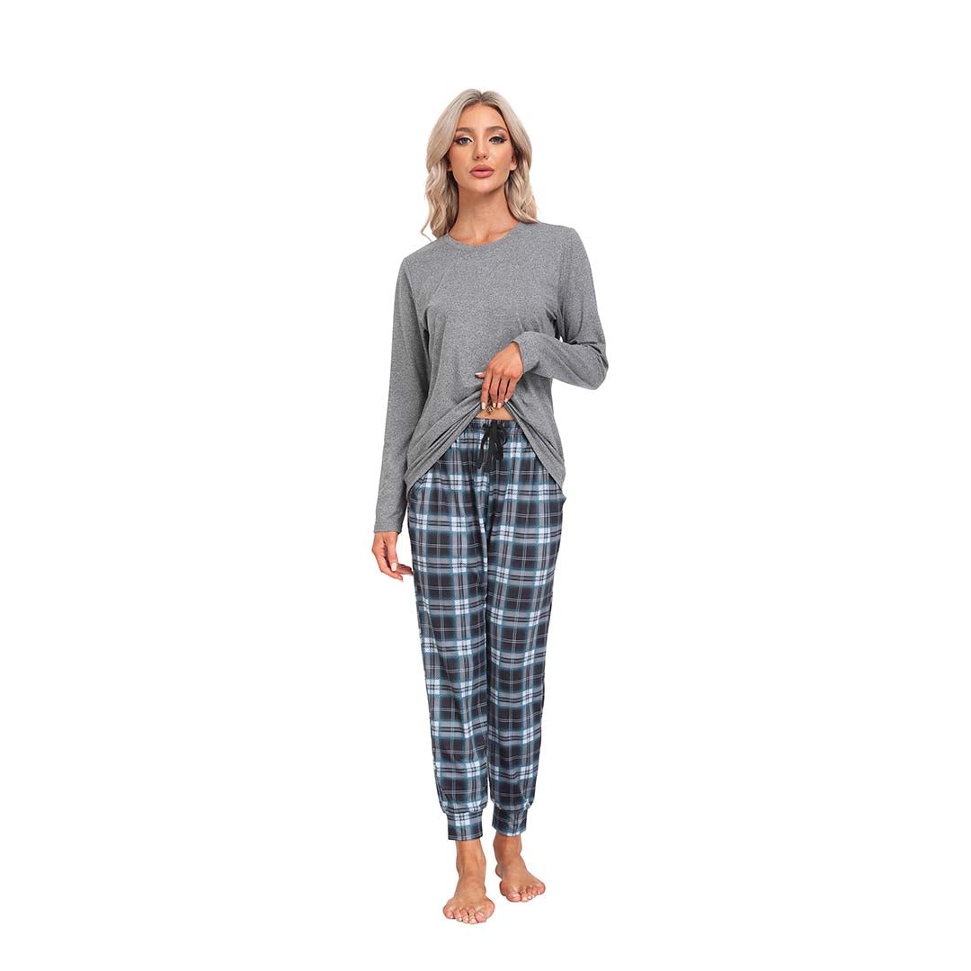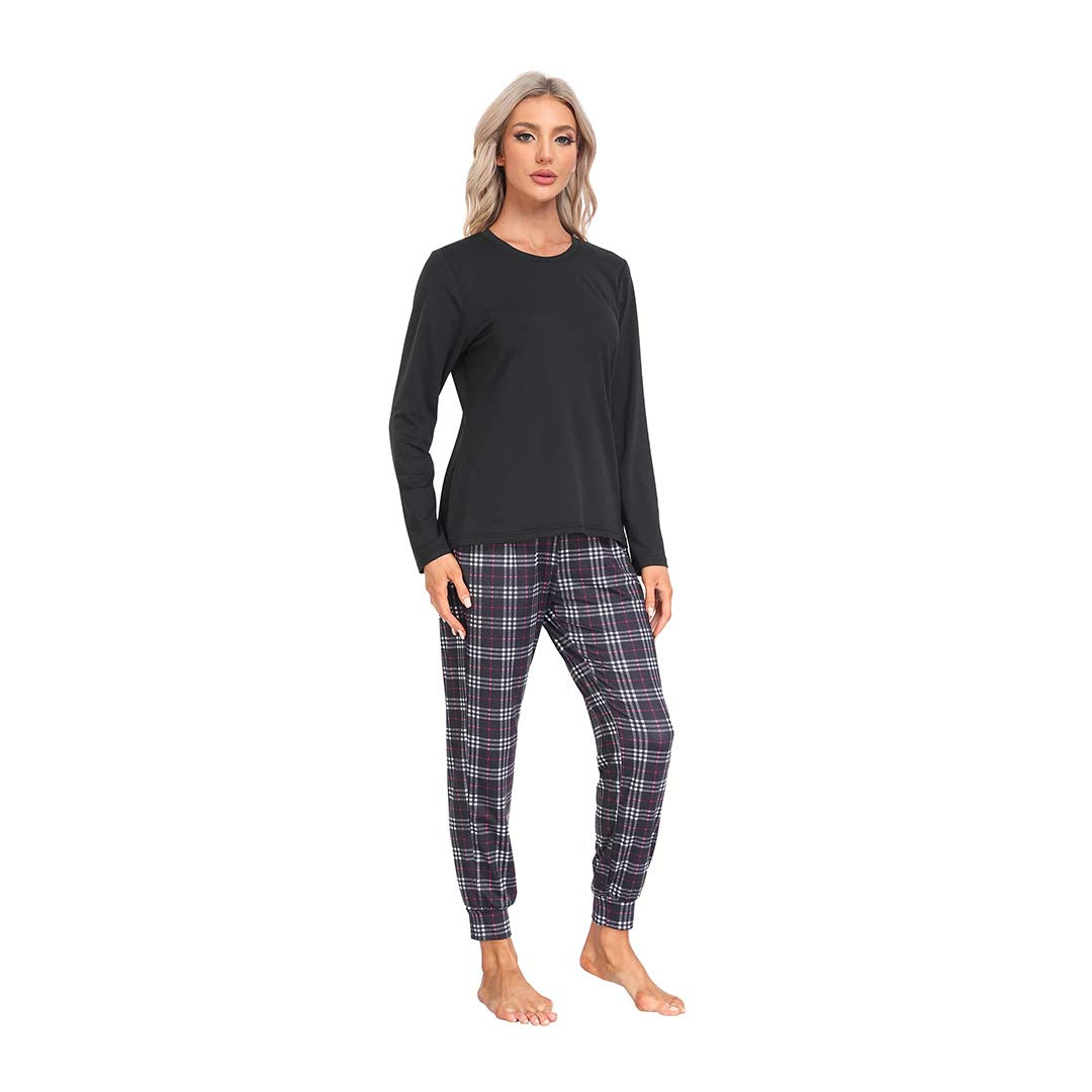 Comfy Pajamas sets for Women feature solid color long sleeve top and Plaid Pants, Drawstring Waist design to make you relaxing as comfortable as possible and 2 side pockets can Can store mobile phone.
