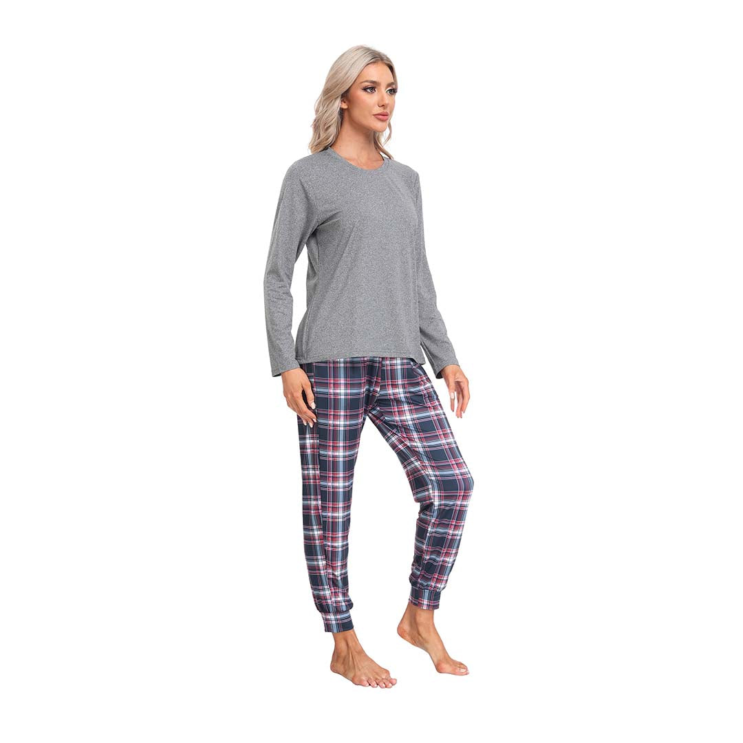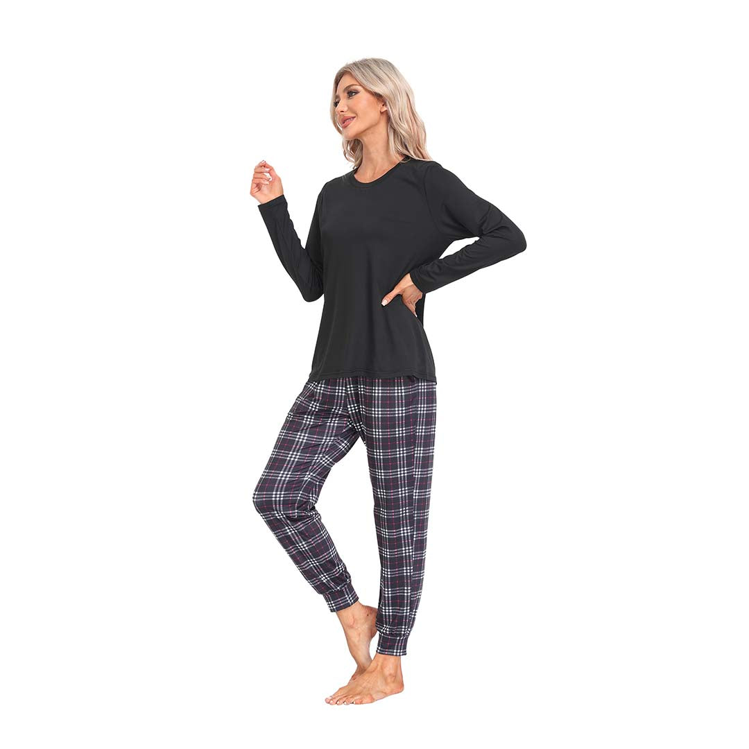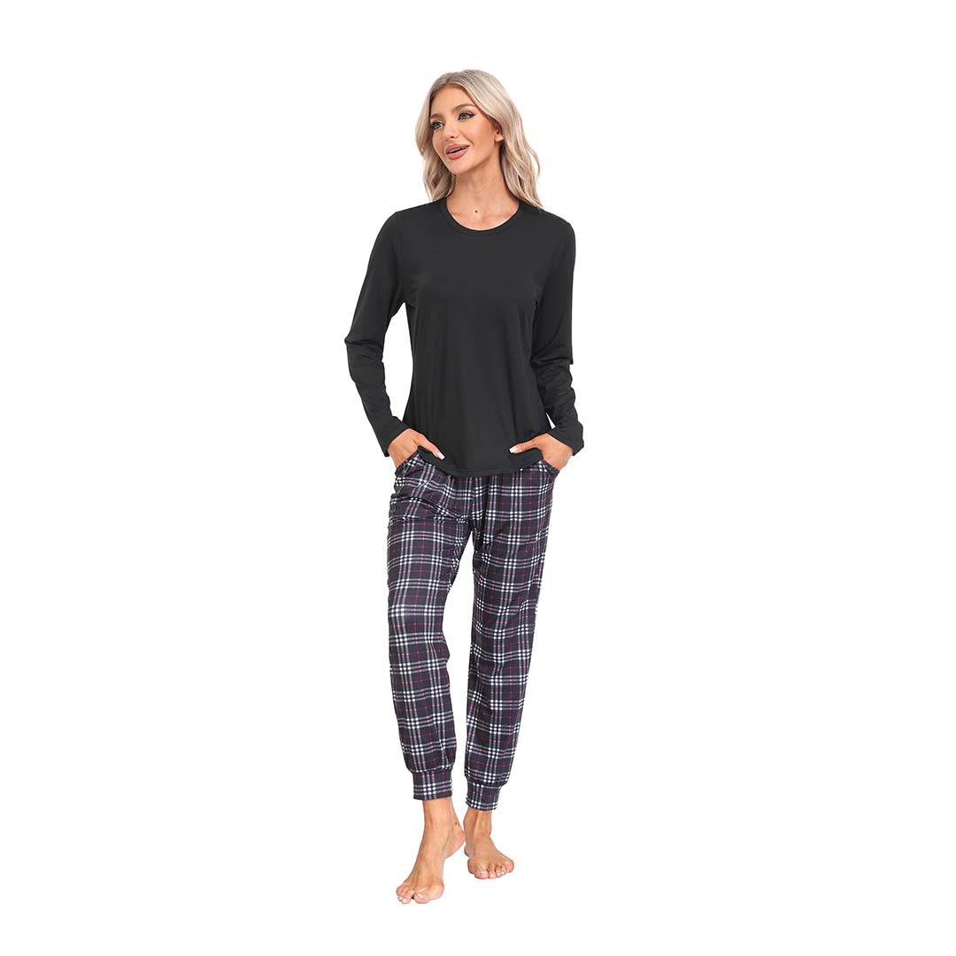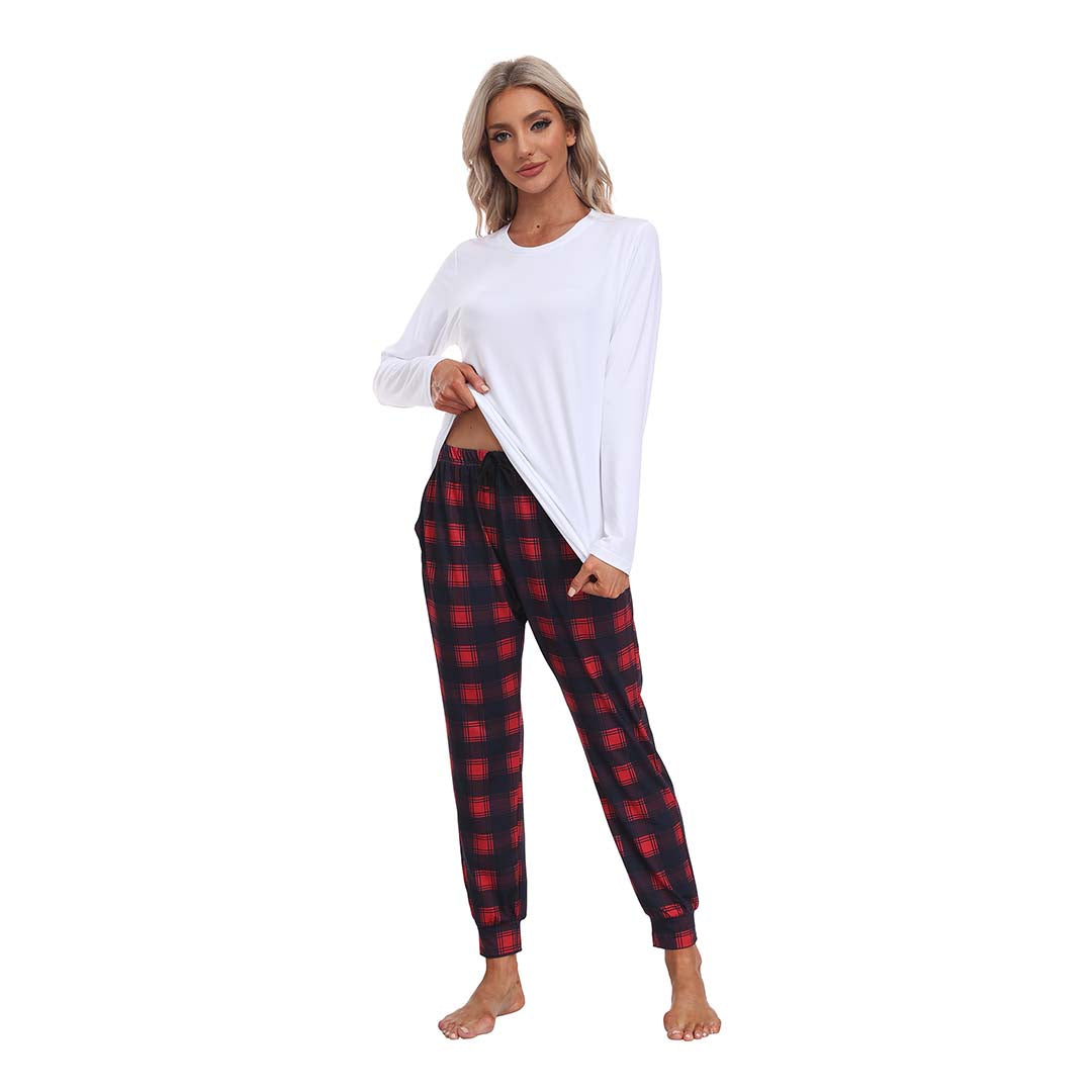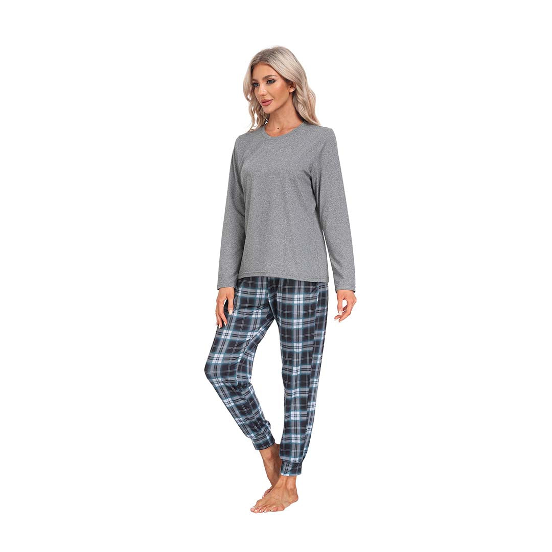 Comfy Pajamas sets for Women feature solid color long sleeve top and Plaid Pants, Drawstring Waist design to make you relaxing as comfortable as possible and 2 side pockets can Can store mobile phone.
