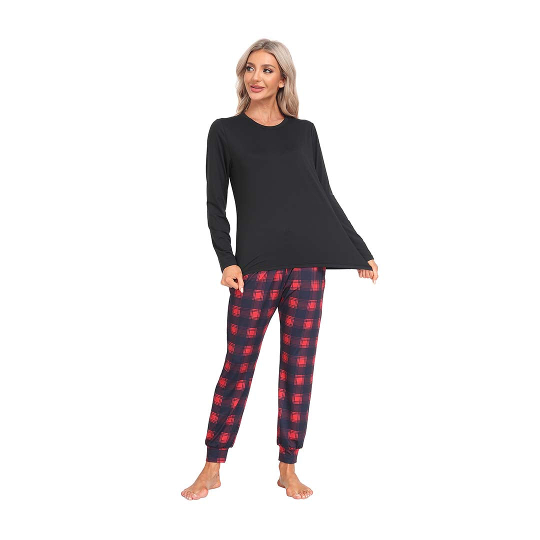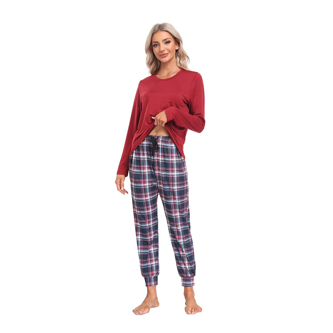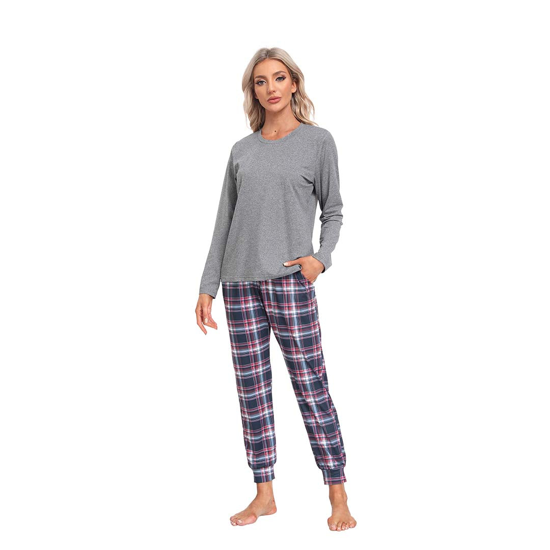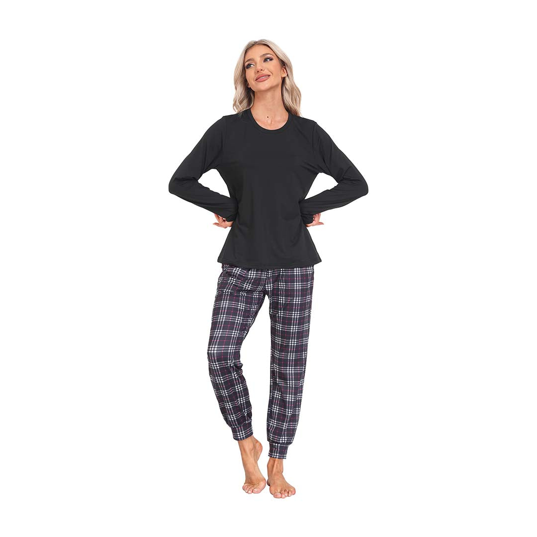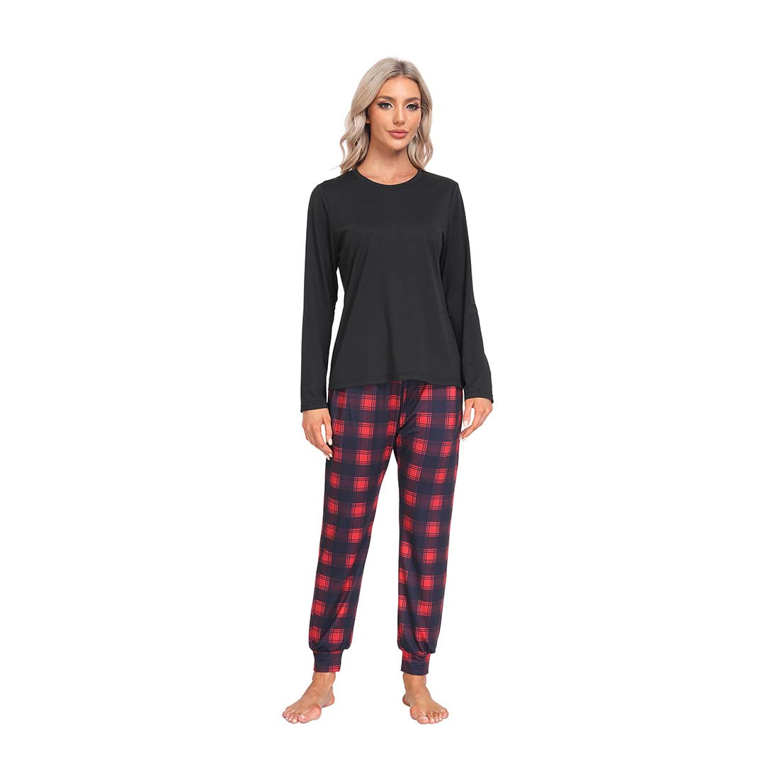 Comfy Pajamas sets for Women feature solid color long sleeve top and Plaid Pants, Drawstring Waist design to make you relaxing as comfortable as possible and 2 side pockets can Can store mobile phone.
