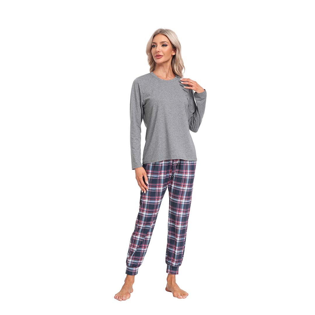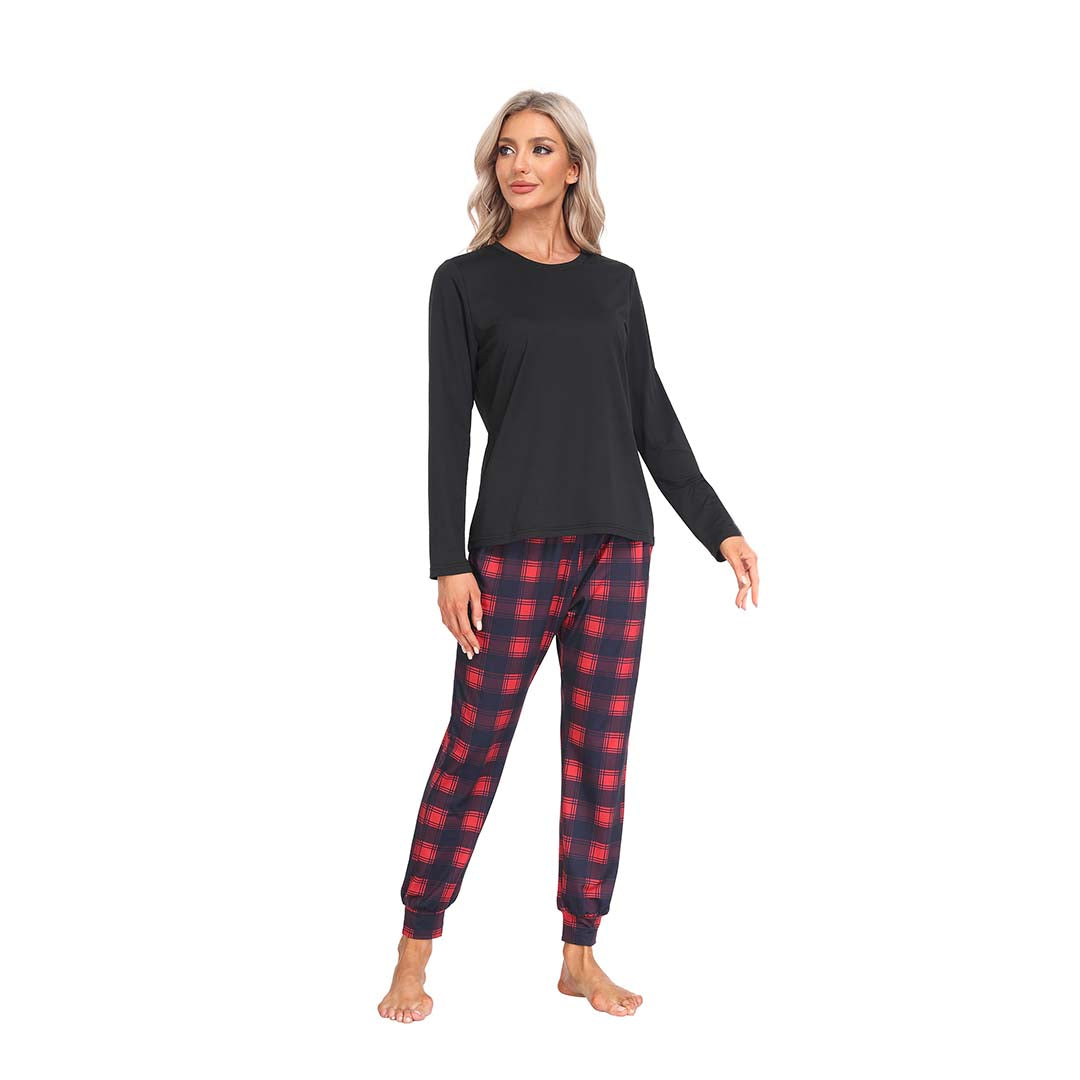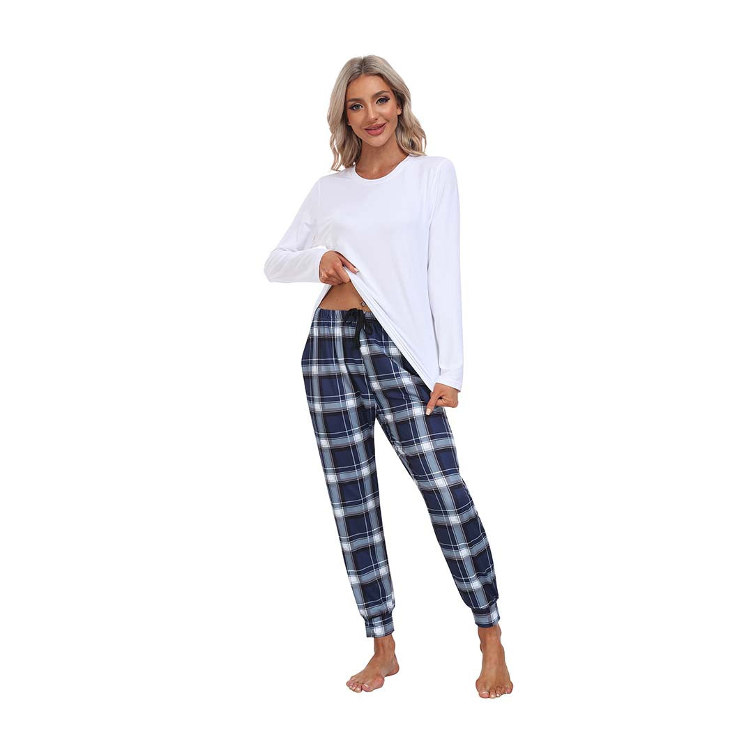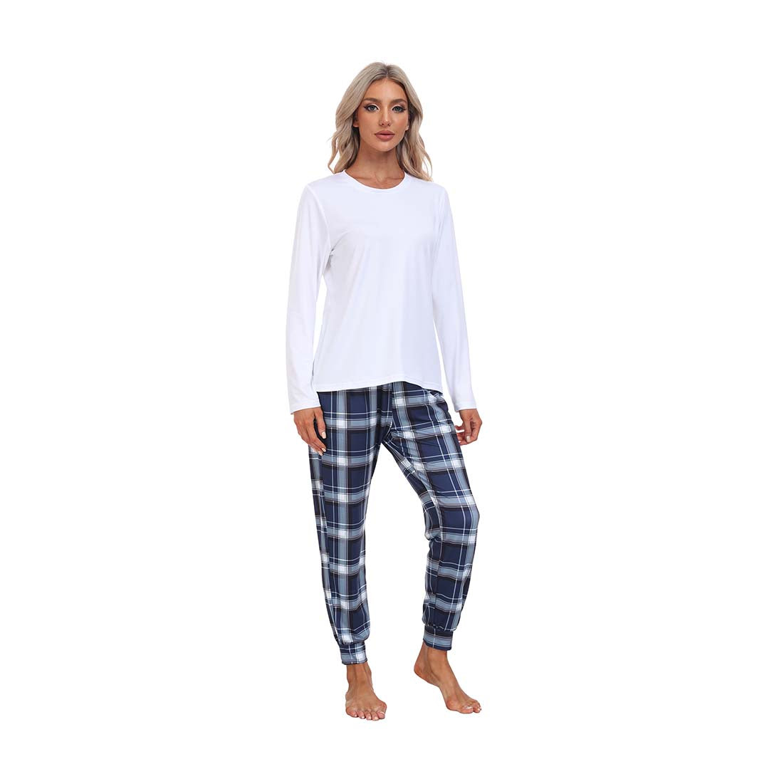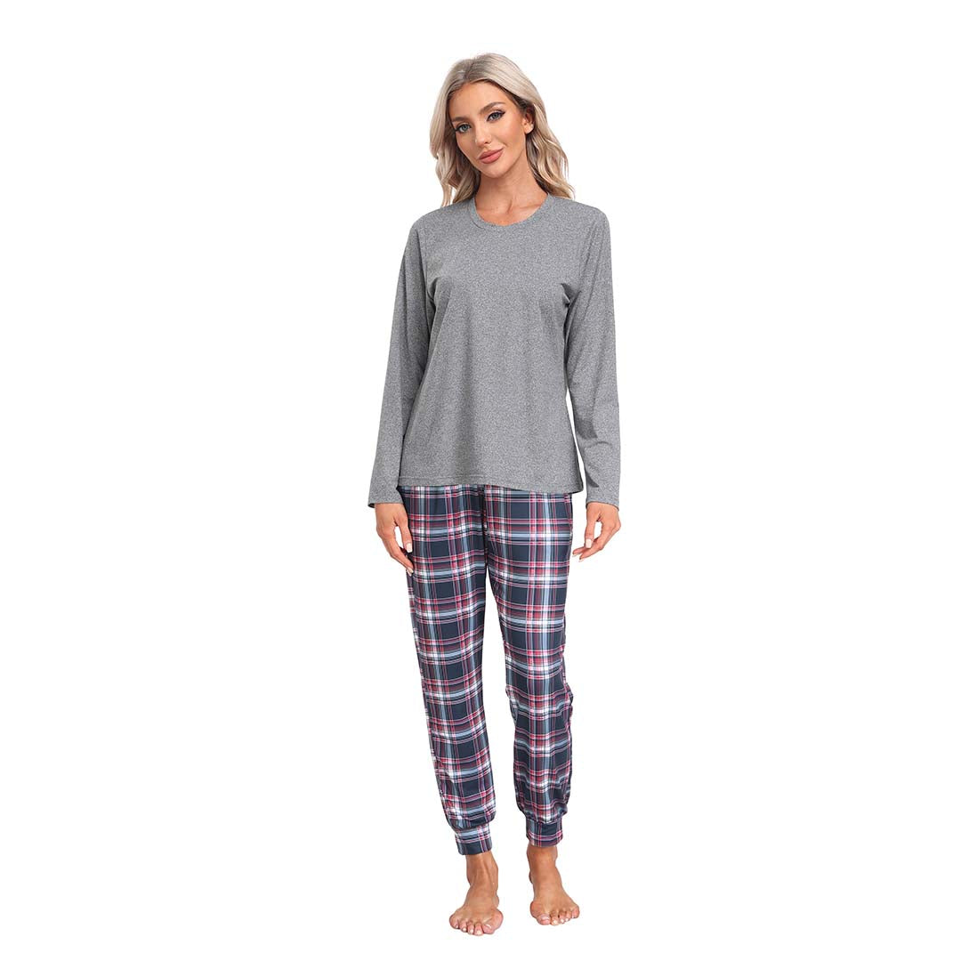 Comfy Pajamas sets for Women feature solid color long sleeve top and Plaid Pants, Drawstring Waist design to make you relaxing as comfortable as possible and 2 side pockets can Can store mobile phone.