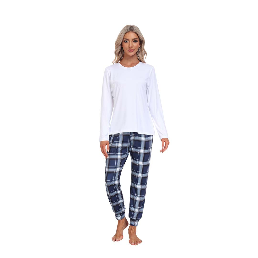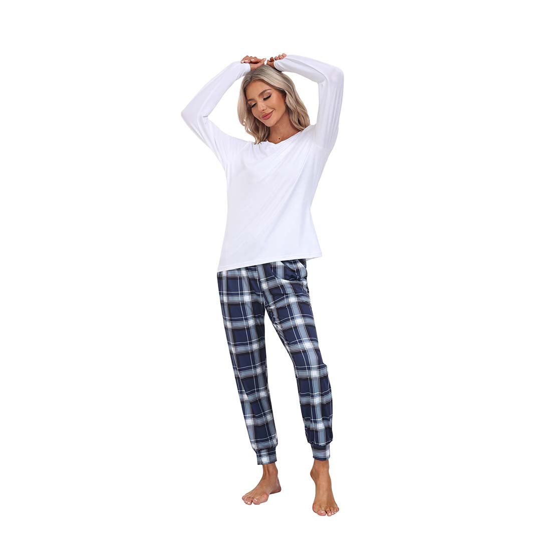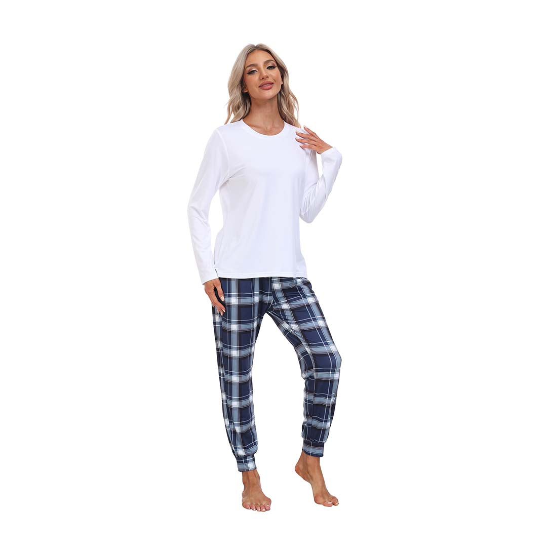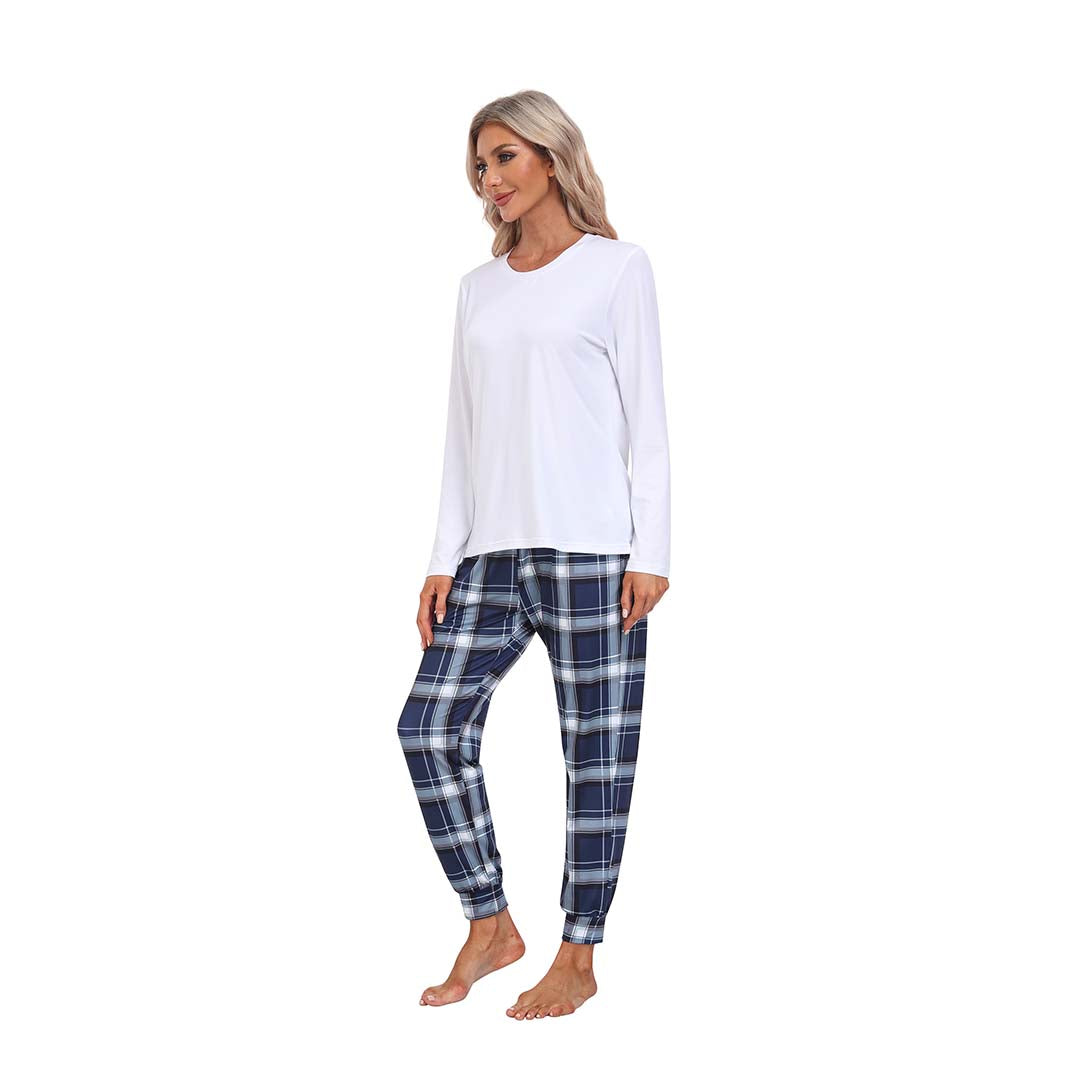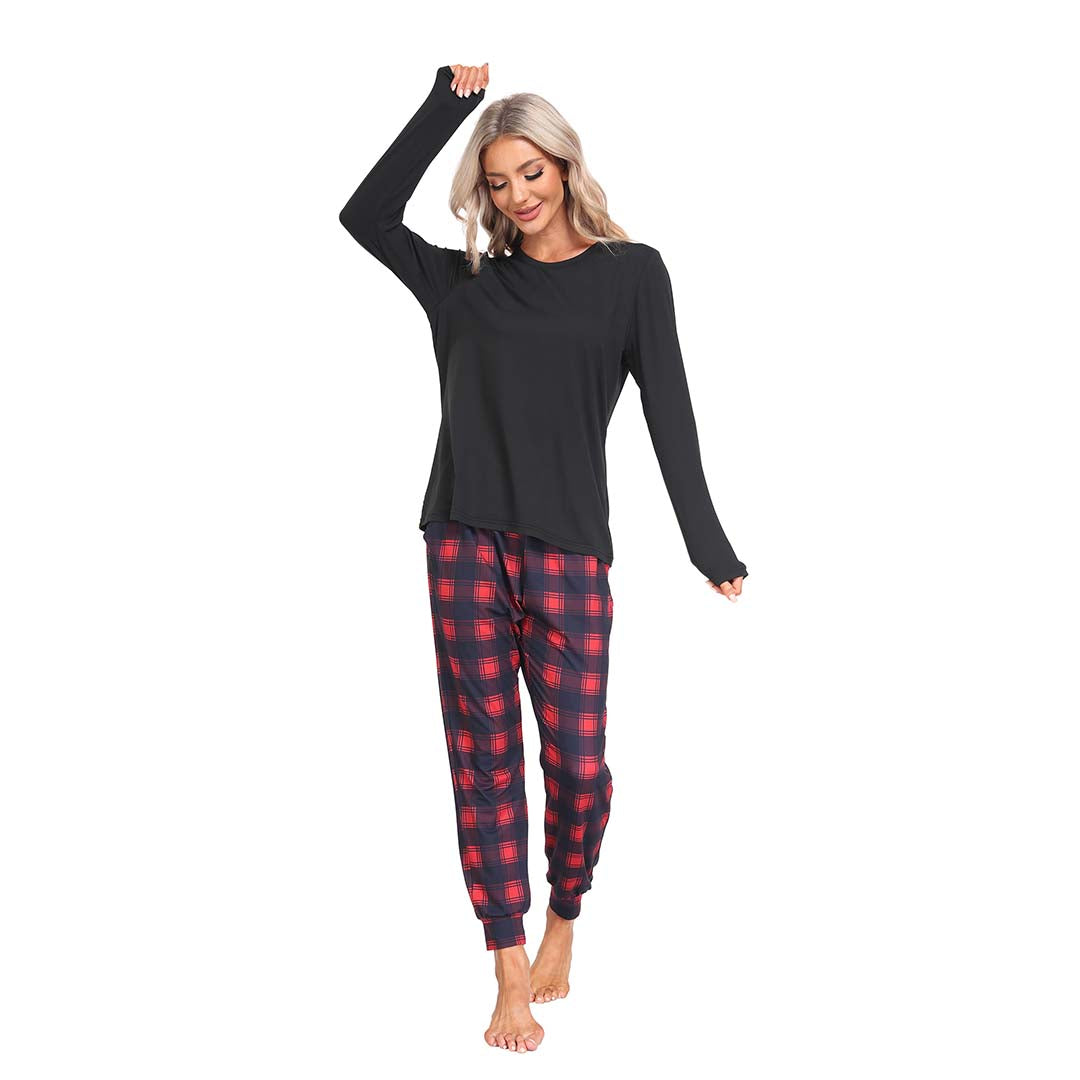 Comfy Pajamas sets for Women feature solid color long sleeve top and Plaid Pants, Drawstring Waist design to make you relaxing as comfortable as possible and 2 side pockets can Can store mobile phone.