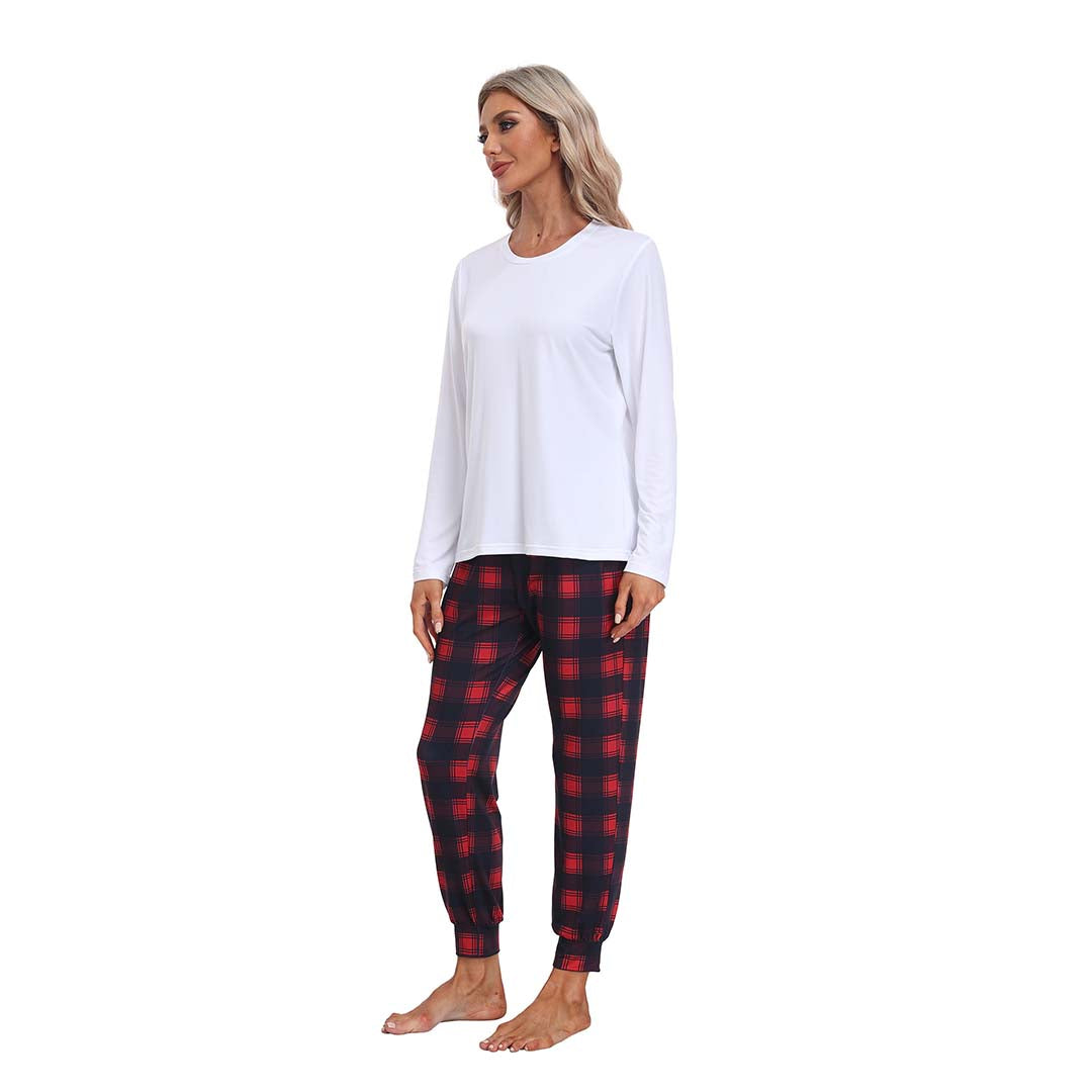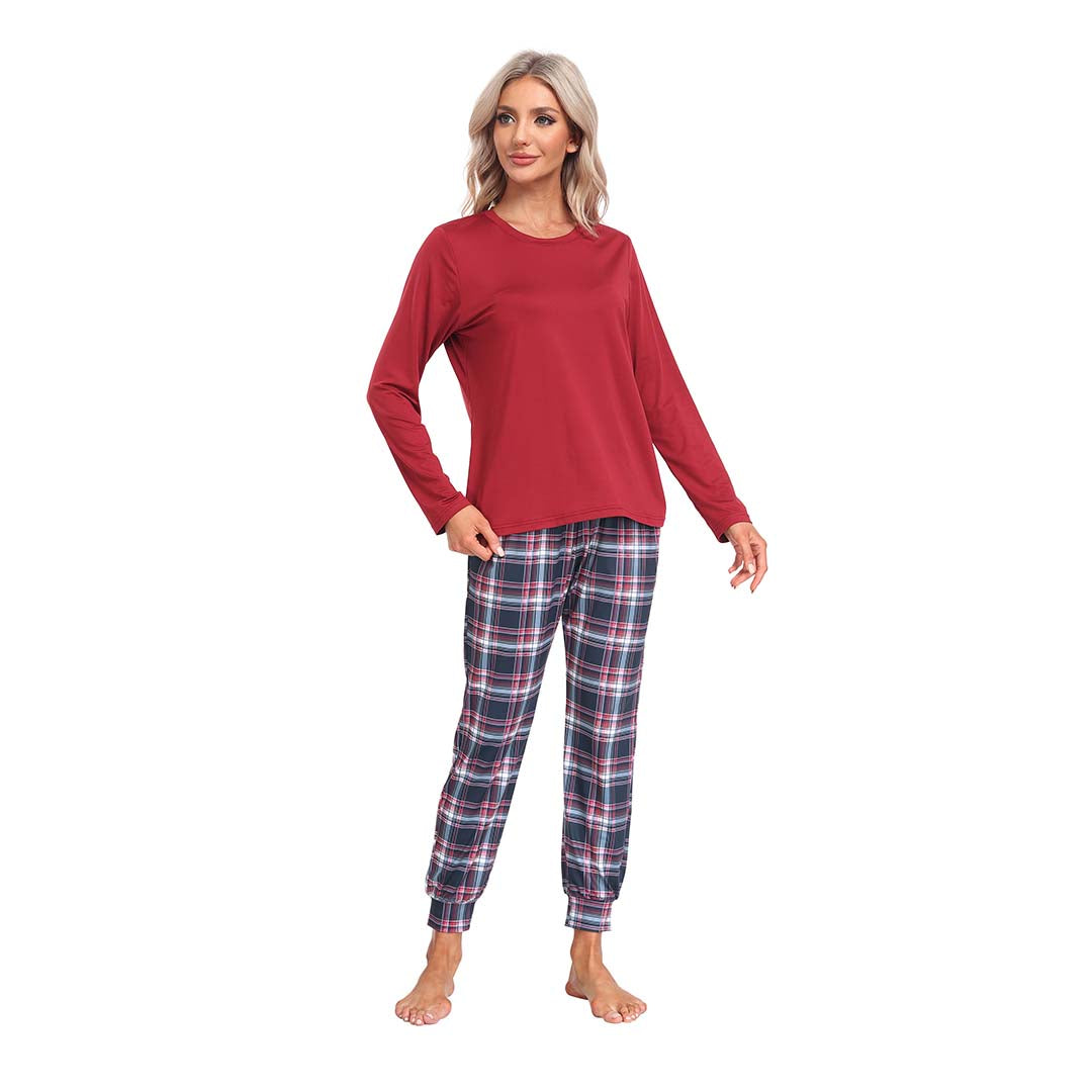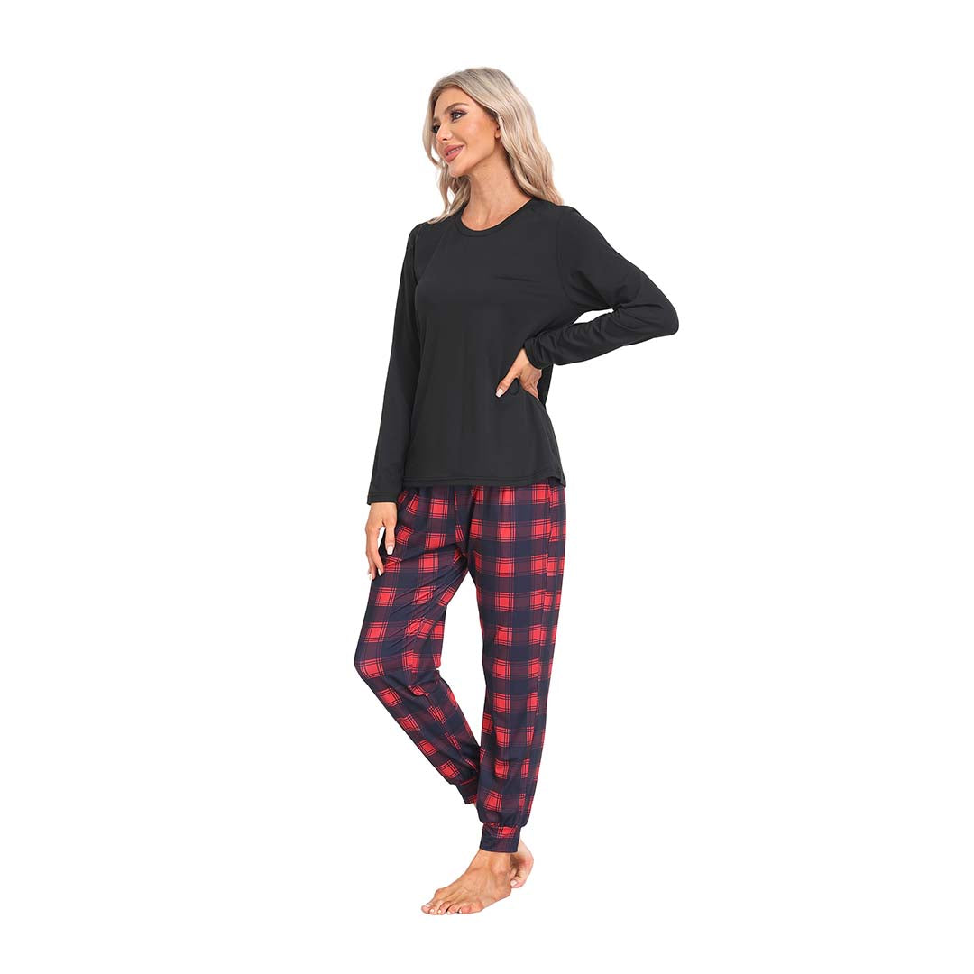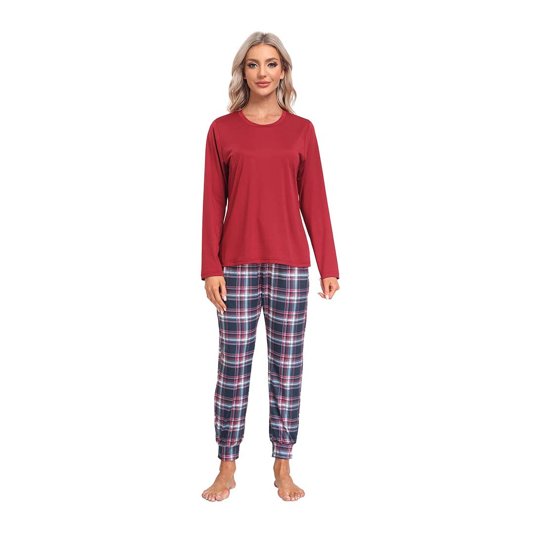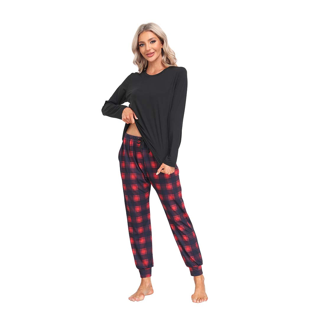 Comfy Pajamas sets for Women feature solid color long sleeve top and Plaid Pants, Drawstring Waist design to make you relaxing as comfortable as possible and 2 side pockets can Can store mobile phone.