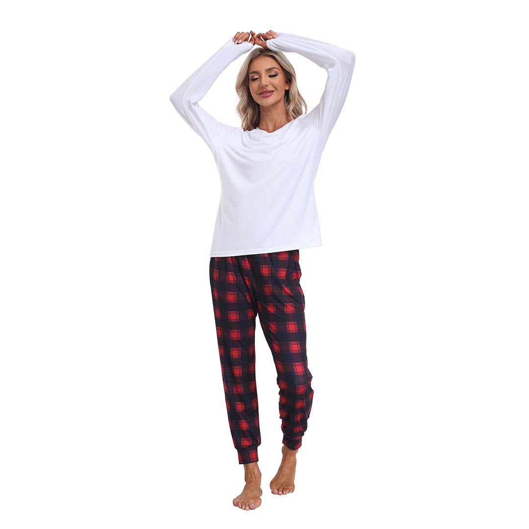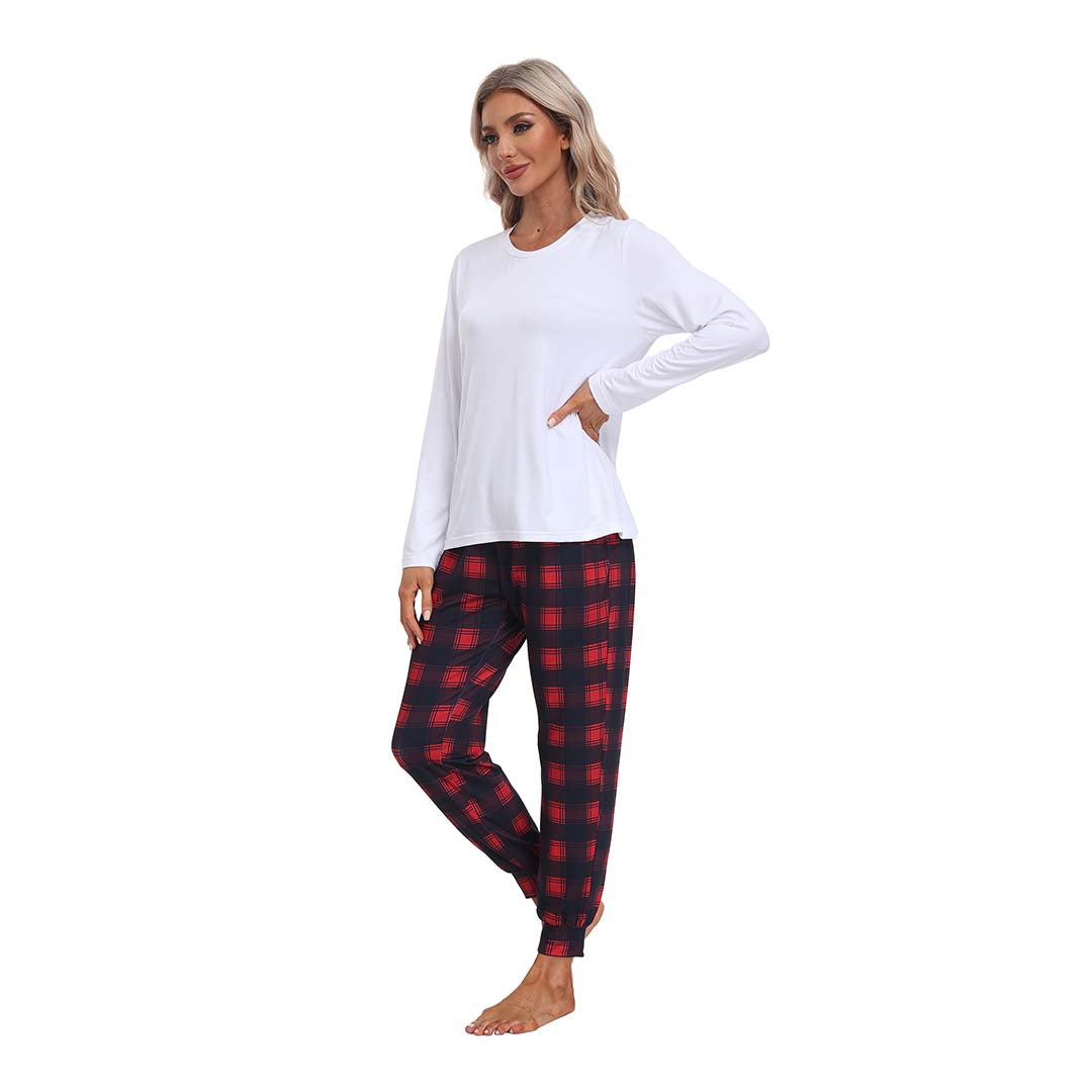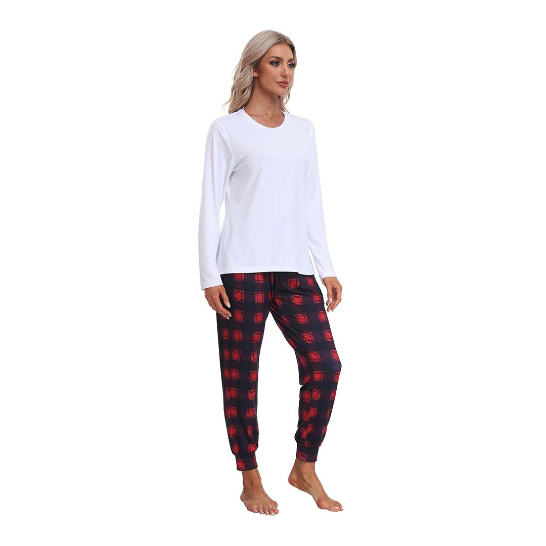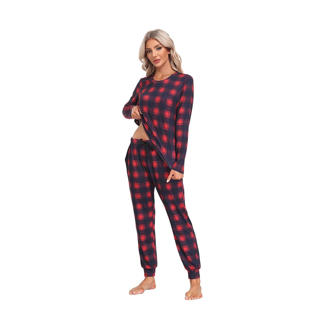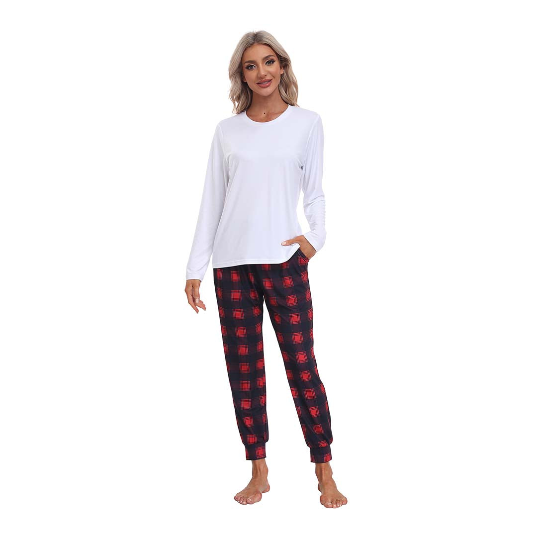 Comfy Pajamas sets for Women feature solid color long sleeve top and Plaid Pants, Drawstring Waist design to make you relaxing as comfortable as possible and 2 side pockets can Can store mobile phone.