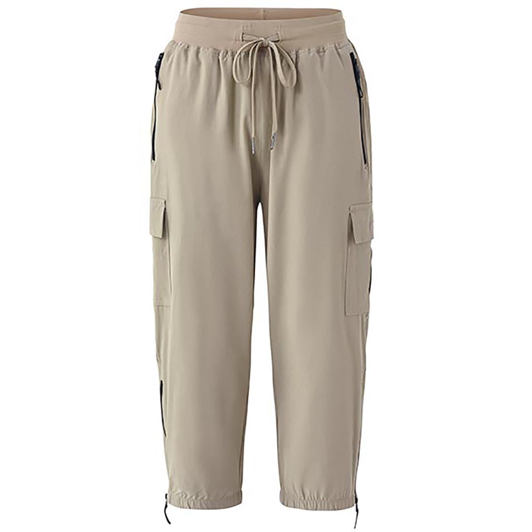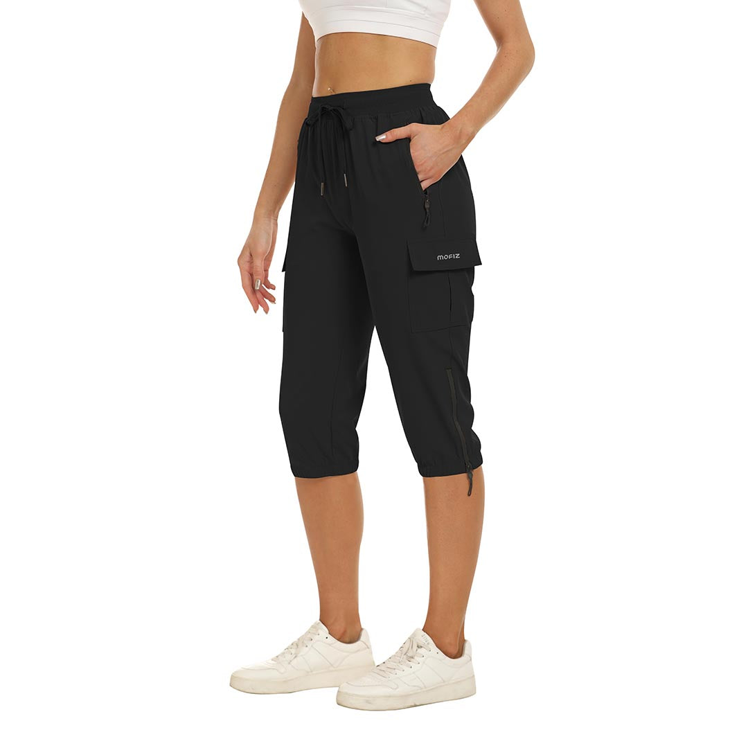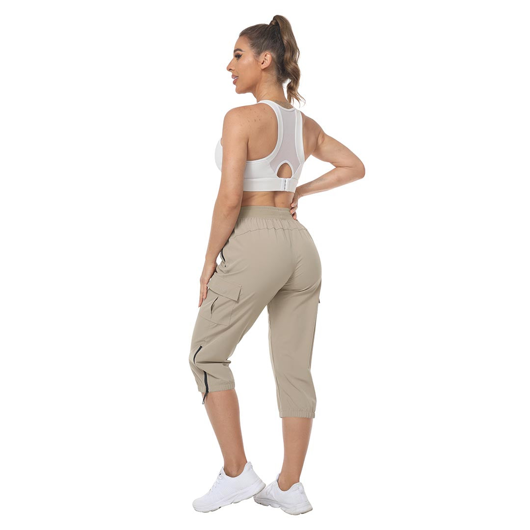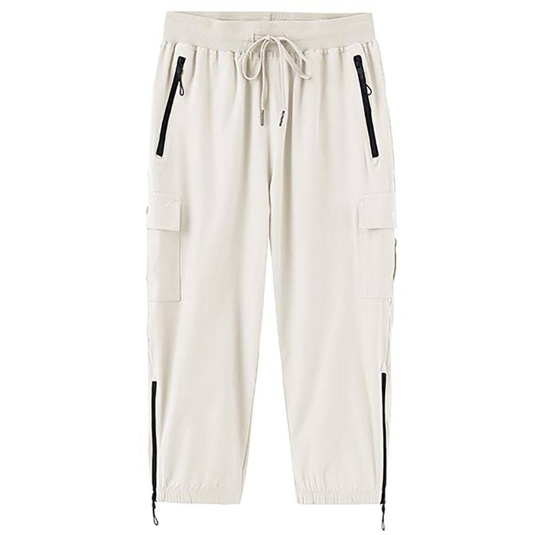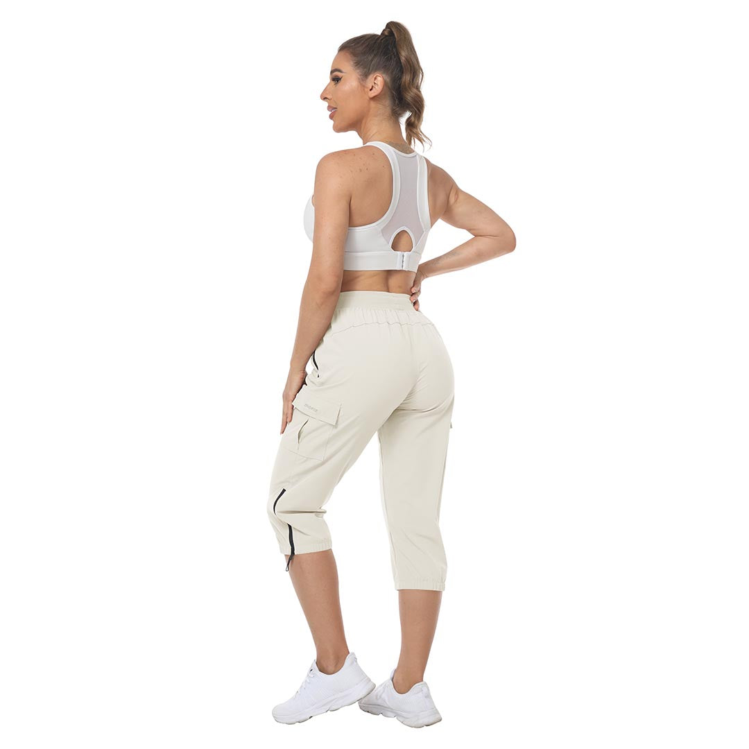 Women's outdoor capri pants feature an adjustable zipper around the foot opening to keep bugs out when hiking outdoors.