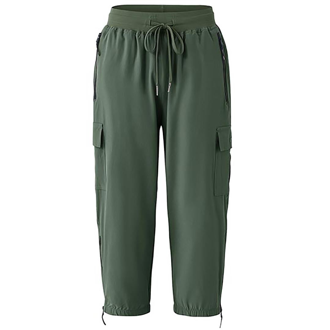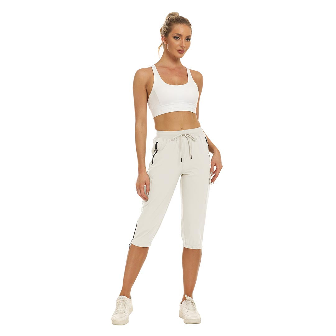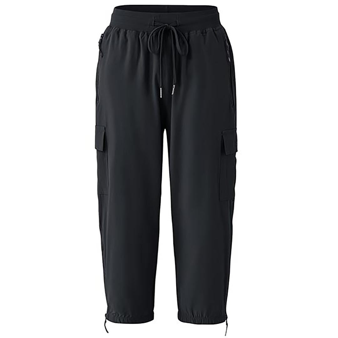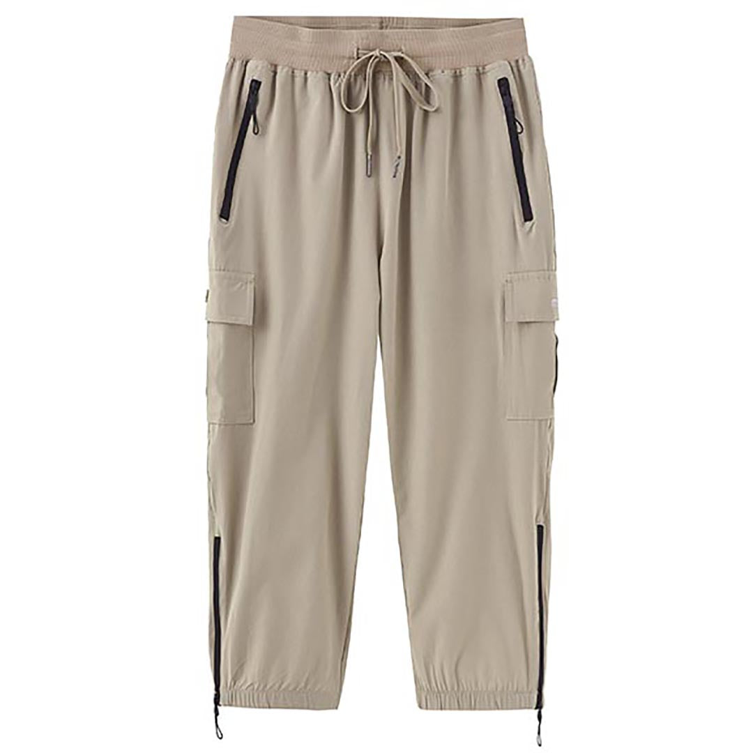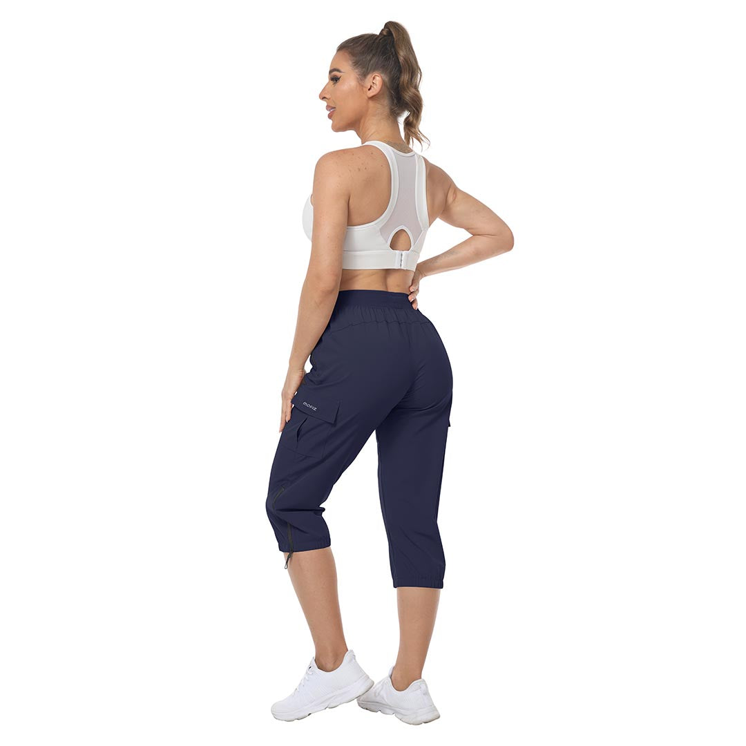 Women's outdoor capri pants feature an adjustable zipper around the foot opening to keep bugs out when hiking outdoors.