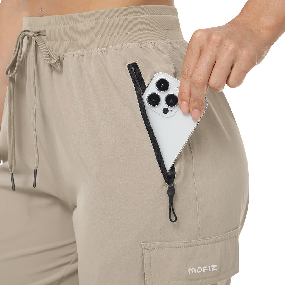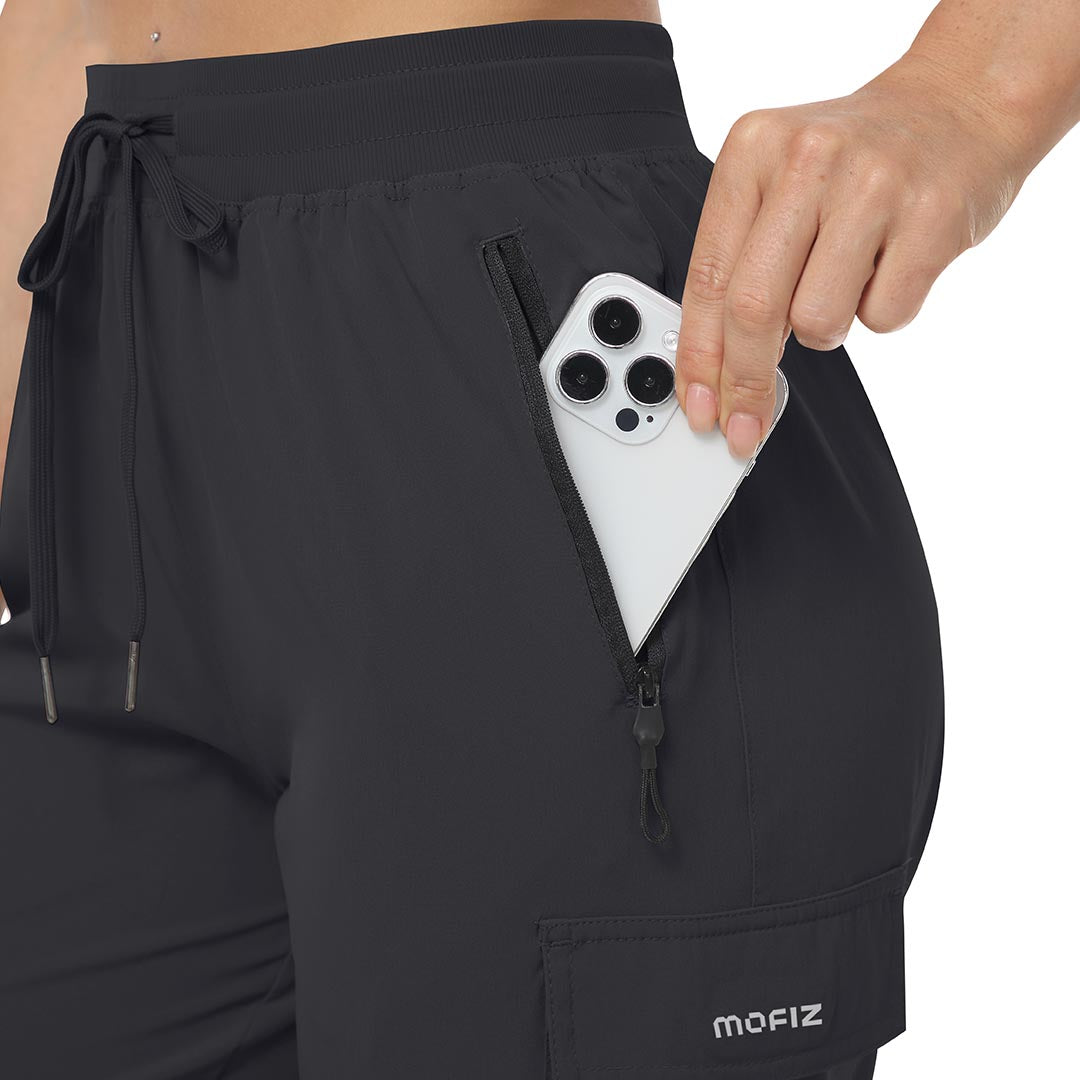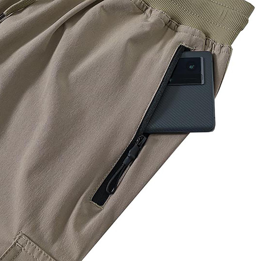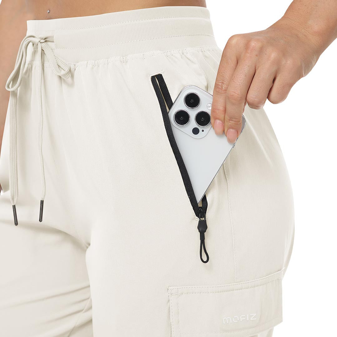 Multifunctional pockets, 2 side zipper pockets to hold your 6.3± cell phone, wallet and keys, 2 cargo pockets on both thigh sides to store your mobile essentials.