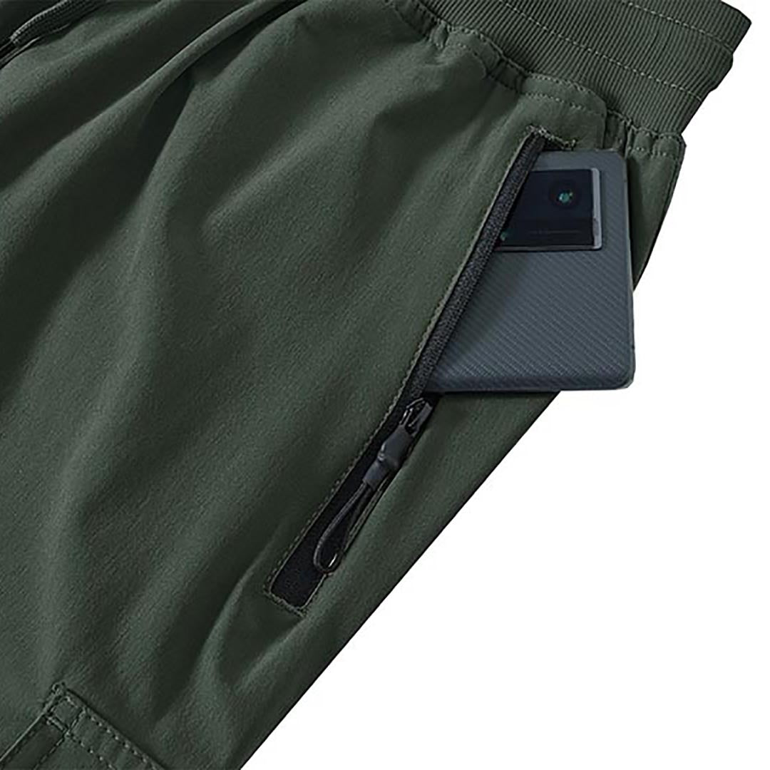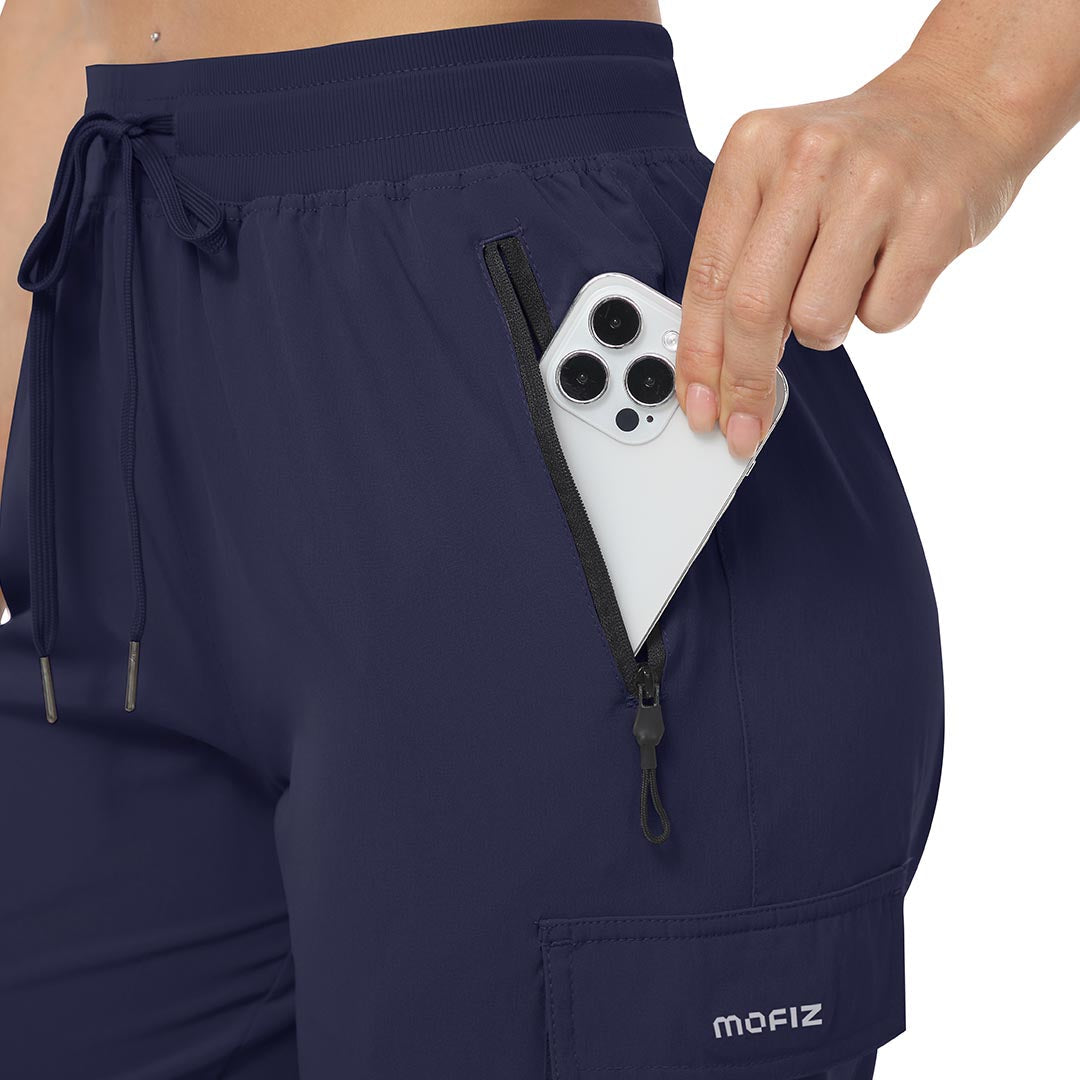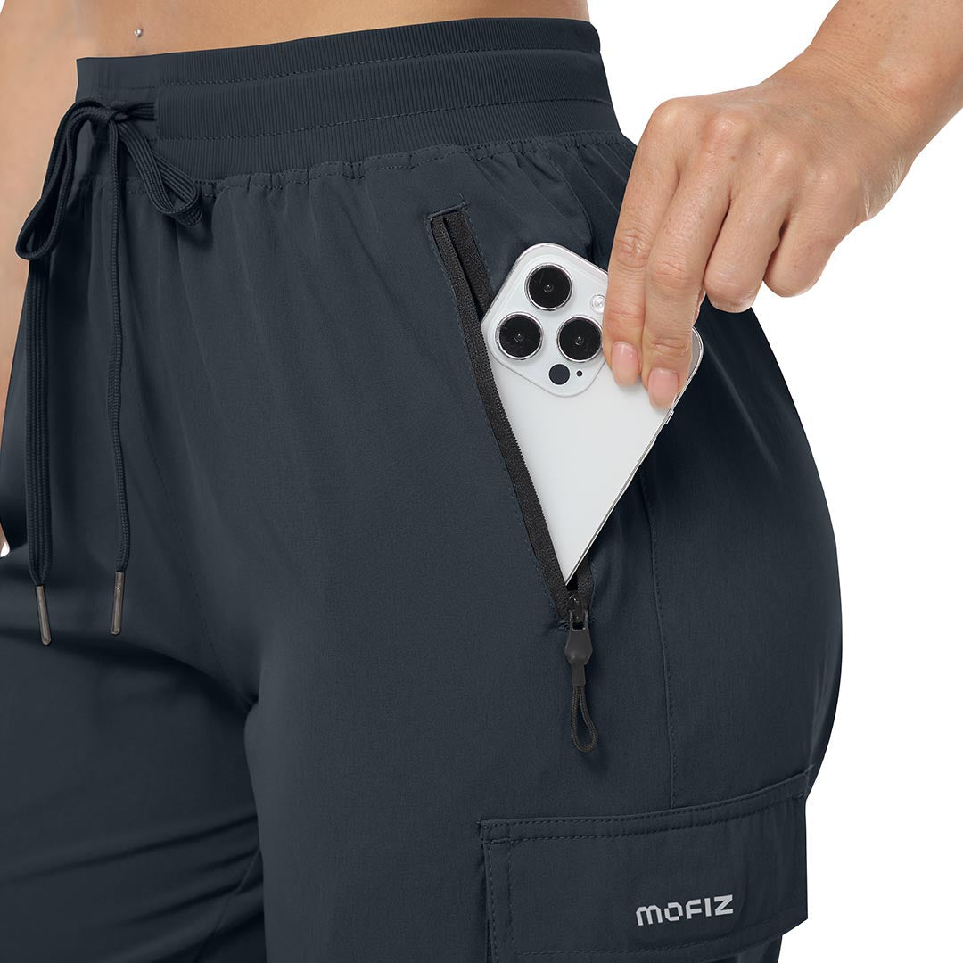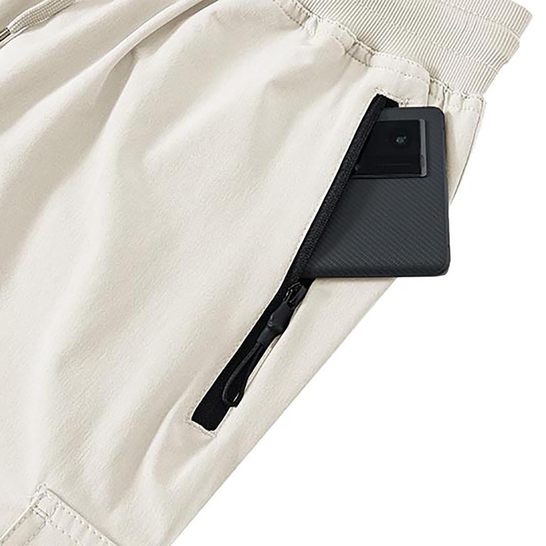 Multifunctional pockets, 2 side zipper pockets to hold your 6.3± cell phone, wallet and keys, 2 cargo pockets on both thigh sides to store your mobile essentials.