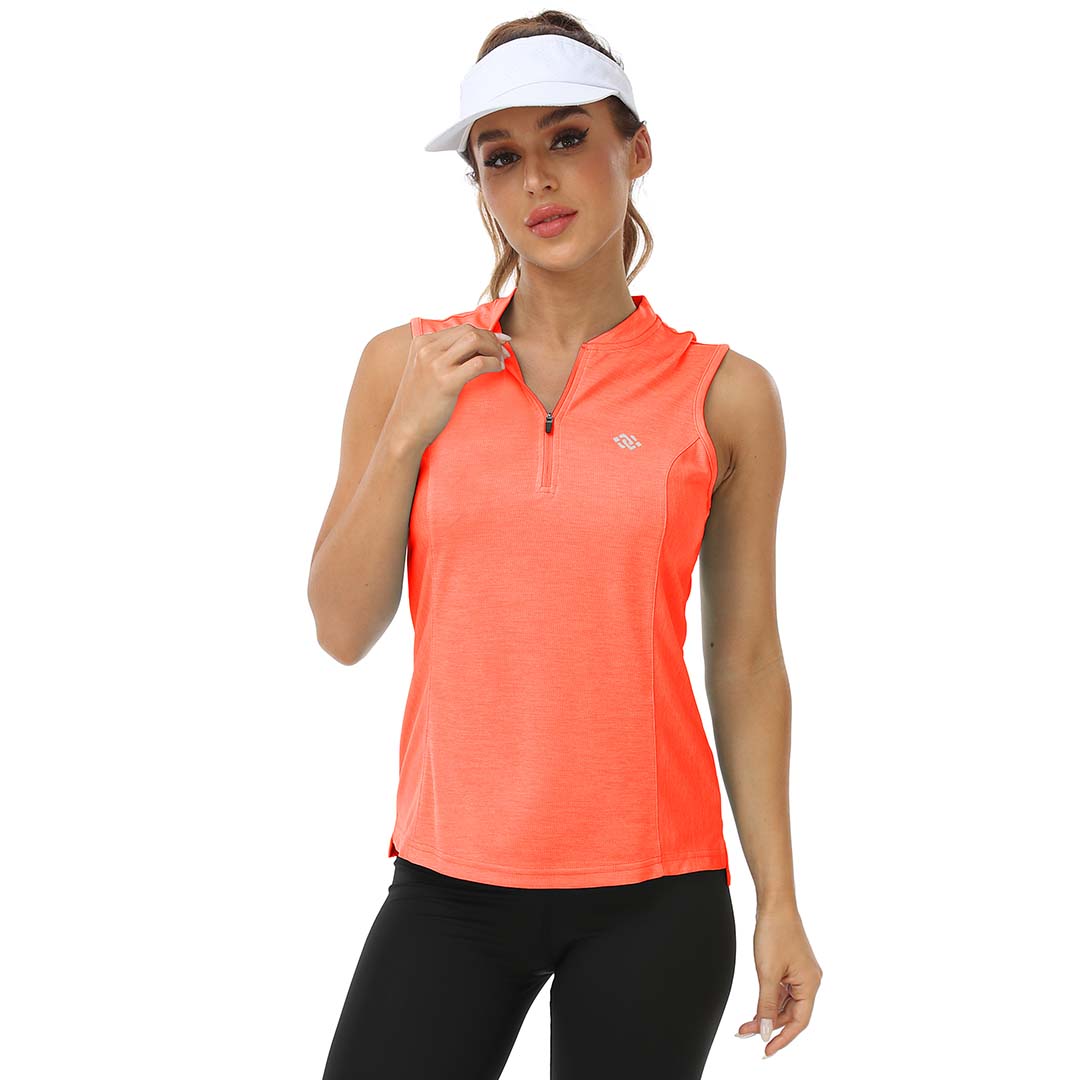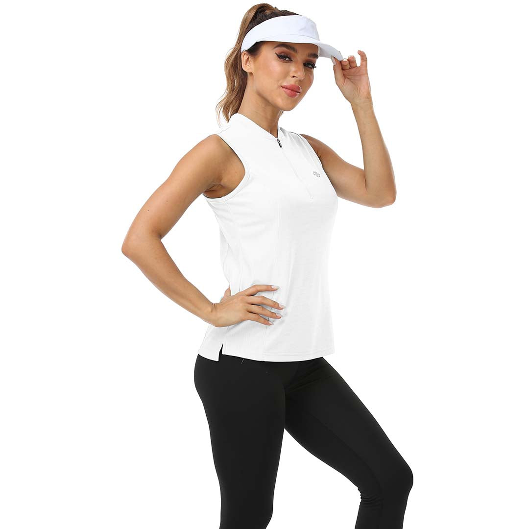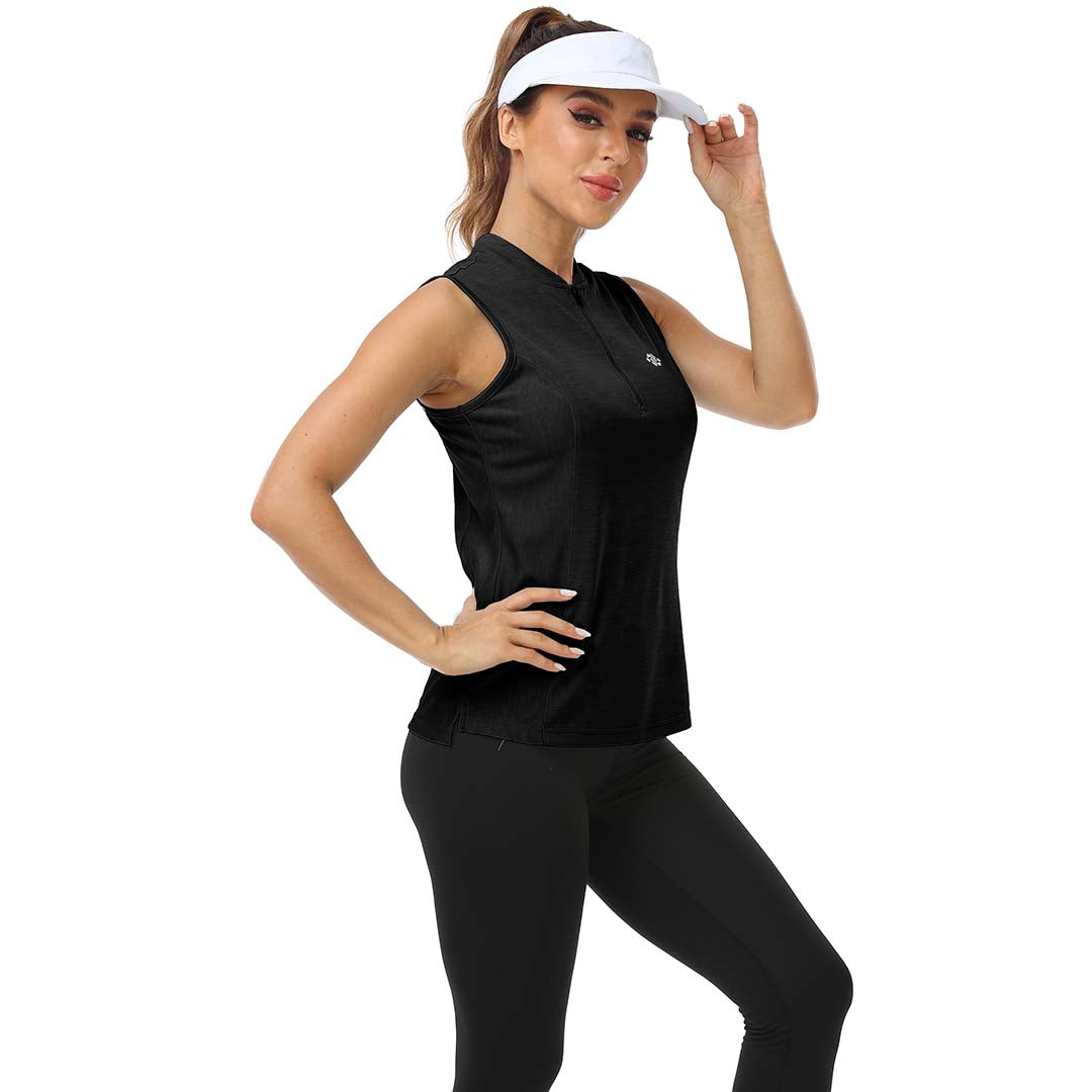 Women Tennis Tops designed with collarless and 1/4 zipper way, more comfortable and stylish than traditional polo shirts. Women Sleeveless Tennis Shirt allows for natural range of motion, which makes your arms move more freely.