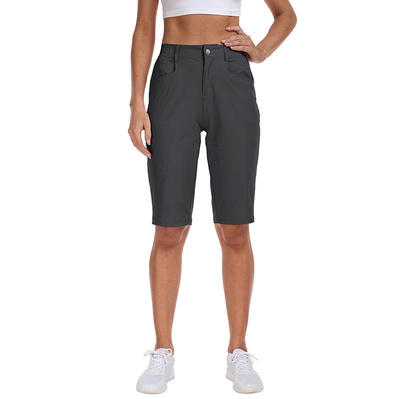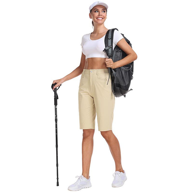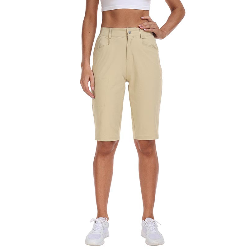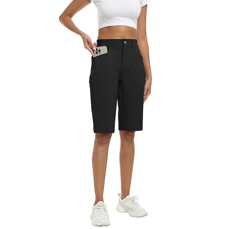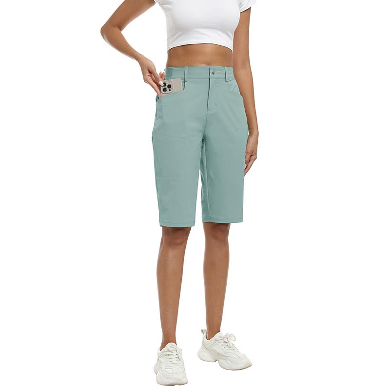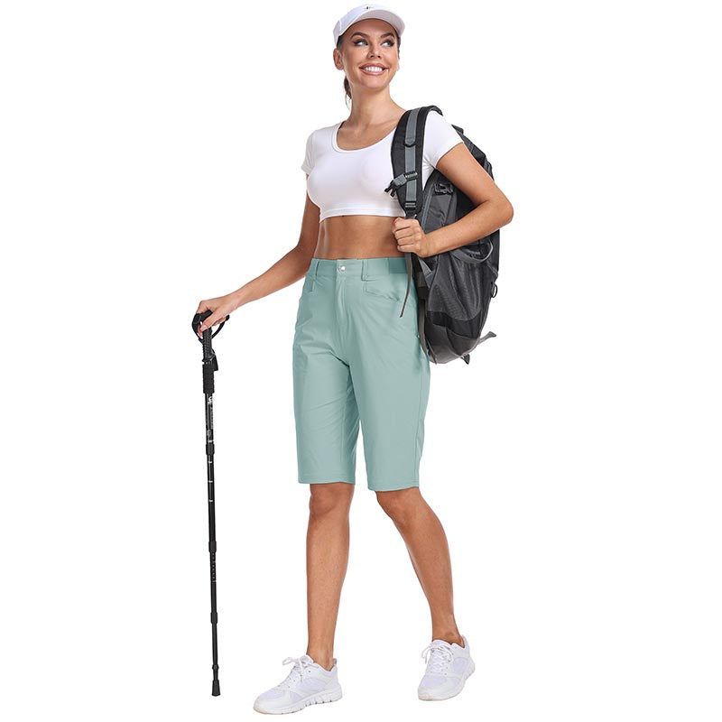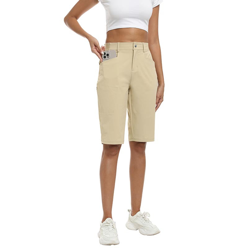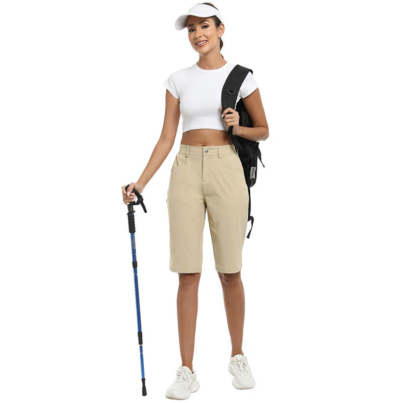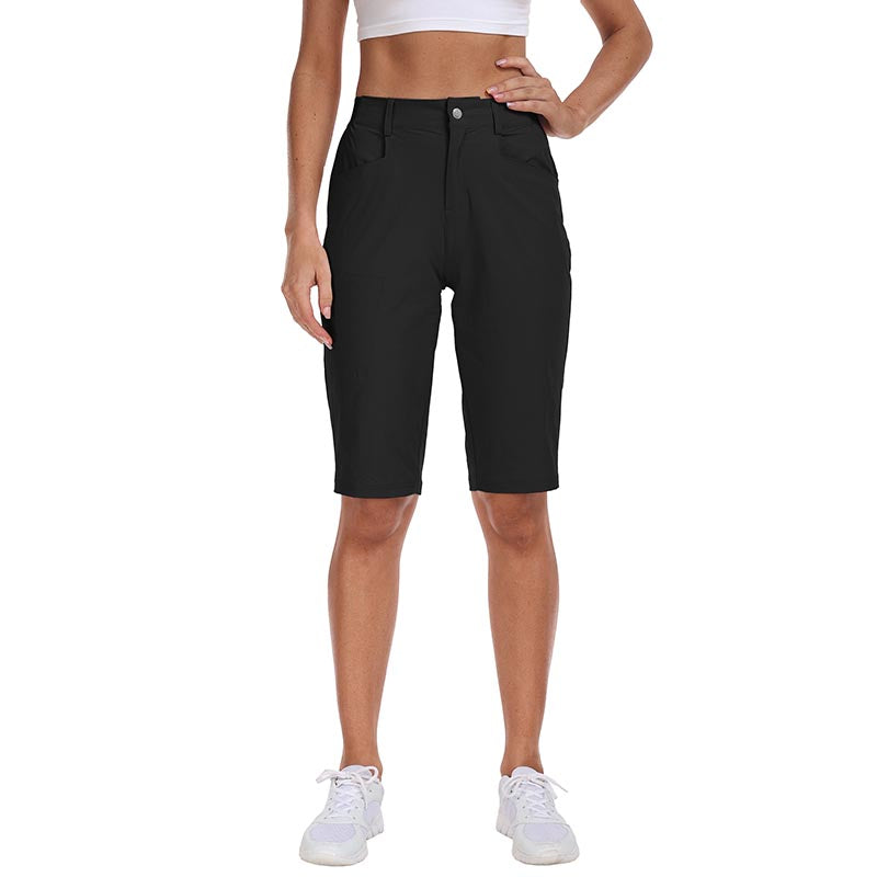 Knee Length Shorts Women made of 85%nylon, 15%spandex, Quick-drying fabric, slightly stretchy, water-resistant, and lightweight, keeping you cool all day in hot summer, great for athletic wear.